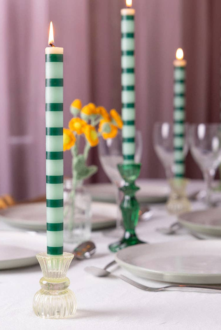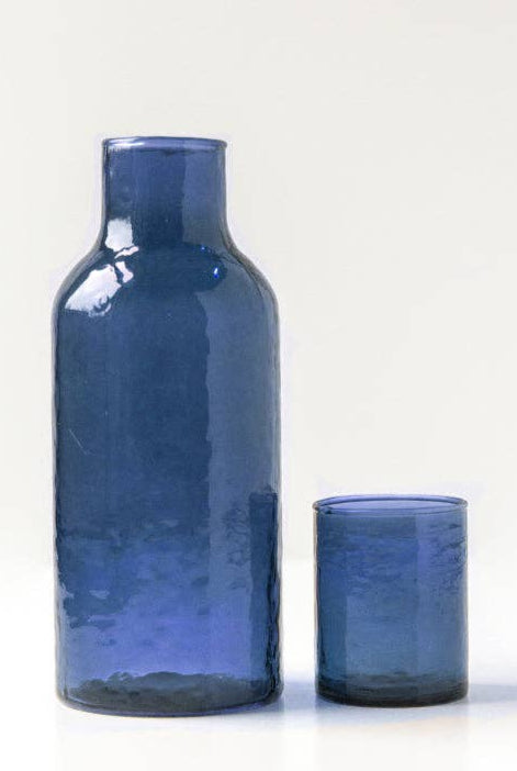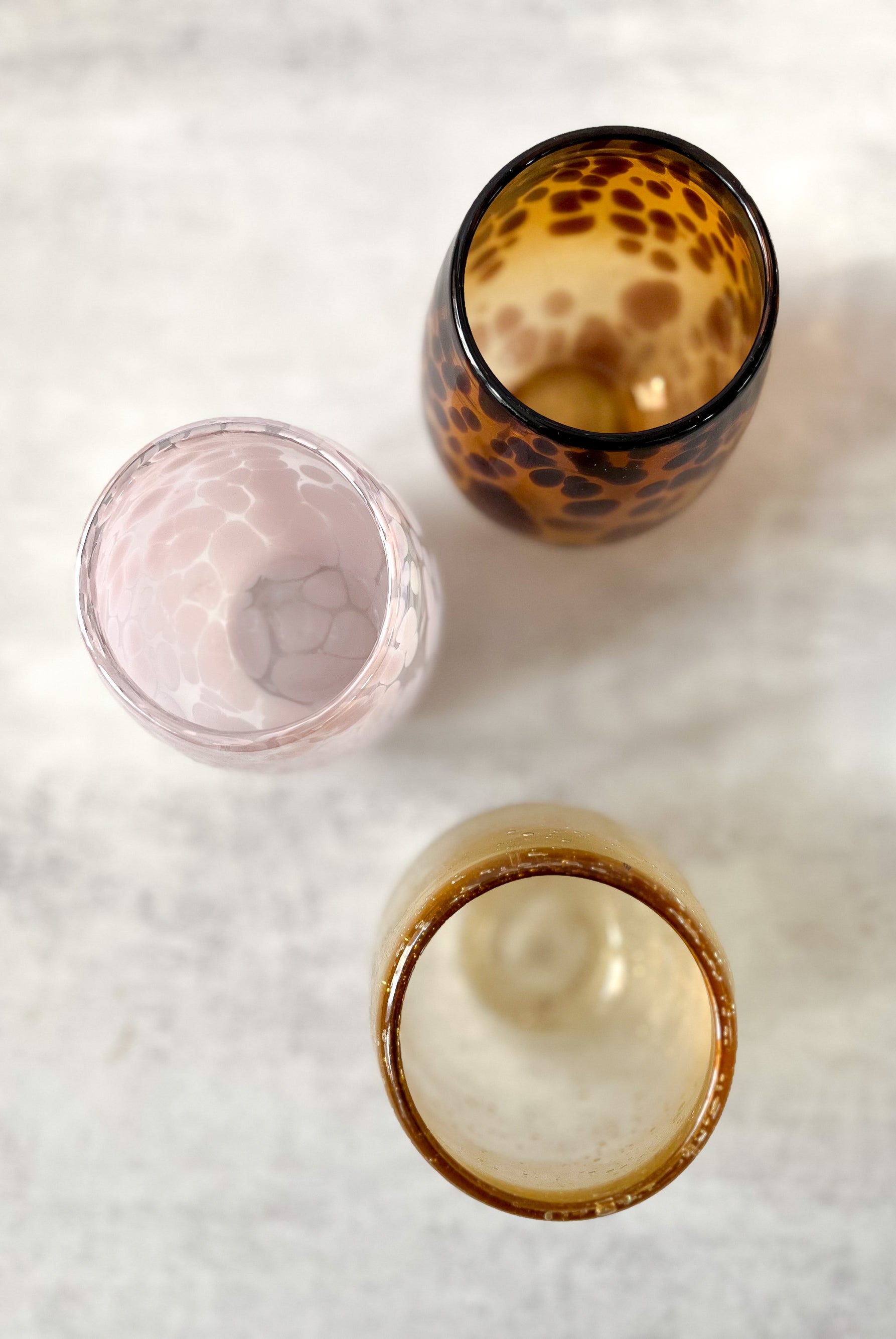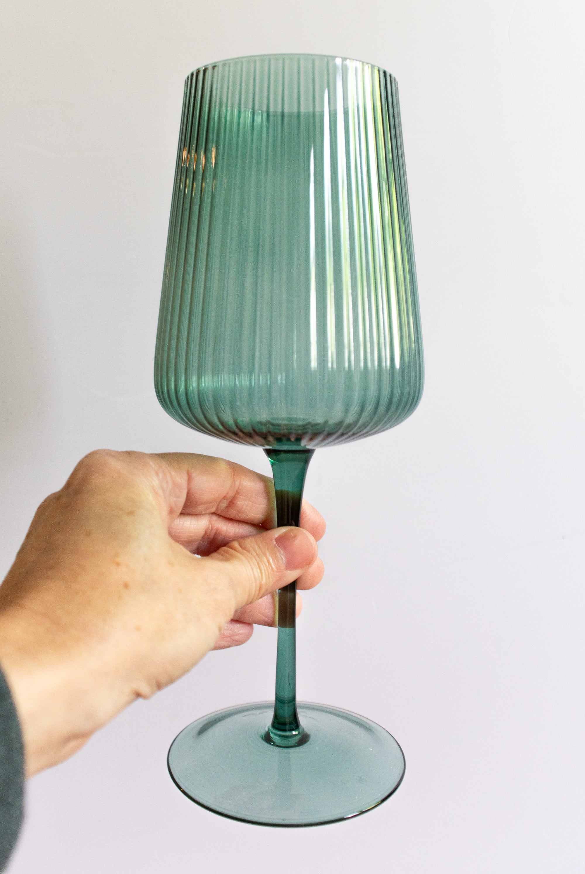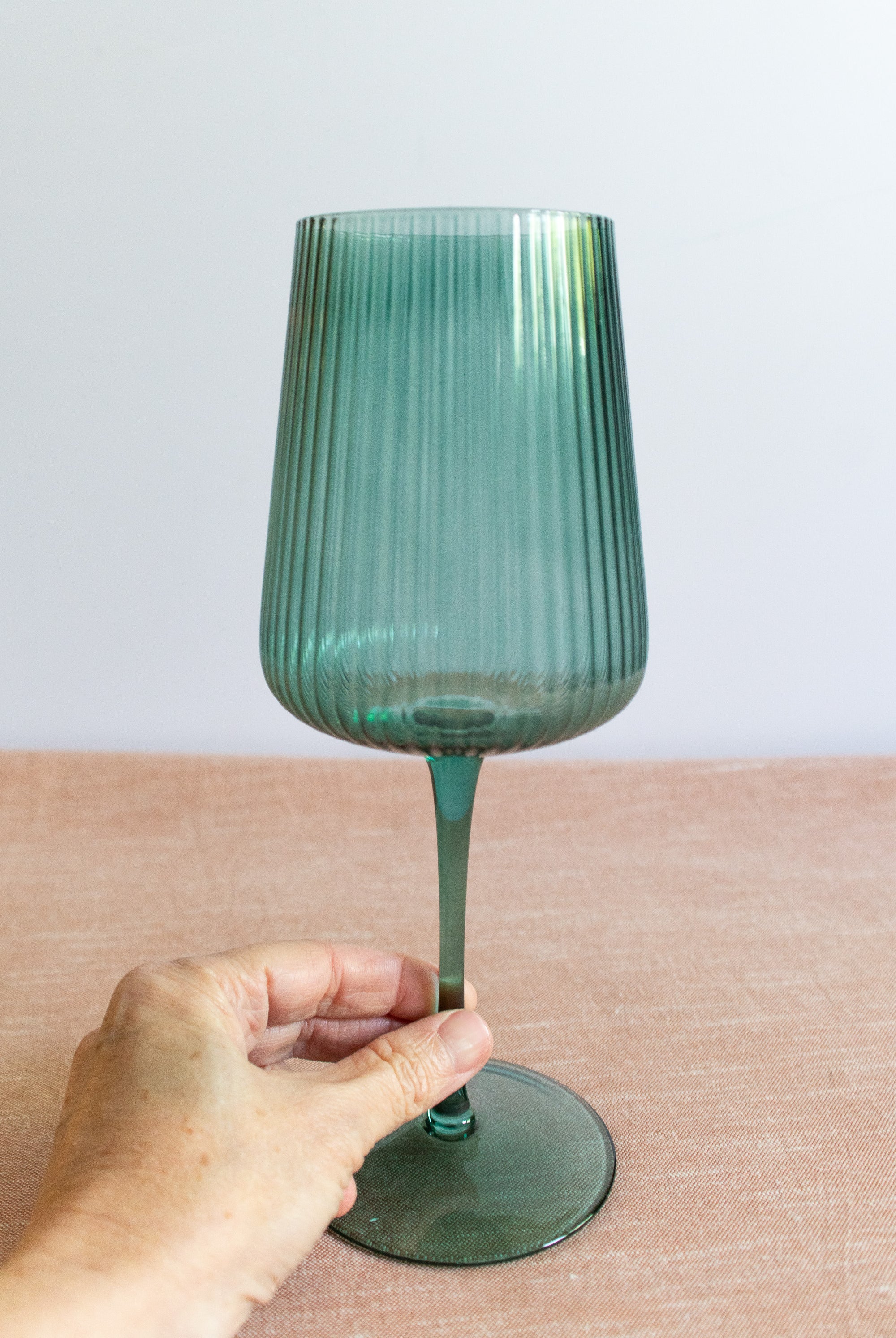 The perfect gift to bring to a host (or to update your own table setting), these green flutes with a pop of blue are a beautiful piece of functional art for your table.