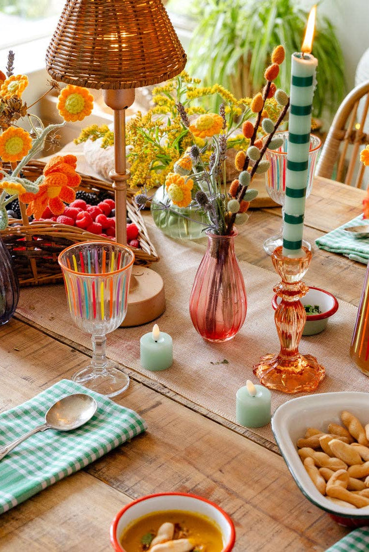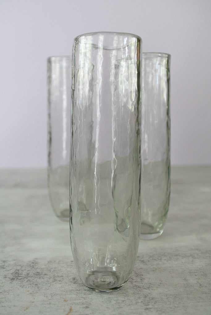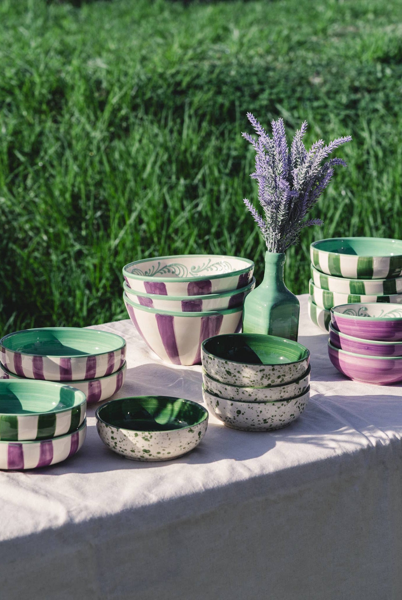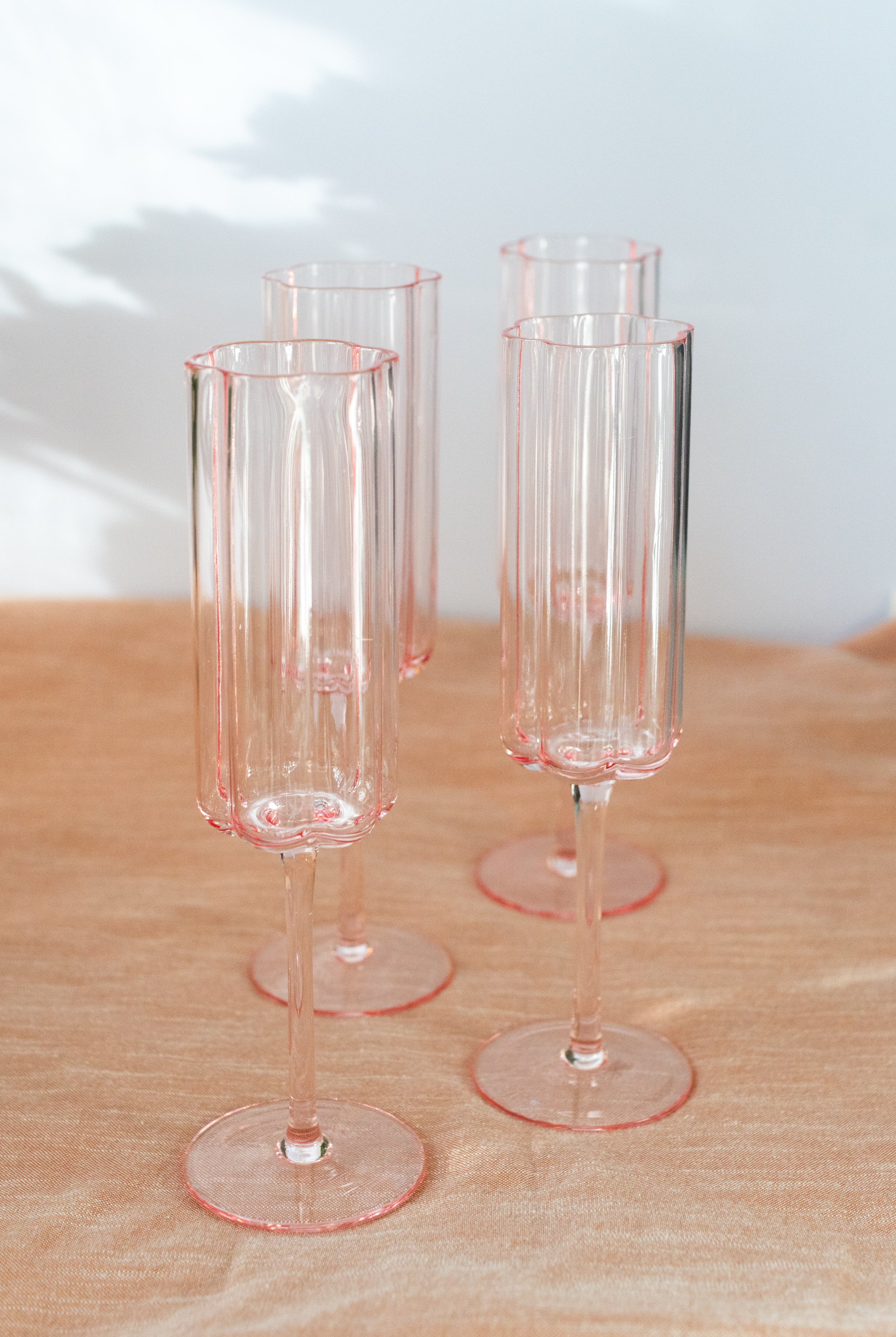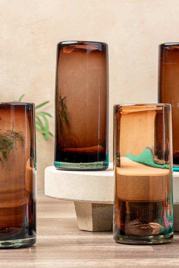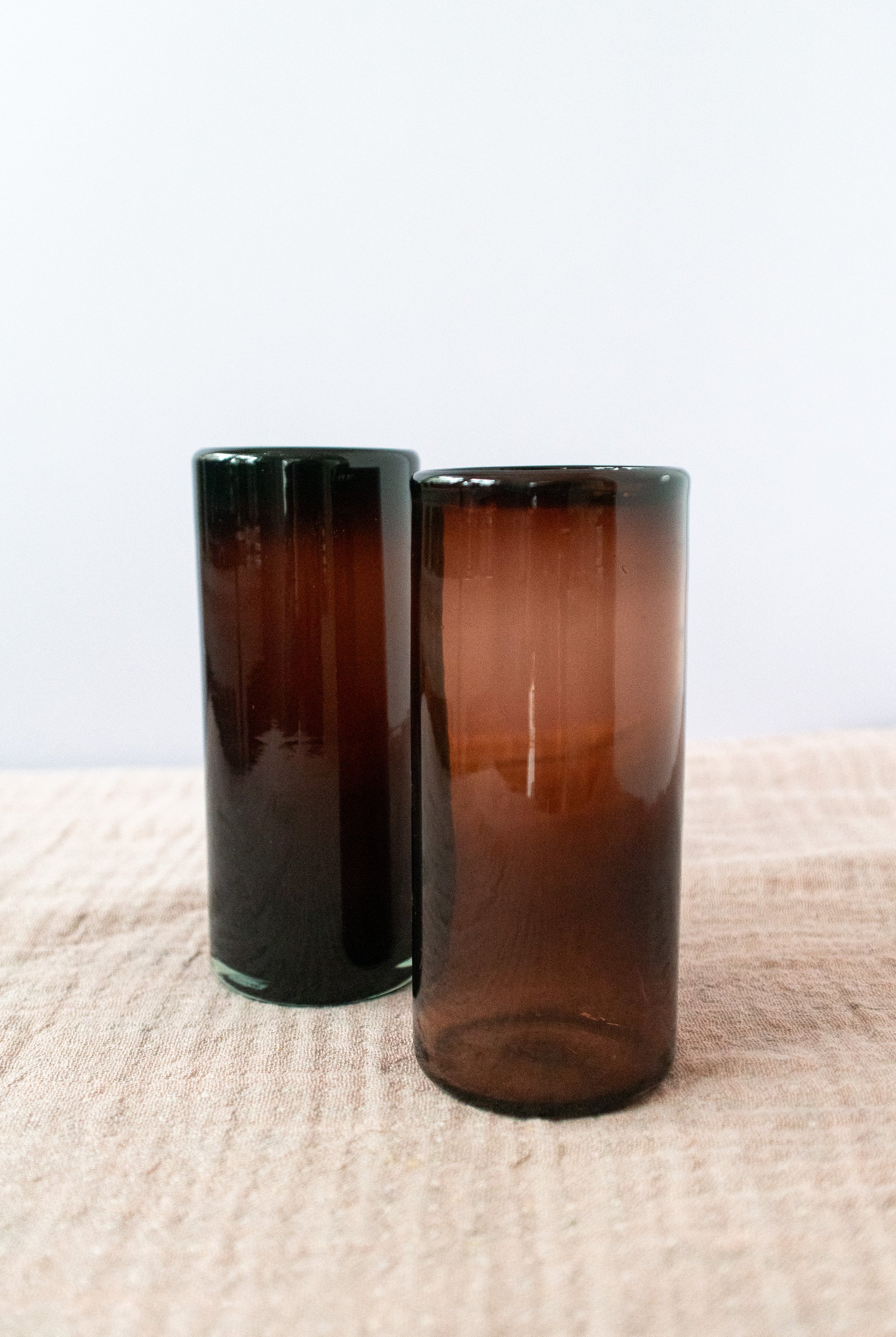 The perfect gift to bring to a host (or to update your own table setting), these green flutes with a pop of blue are a beautiful piece of functional art for your table.