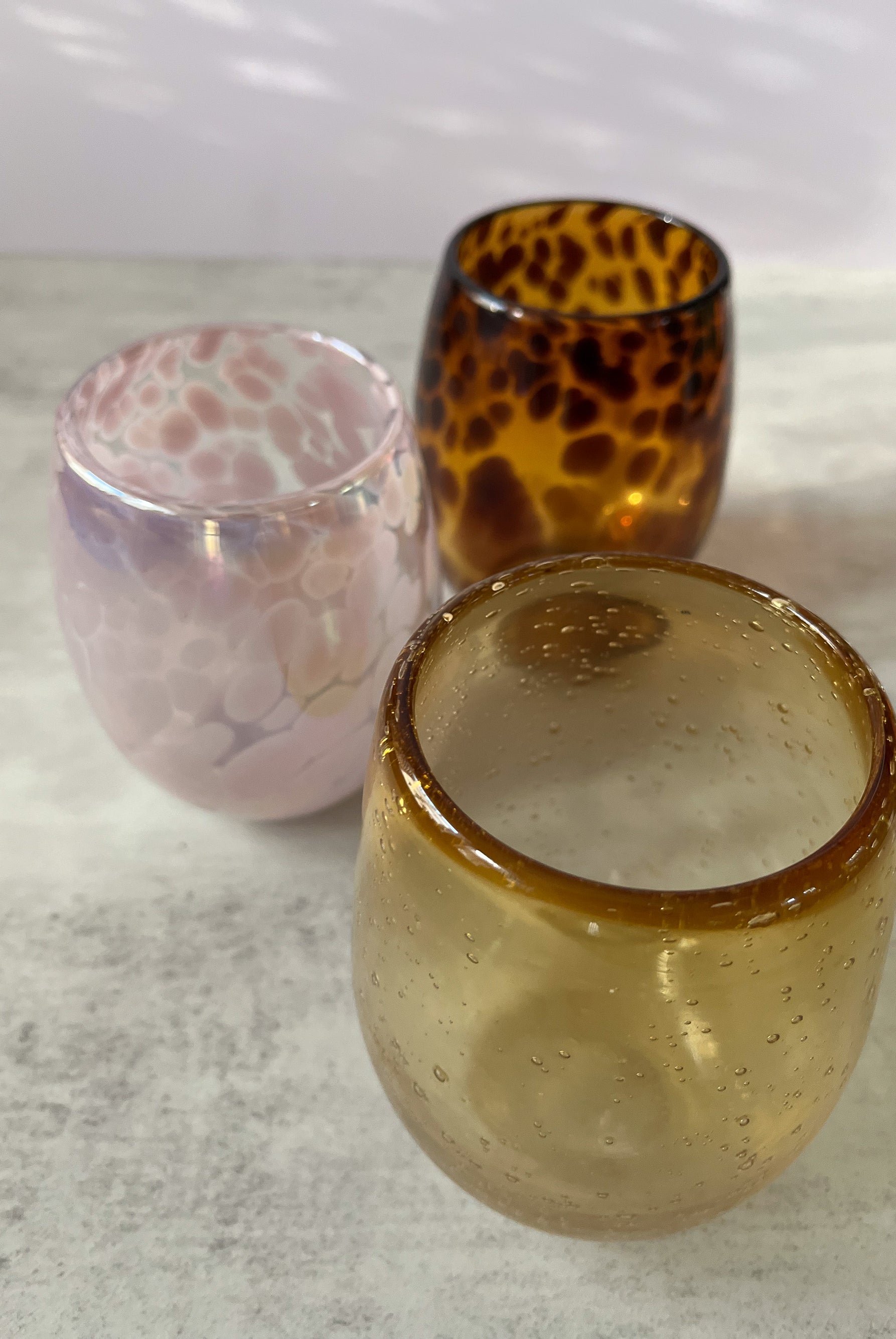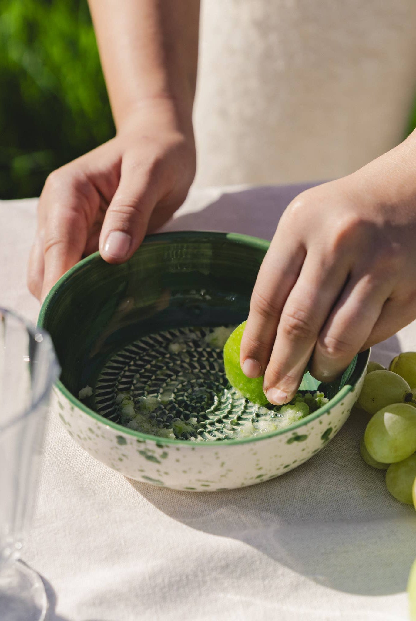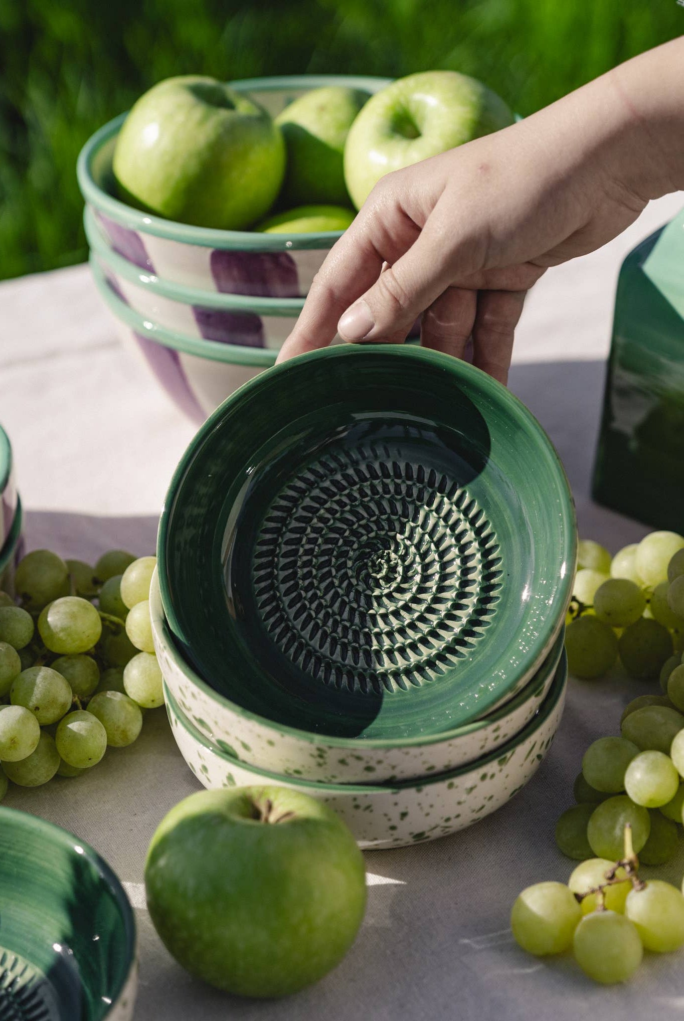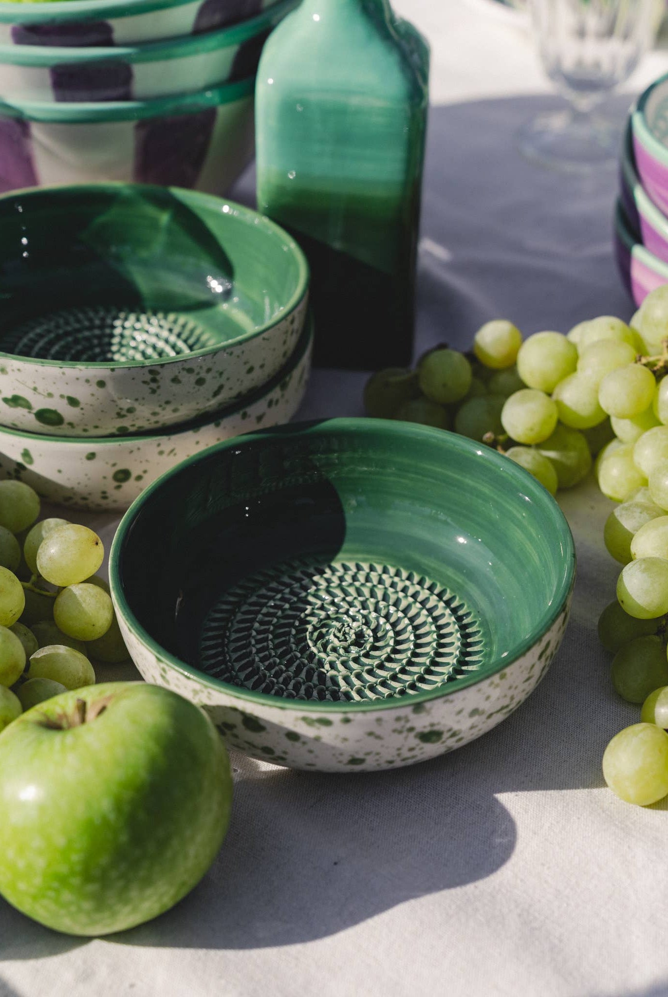 The perfect gift to bring to a host (or to update your own table setting), these green flutes with a pop of blue are a beautiful piece of functional art for your table.