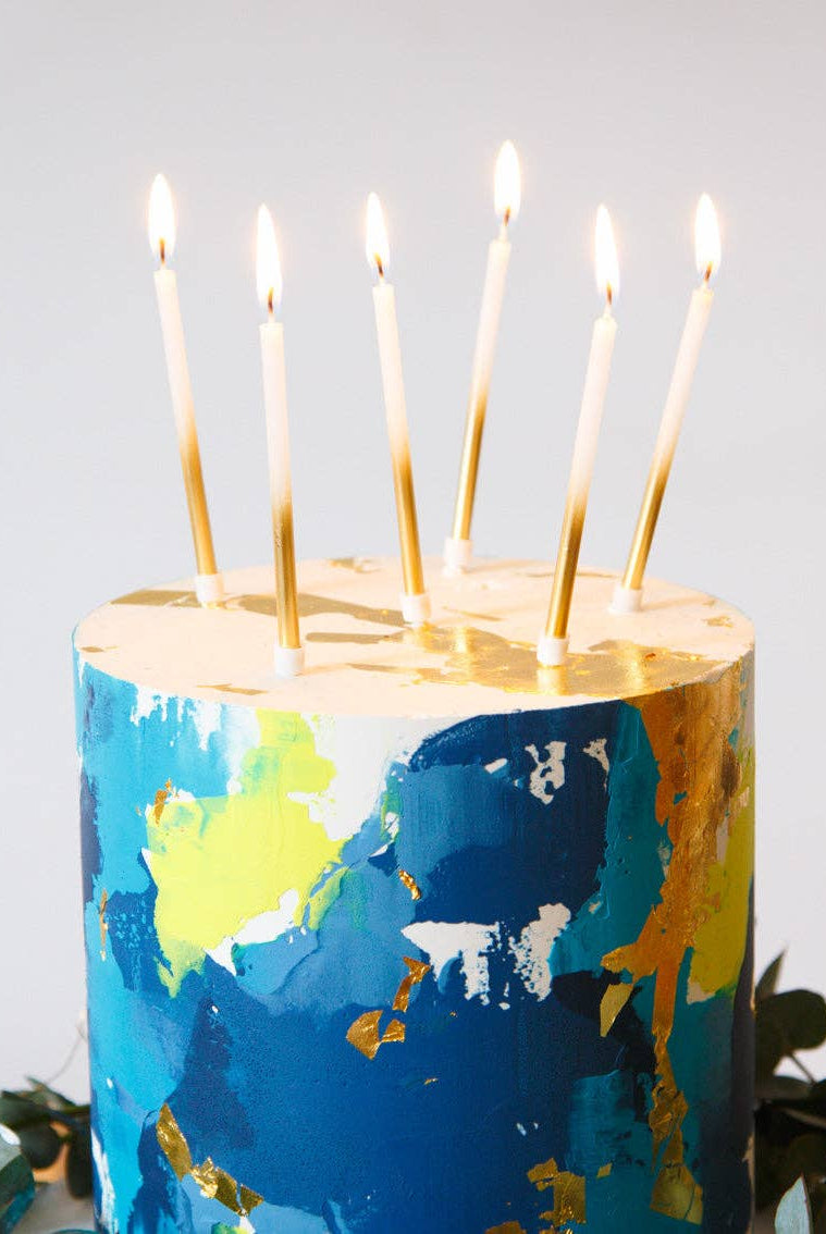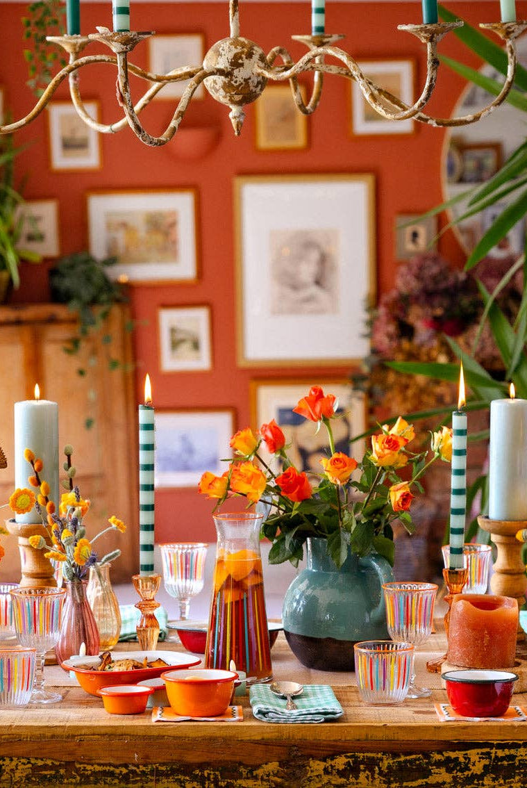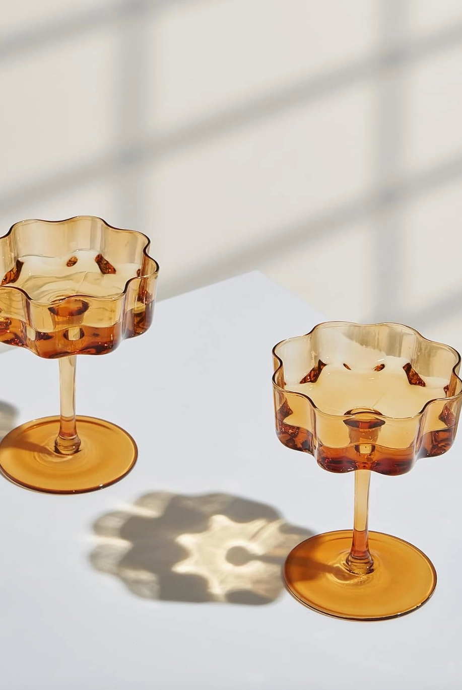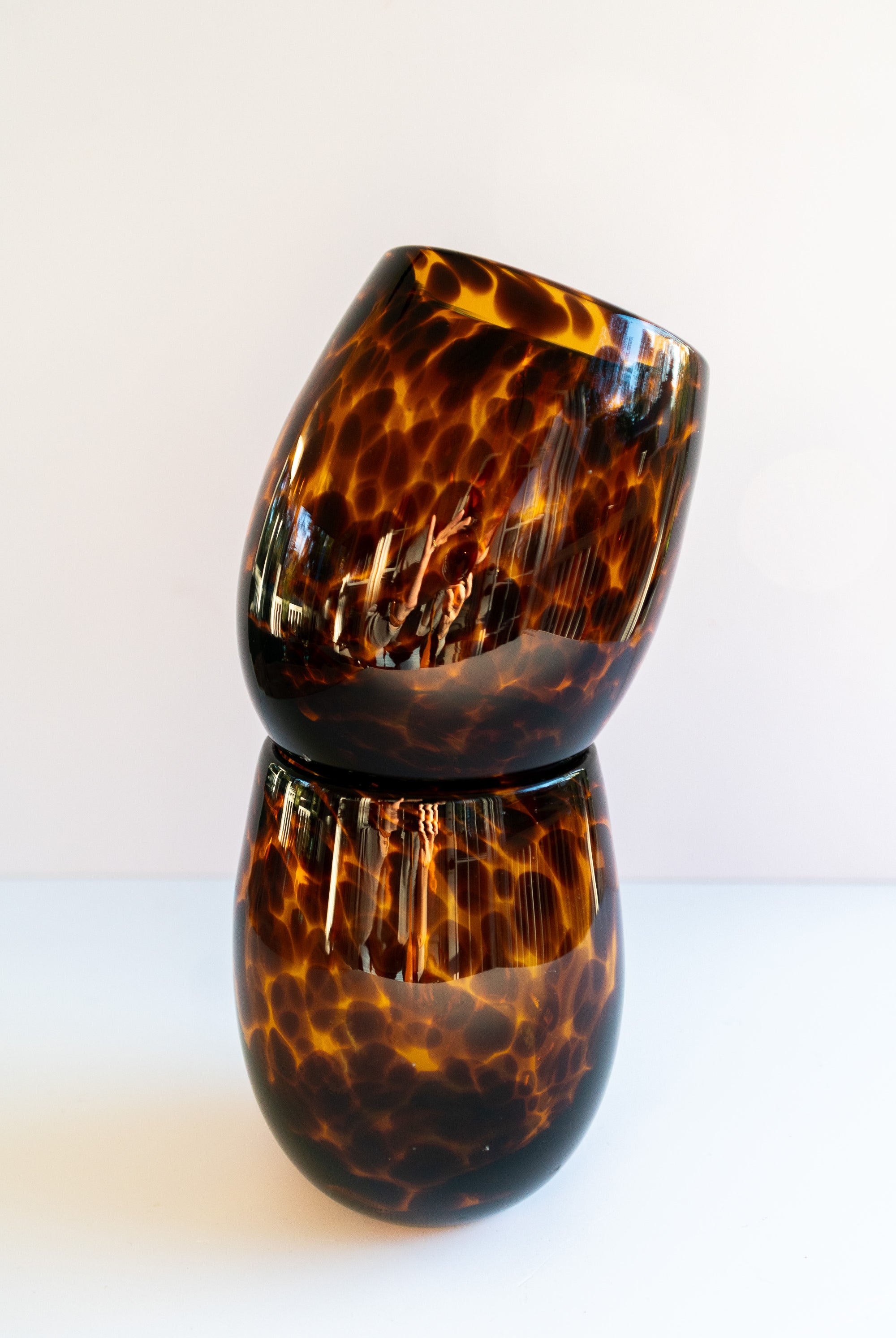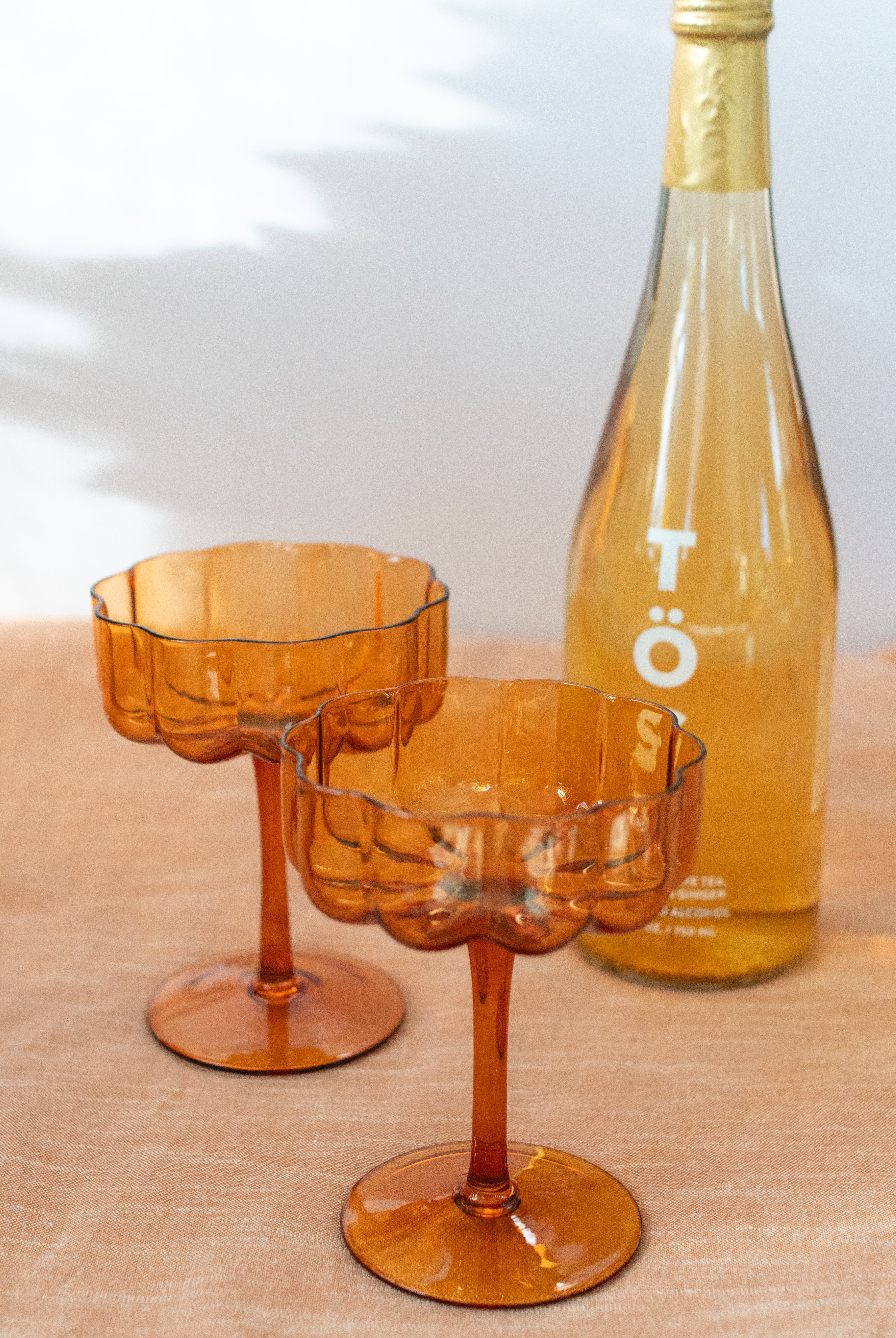 The perfect gift to bring to a host (or to update your own table setting), these green flutes with a pop of blue are a beautiful piece of functional art for your table.