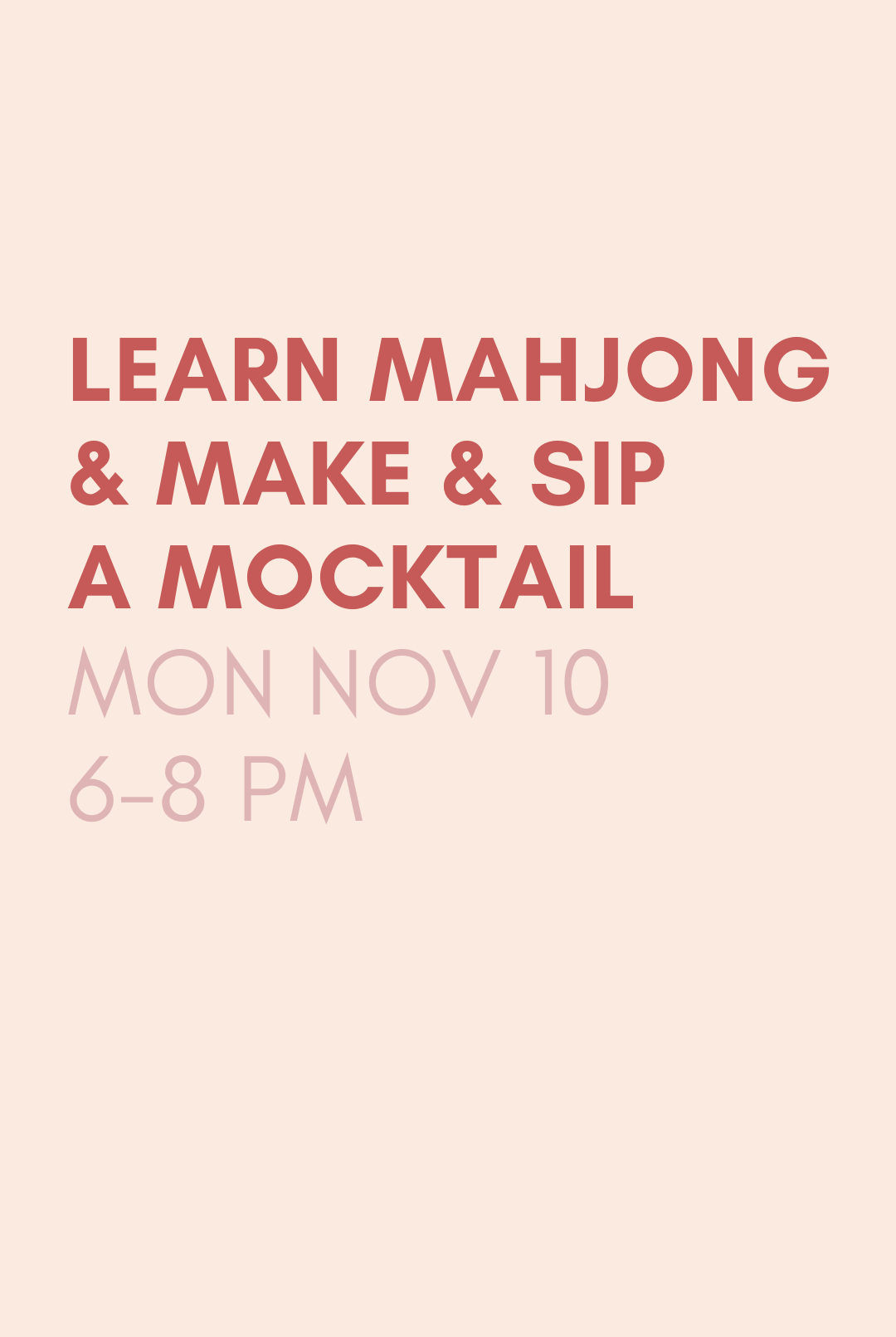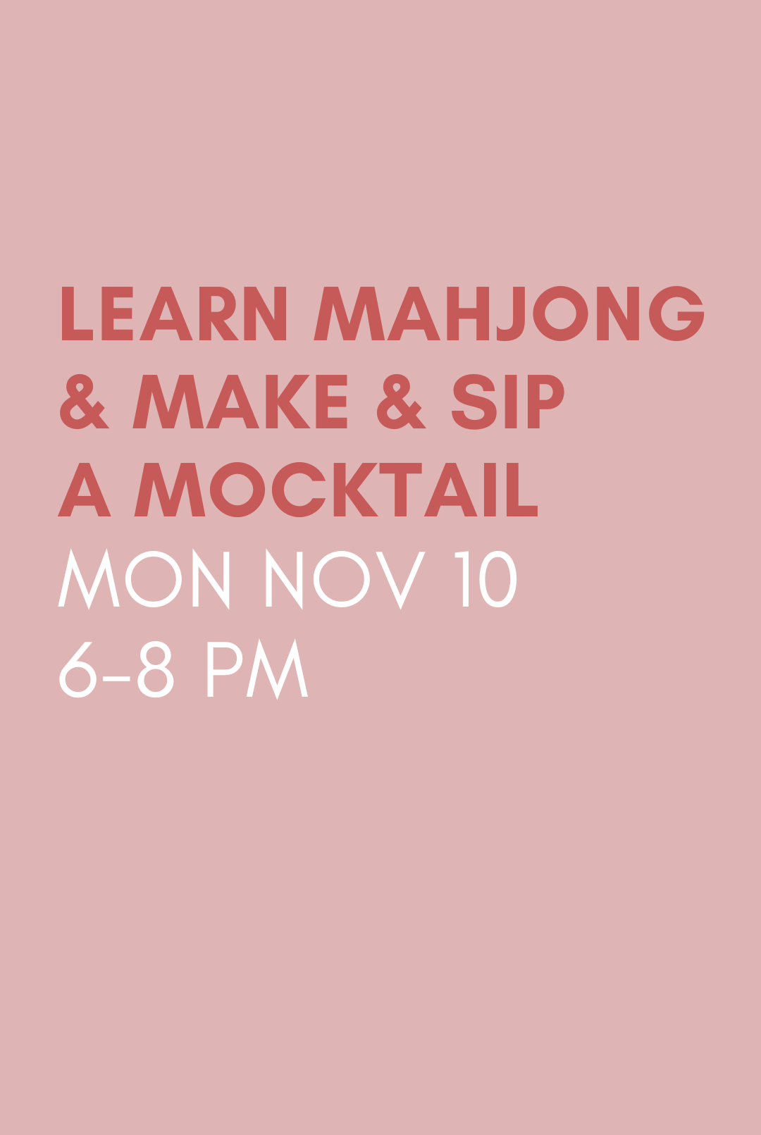 Join Gather Goods Co shop owner Michelle Smith and Mahjong instructor Mahjong With Elizabeth in this this laid-back and fun mahjong class. You'll learn how to make a simple mocktail that you'll get to drink in class while learning how to play mahjong minus the ladies who lunch vibes.