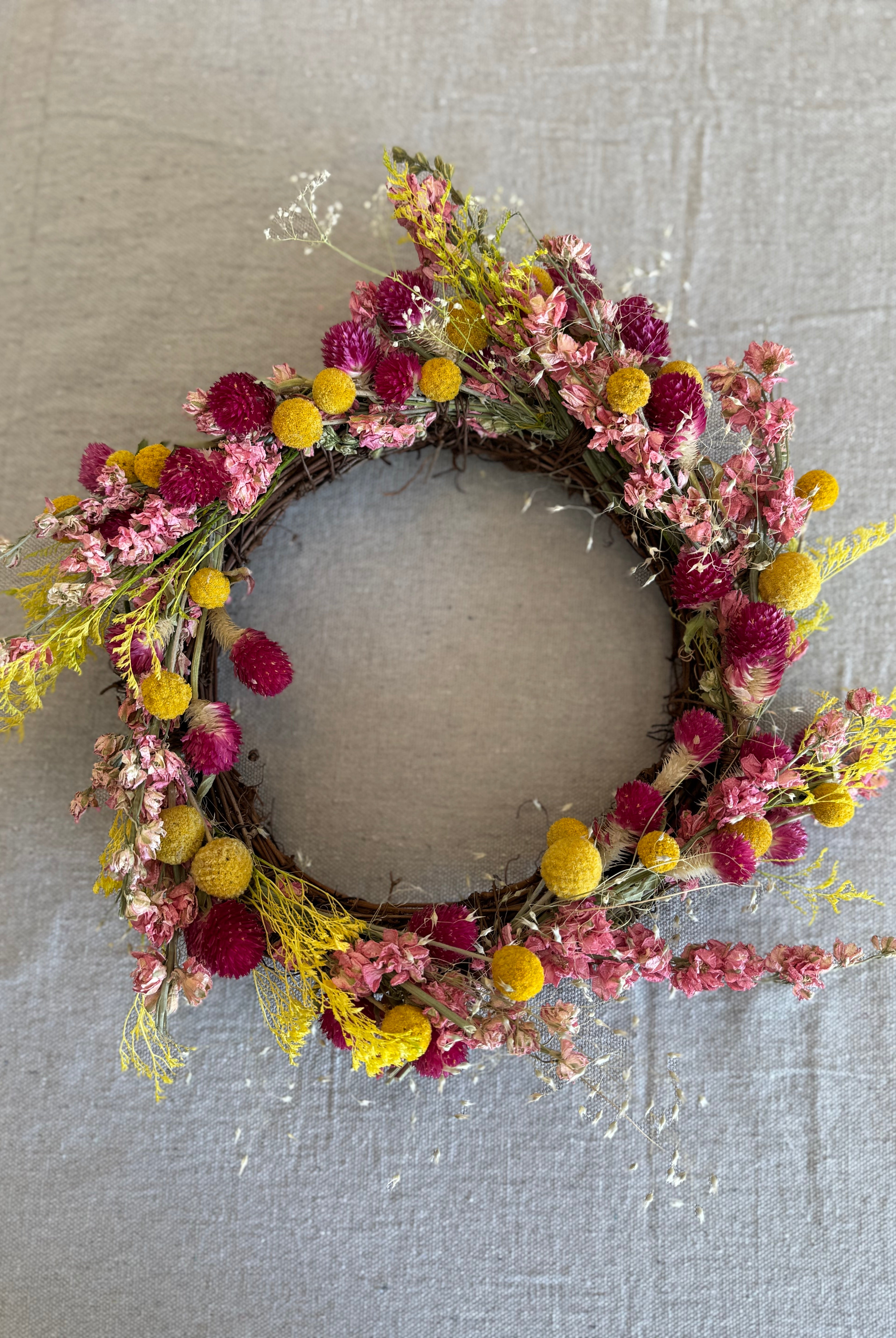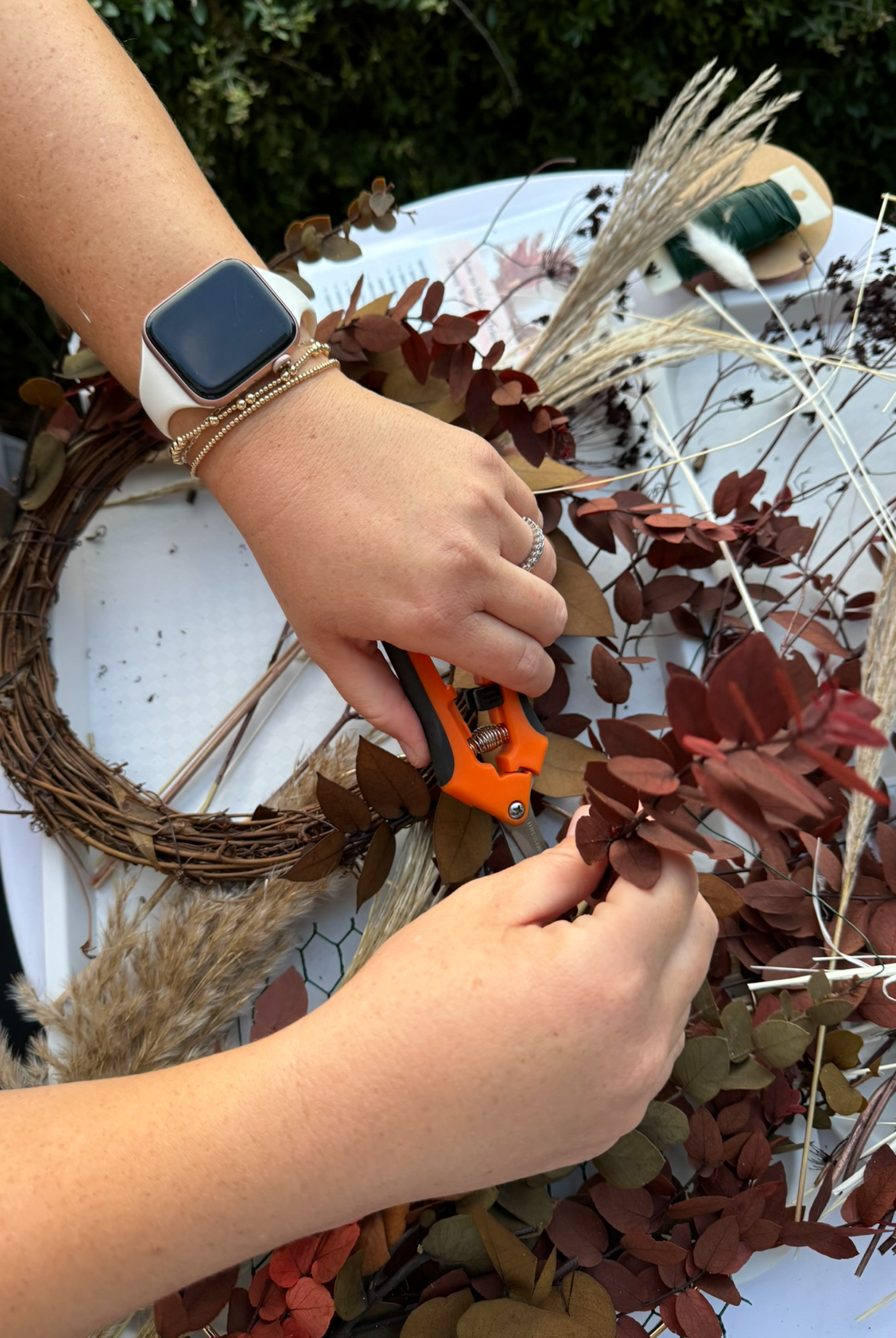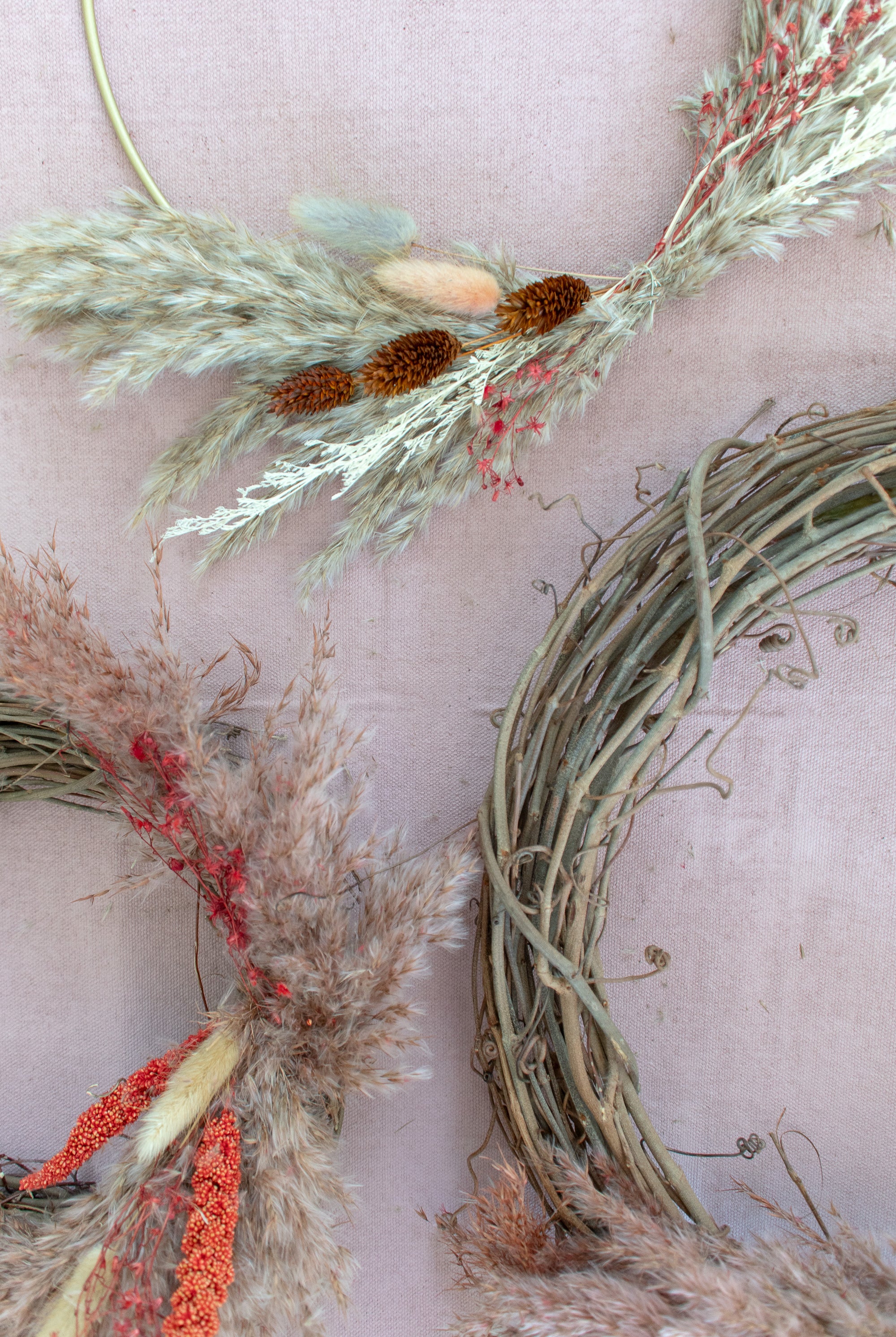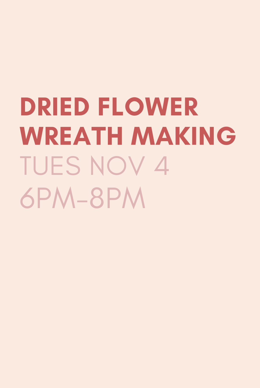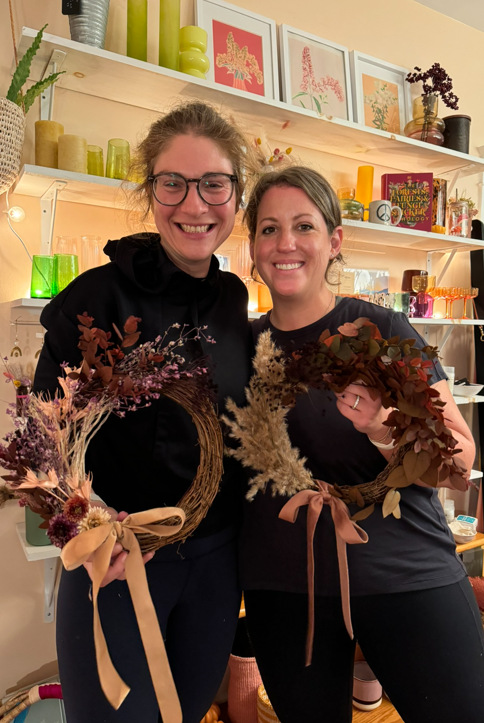 Upcoming classes at Gather Goods Co in downtown Cary in November & December including flower arranging, dried floral wreaths, learn to play mahjong, evergreen wreath and terrarium making.