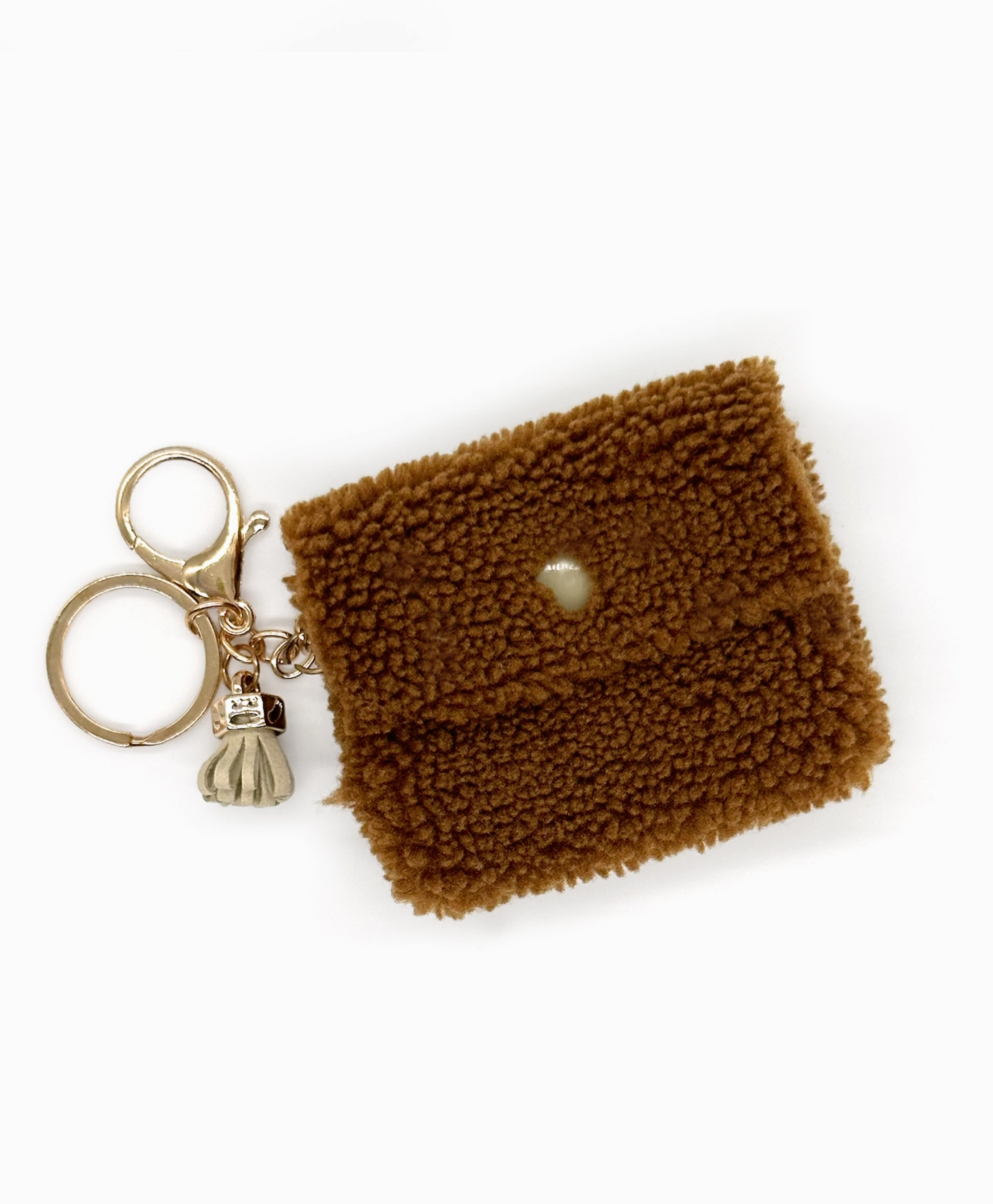 Coin Purse Key Chain in Brown Boucle