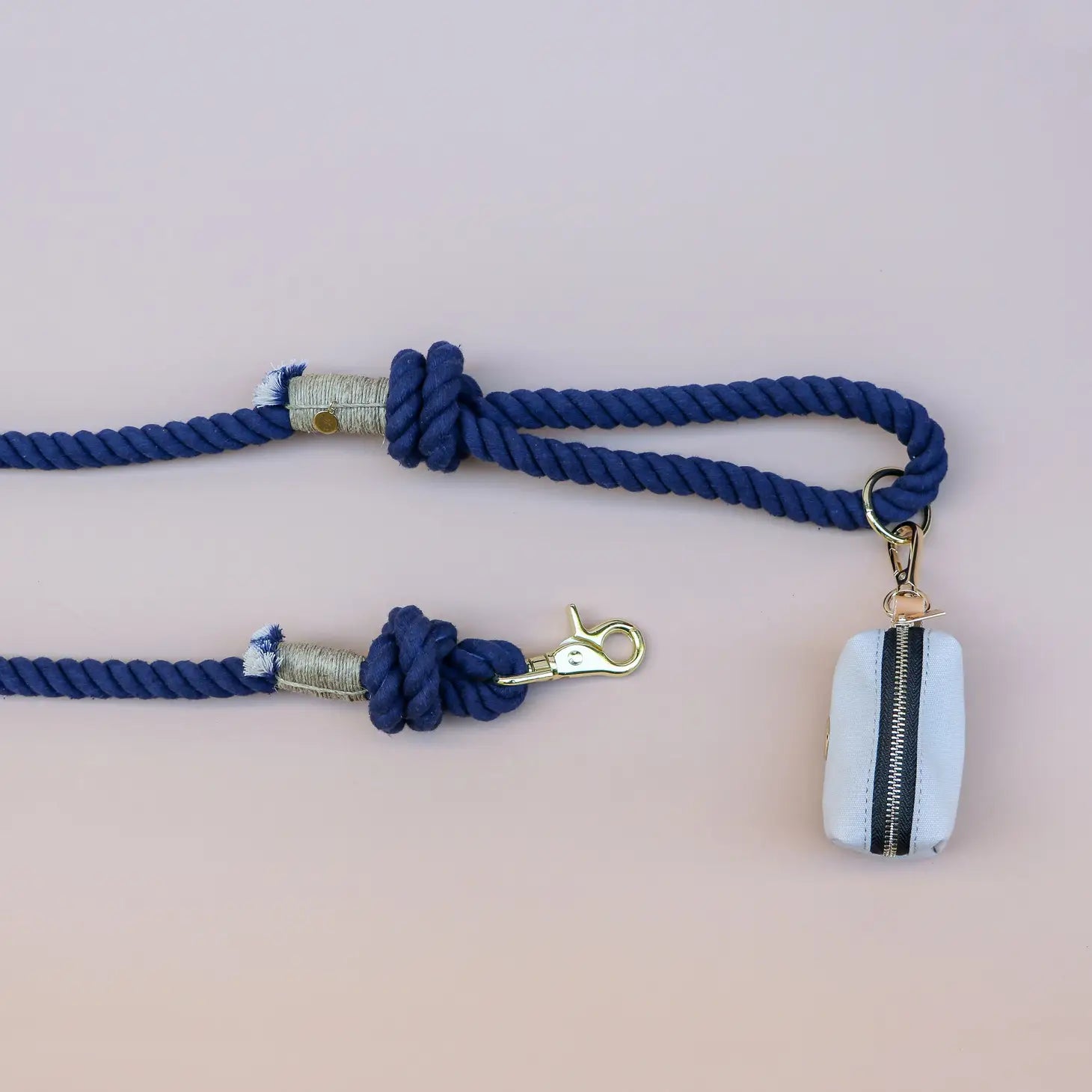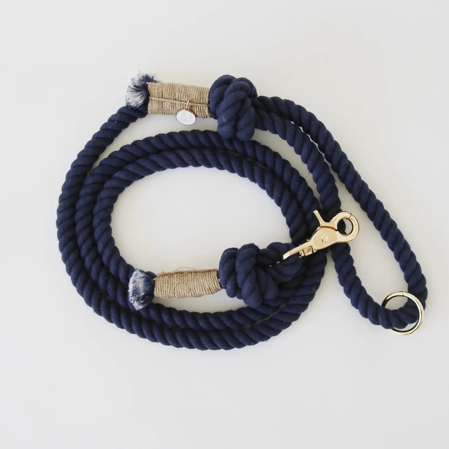 It's impossible to walk unnoticed with our cute rope leashes. Good for city walks or park runs, our durable and strong leashes are perfect for all occasions. Our rope is hand-spliced and whipped with strong twine at the ends, ensuring a great quality and making sure your furry friend remains attached to you at all times. Details: 1/2" thick and 5 ft length. Light gold hardware. 100% organic cotton rope and natural dyes. Handmade and hand dyed. Color: navy blue. One size.