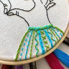 This pattern is a gentle introduction to 7 fun stitches, featuring a mystery handpicked color palette so no two finished embroidery hoops will be the same.