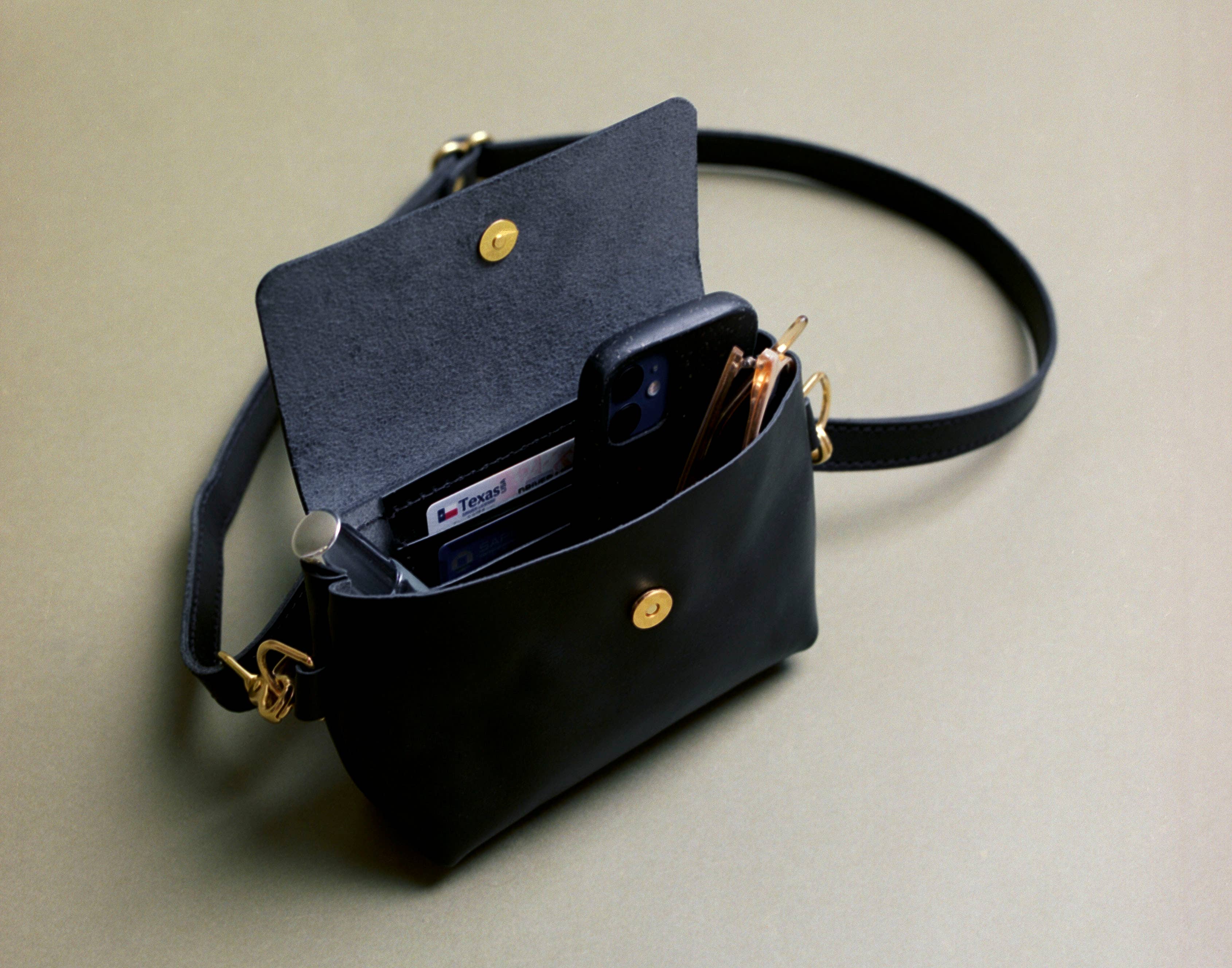 Leather Crossbody Bag in Black