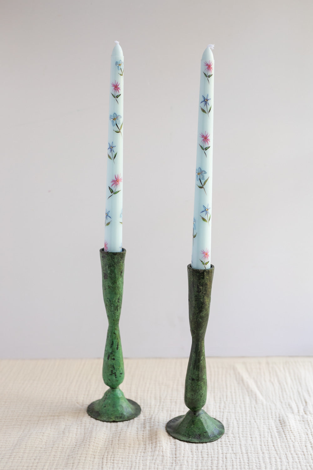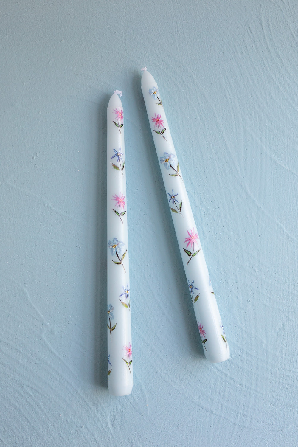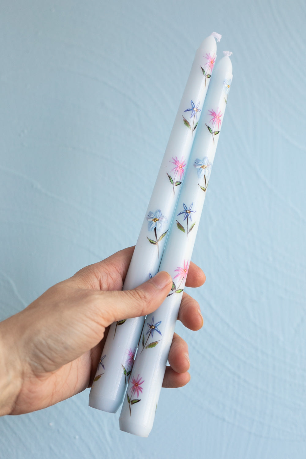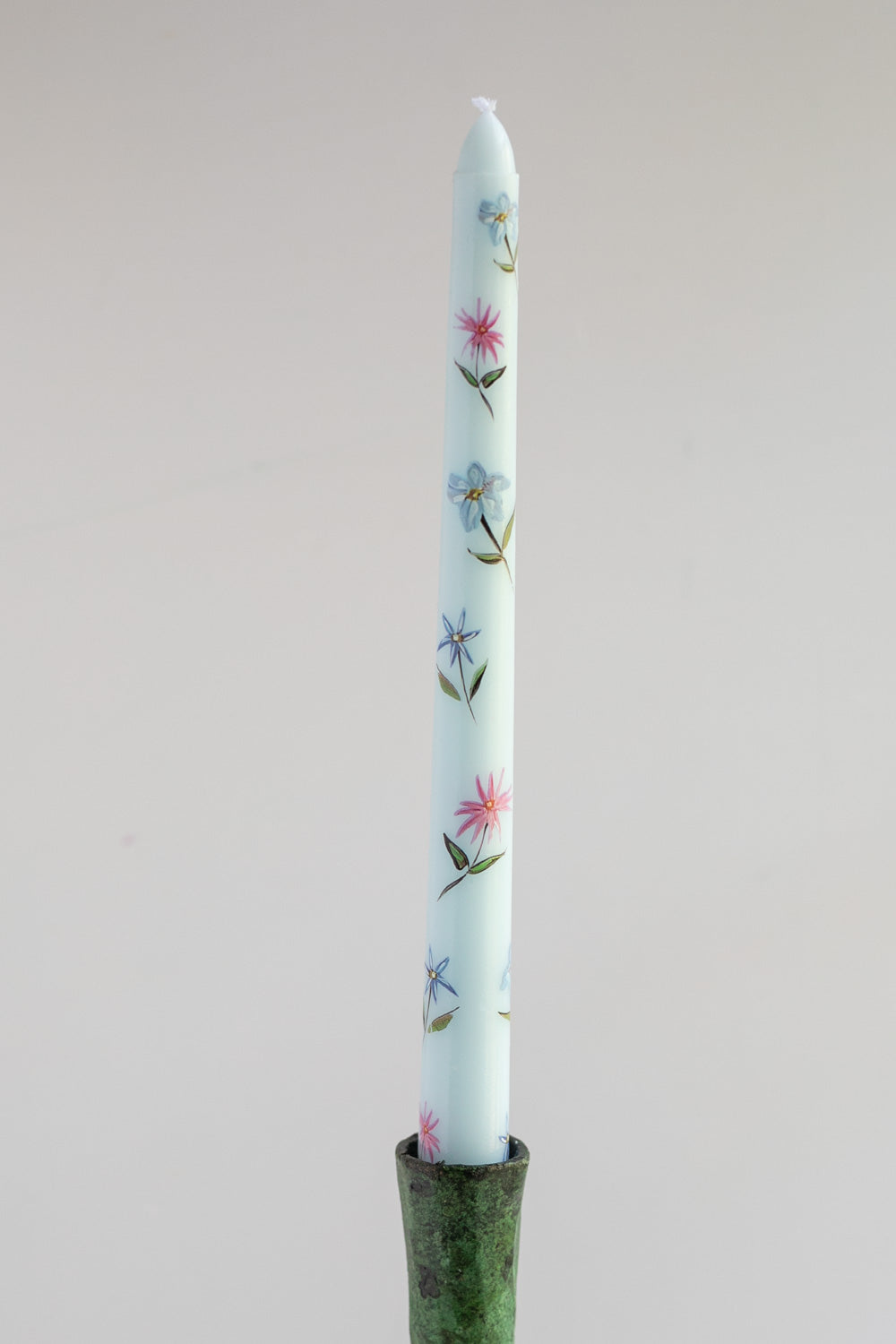 Pressed Flower Candle, Light Blue Taper Candle