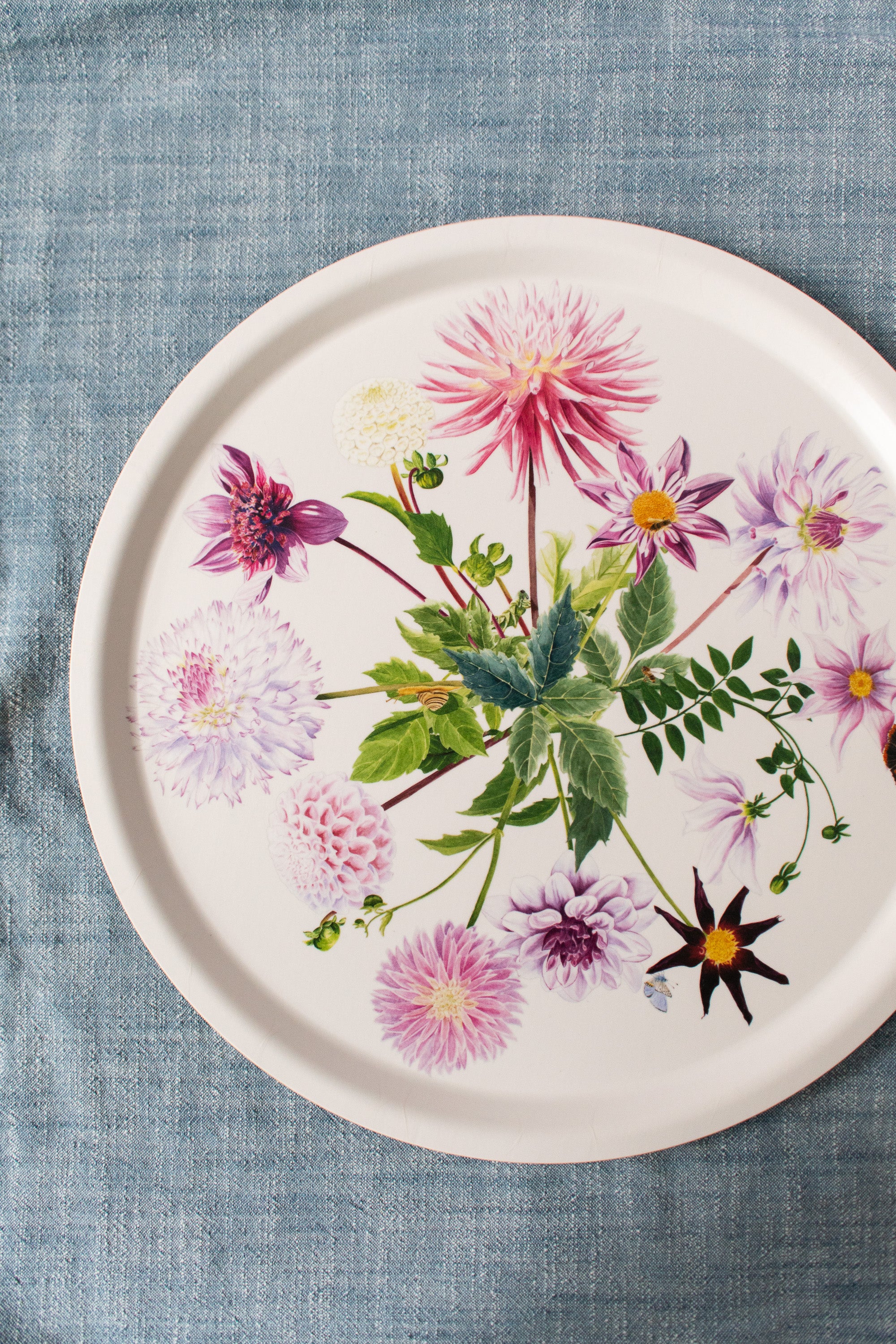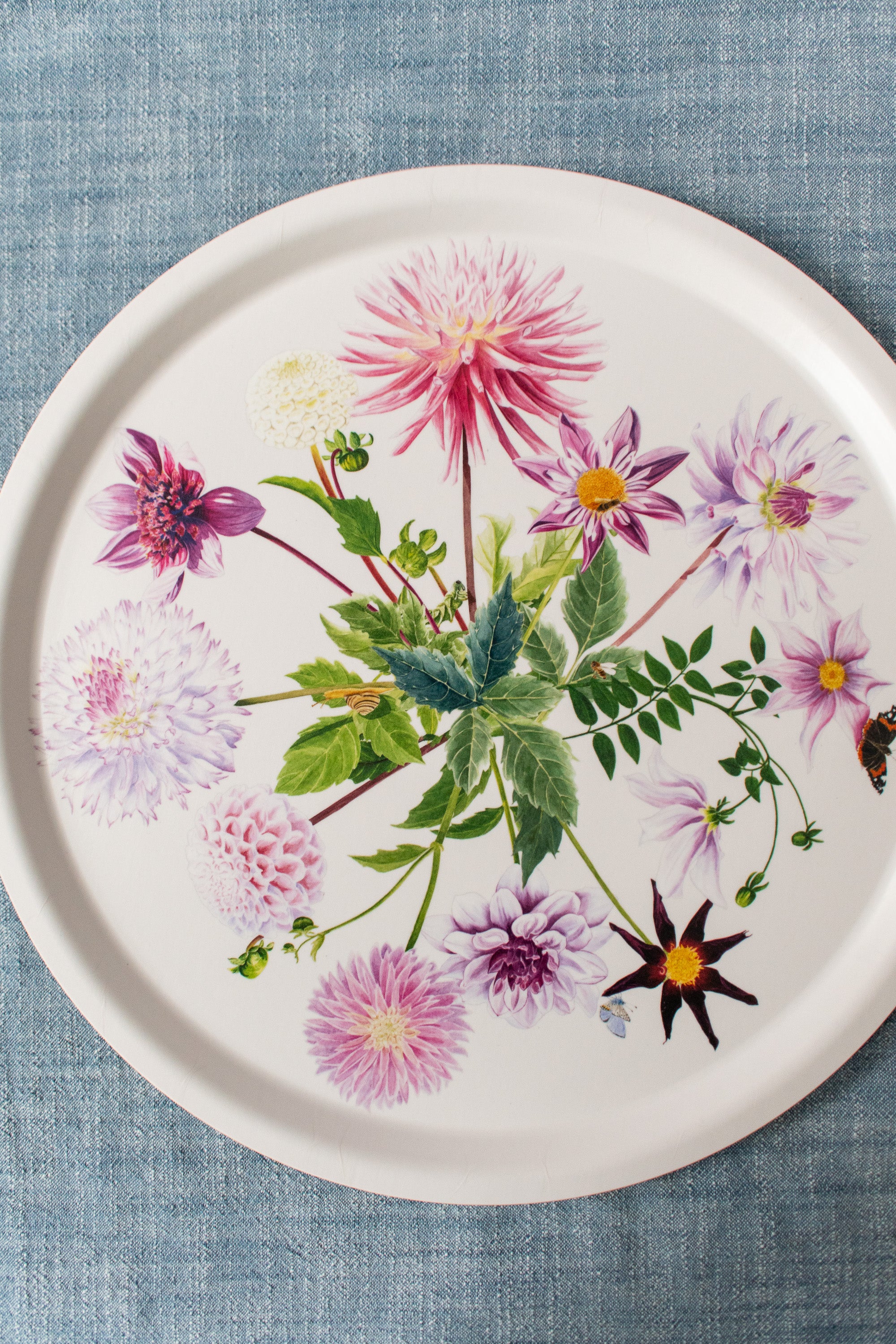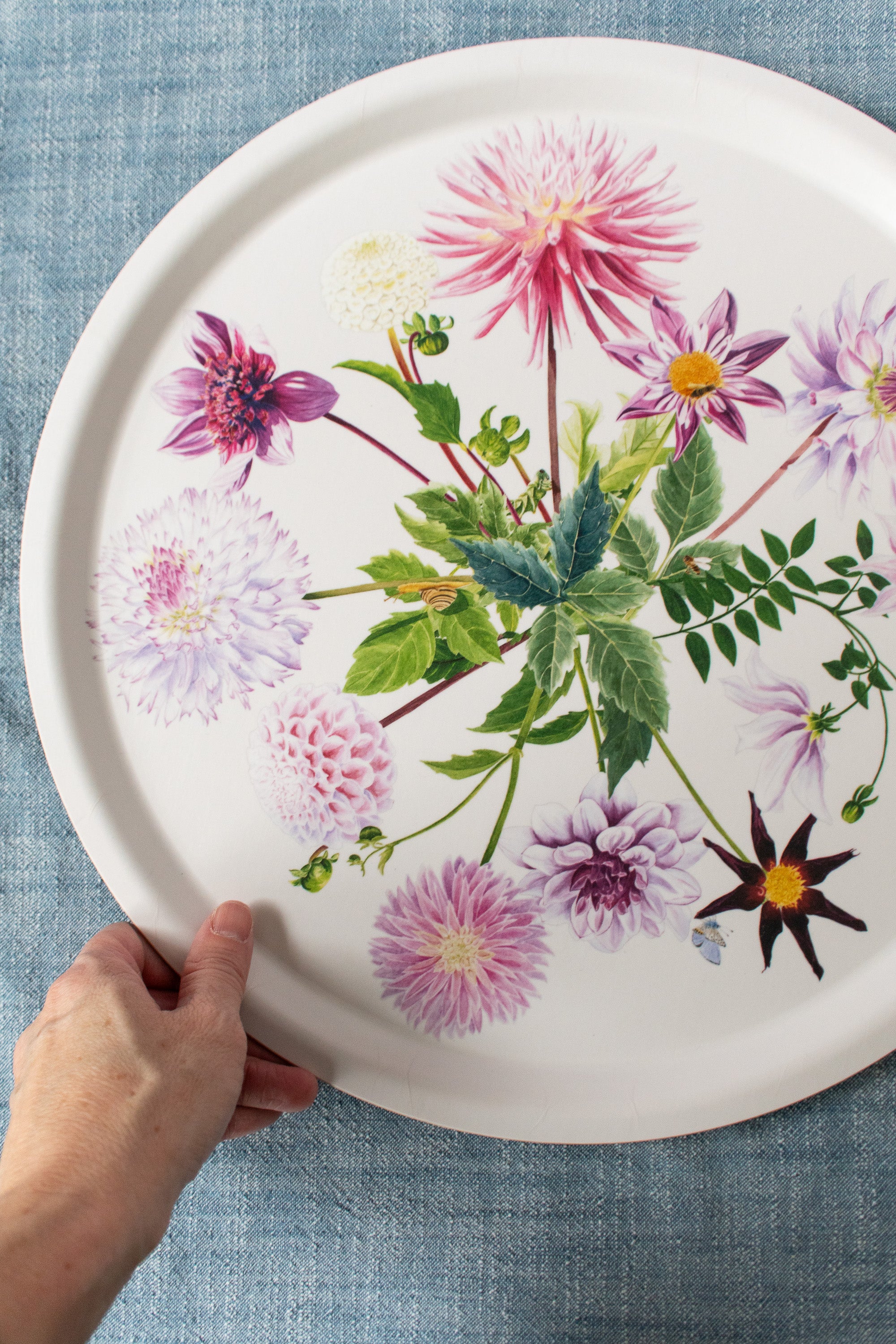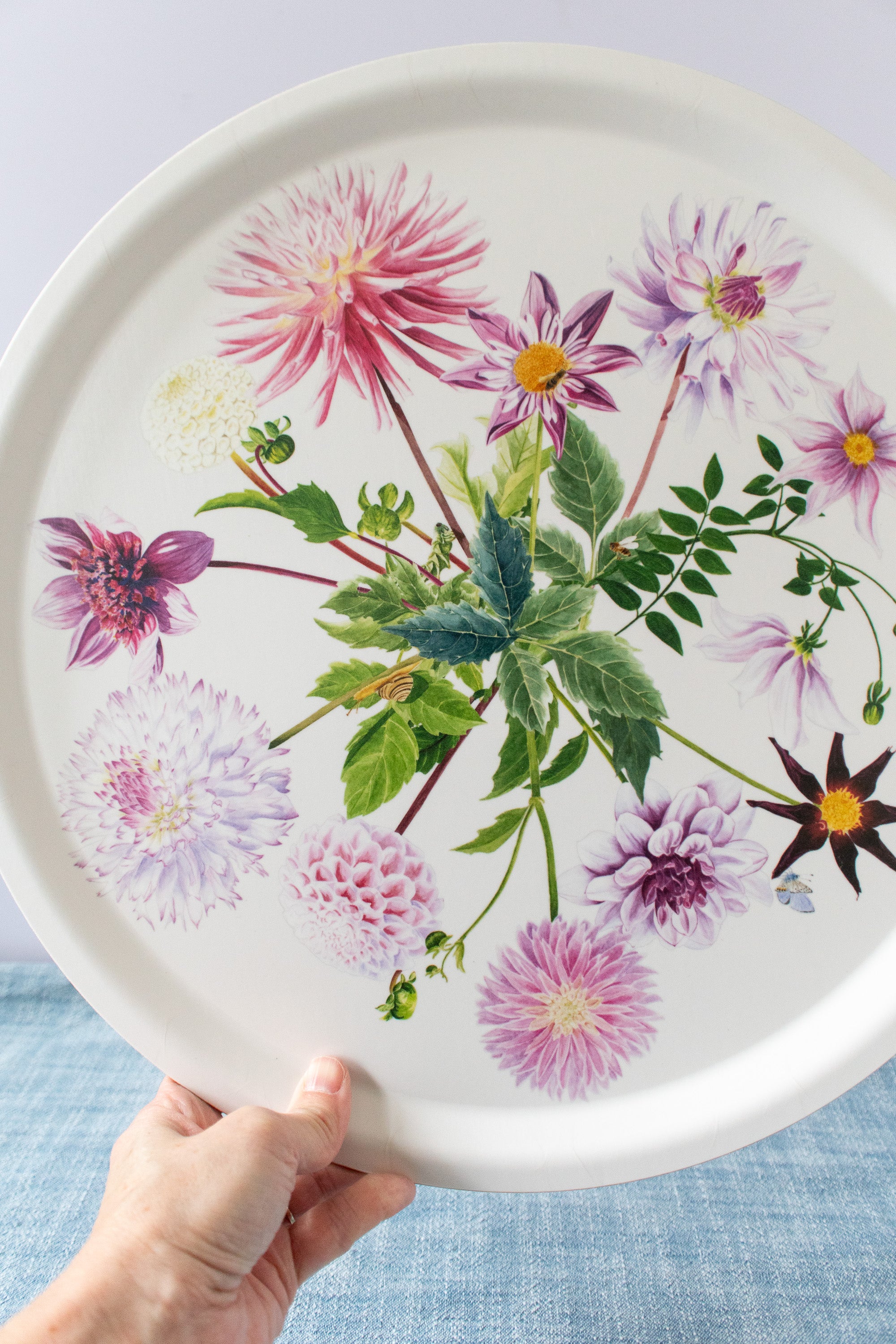 Wooden Serving Tray with Dahlia Illustration – A Beautiful Hostess Gift