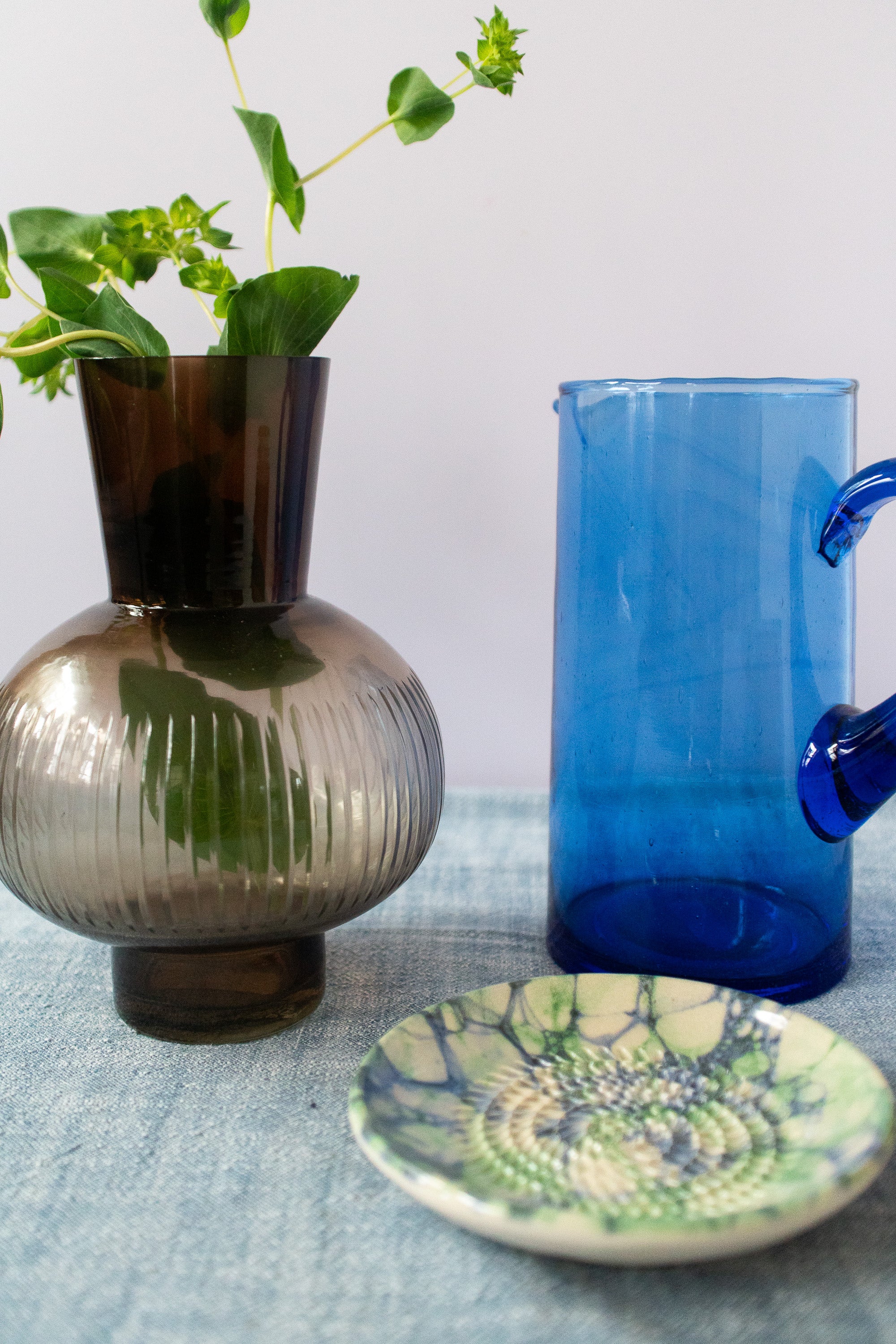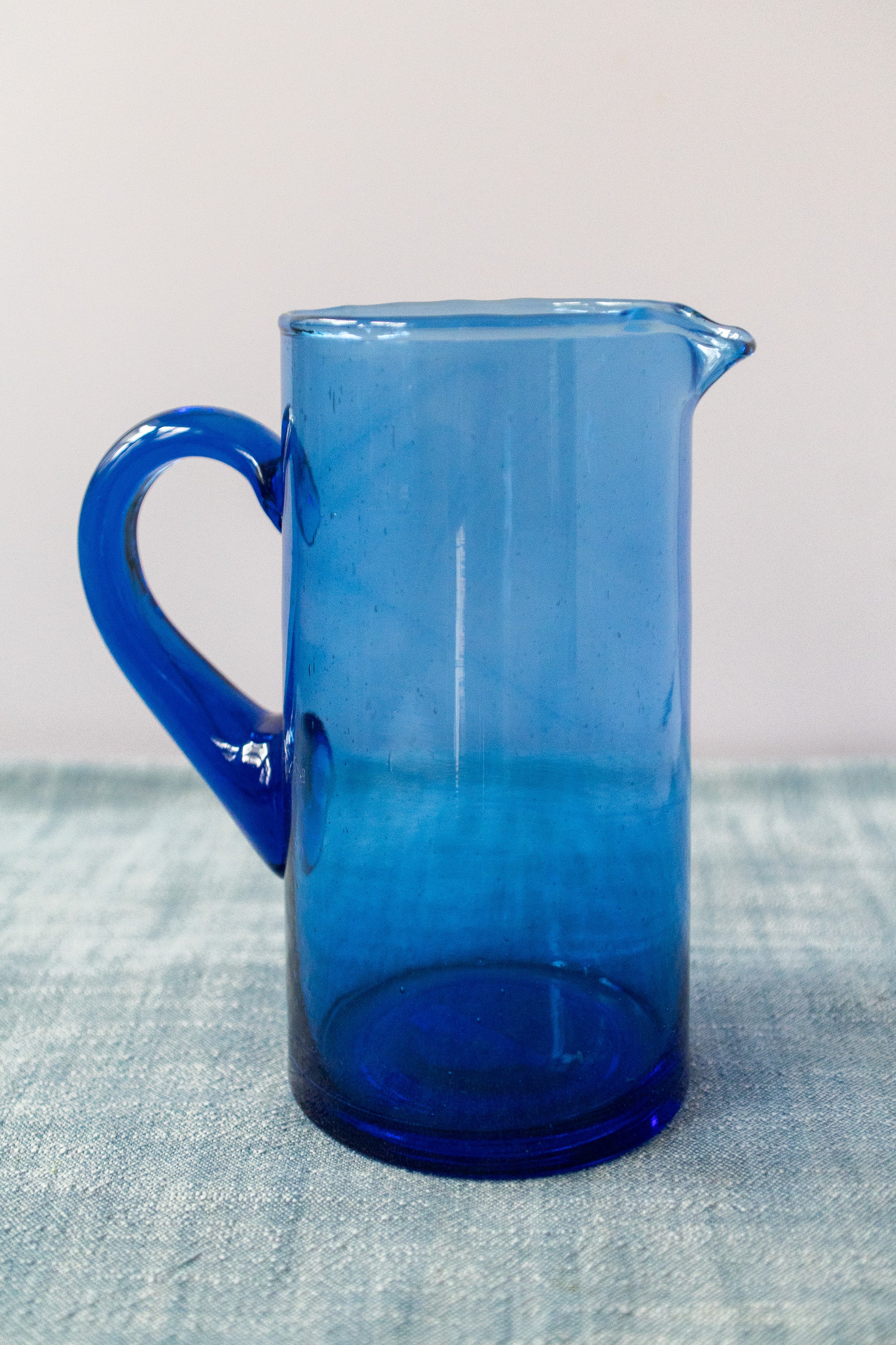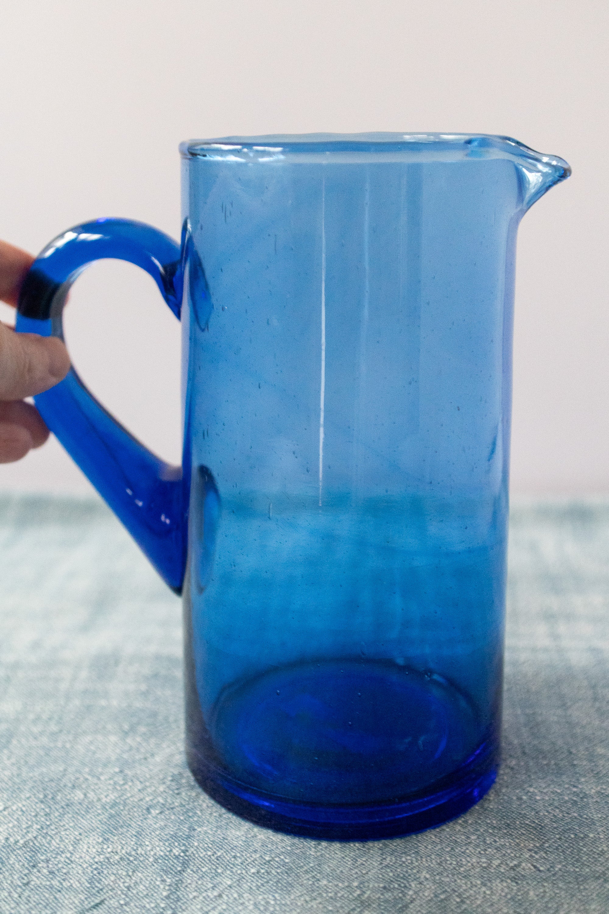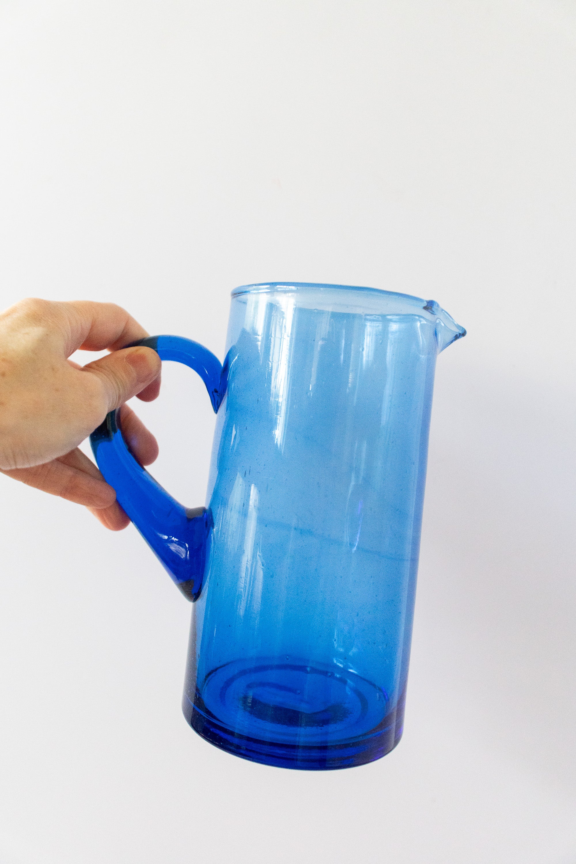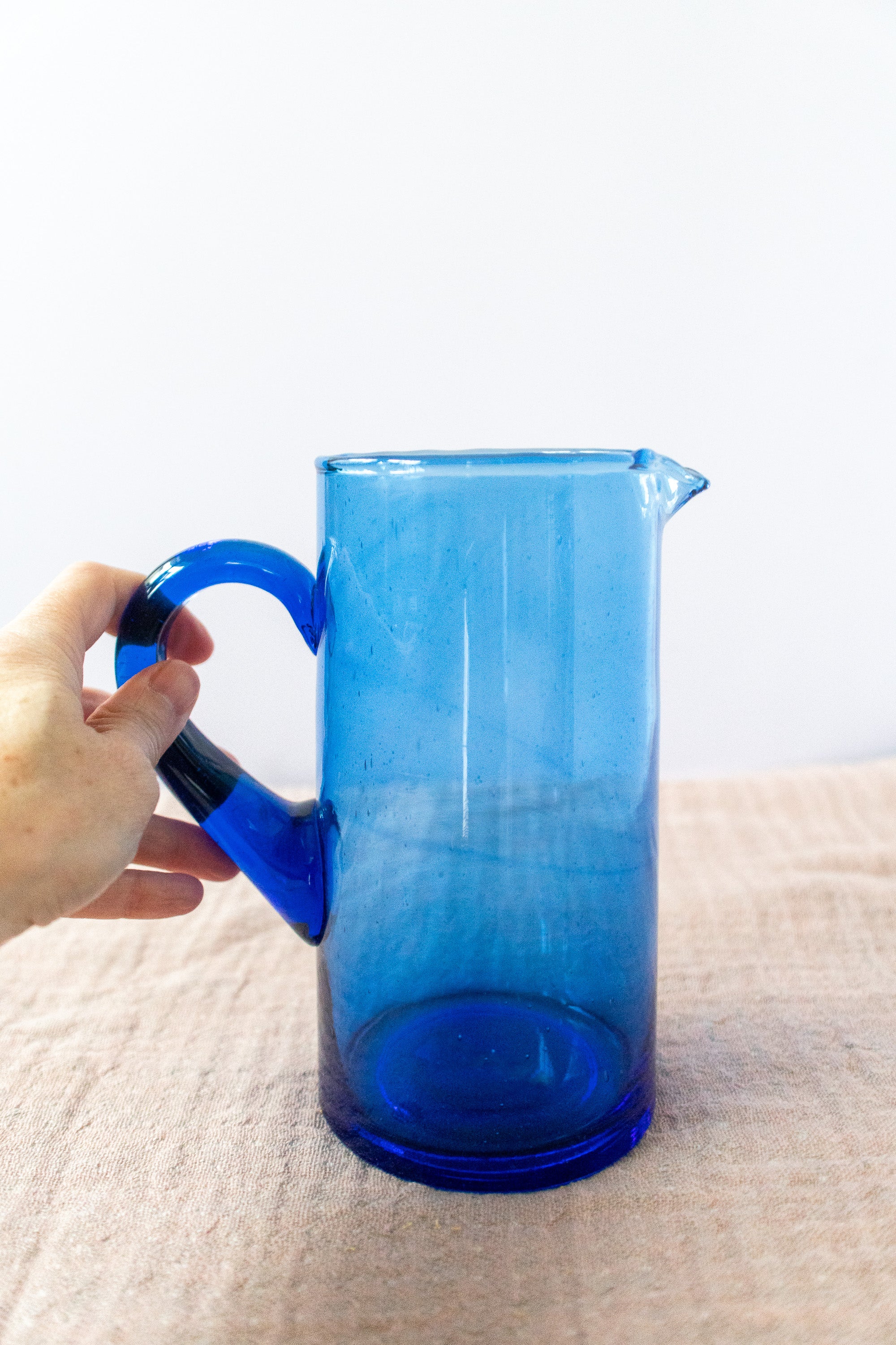Amber Hand-Blown Hammered Glass Carafe, Artisan Beverage Pitcher