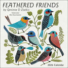 For birders and nature lovers, the Feathered Friends 2026 Wall Calendar showcases colorful illustrations of cheerful birds frolicking among vibrant flowers and plants.