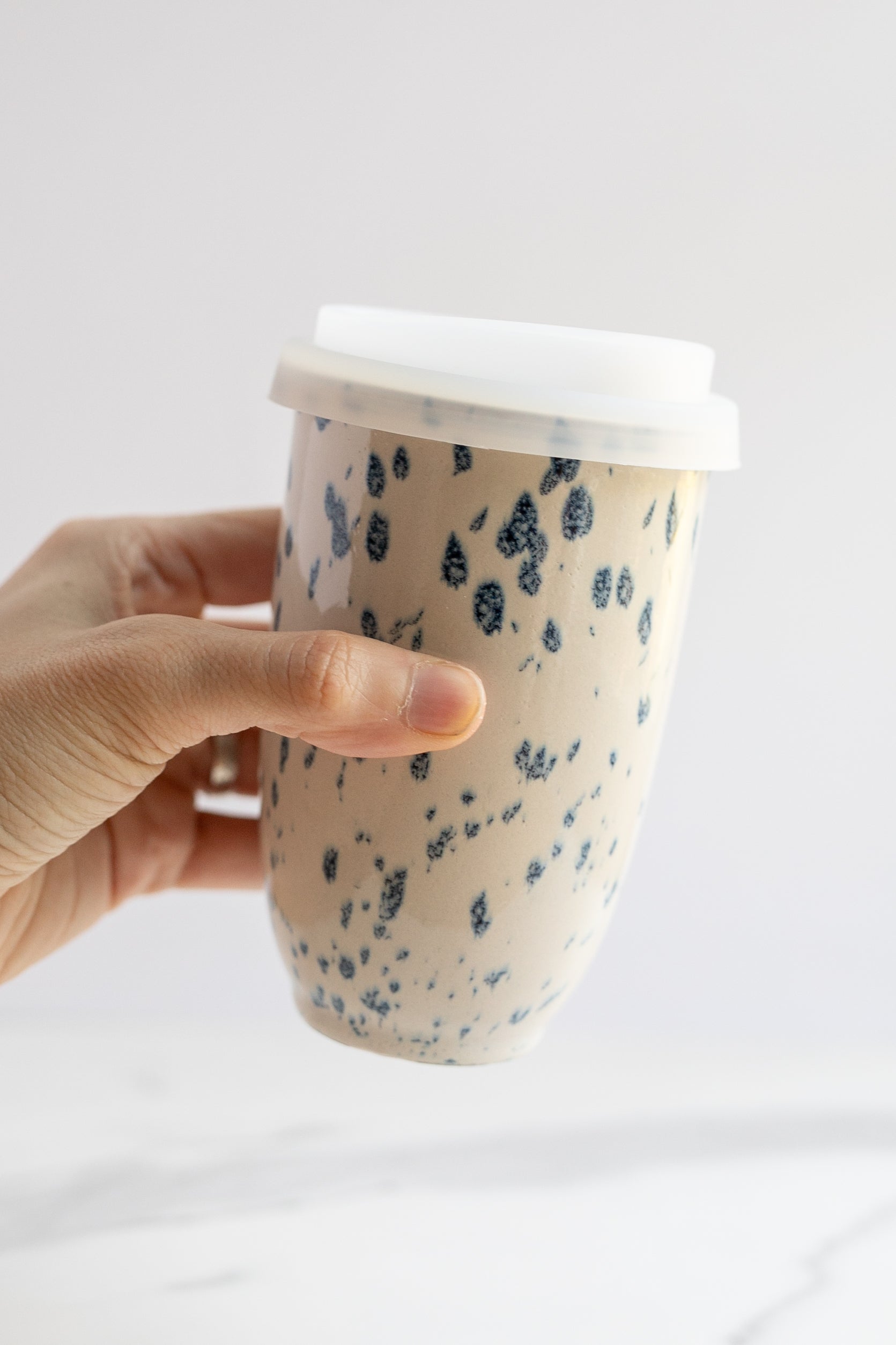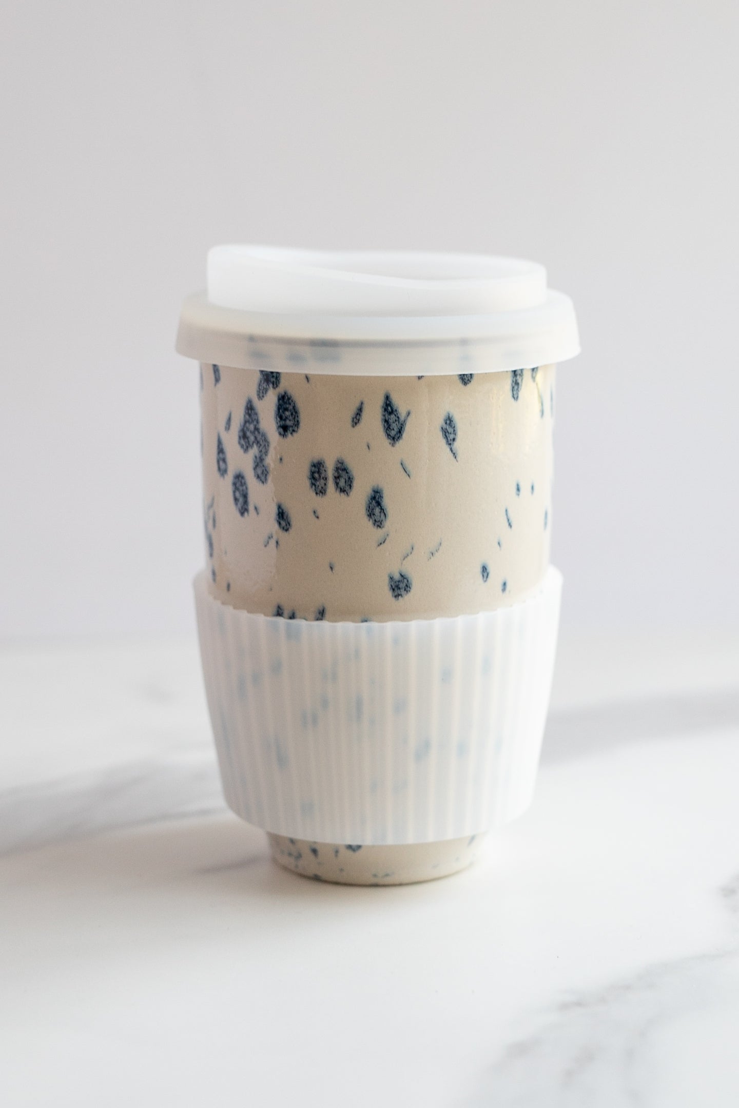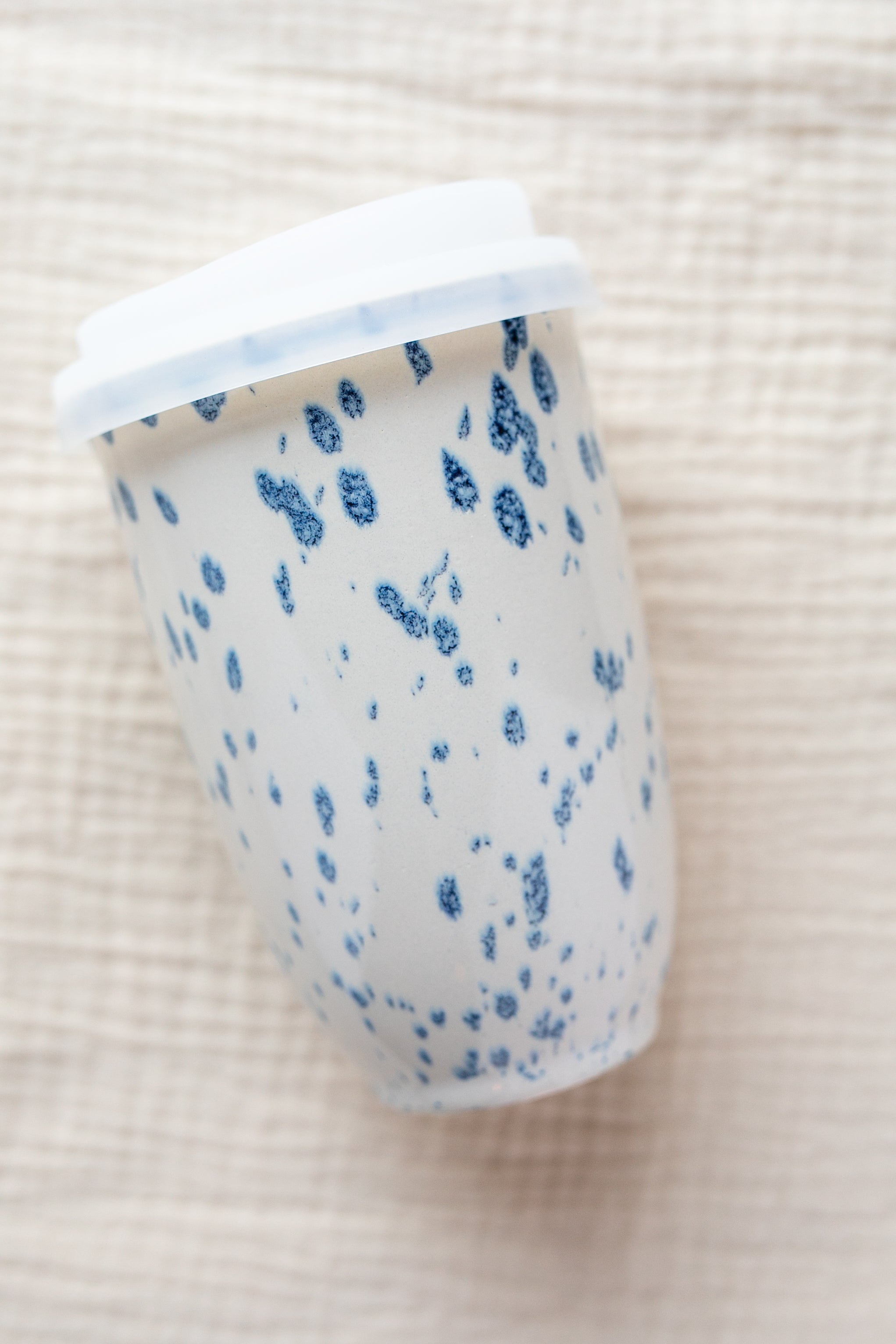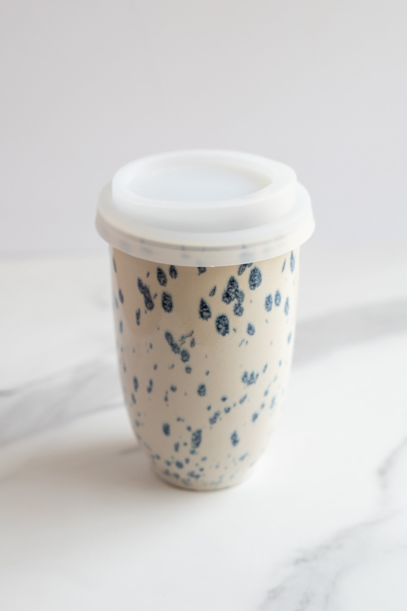 Blue Splatterware Ceramic Travel Mug, 12oz