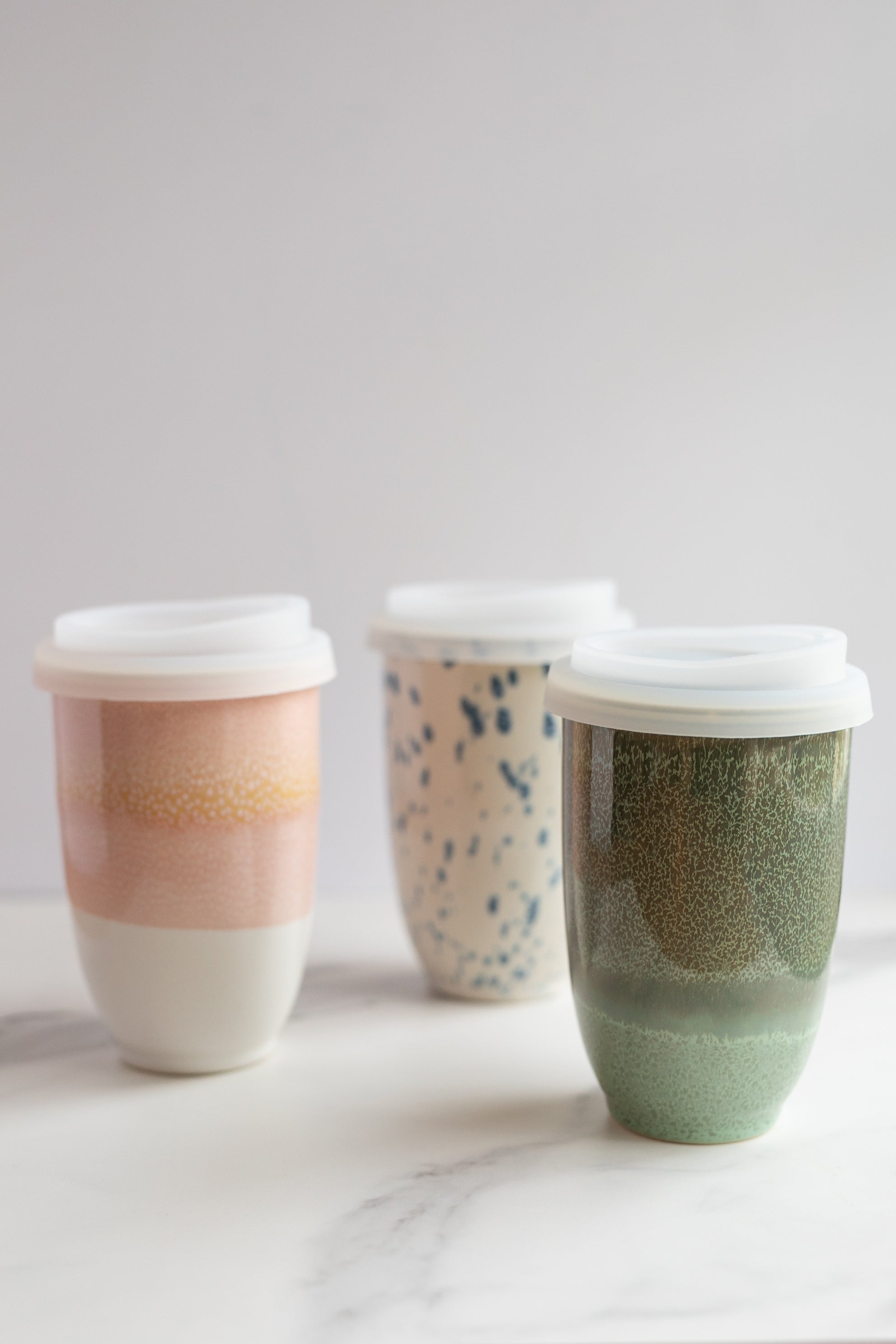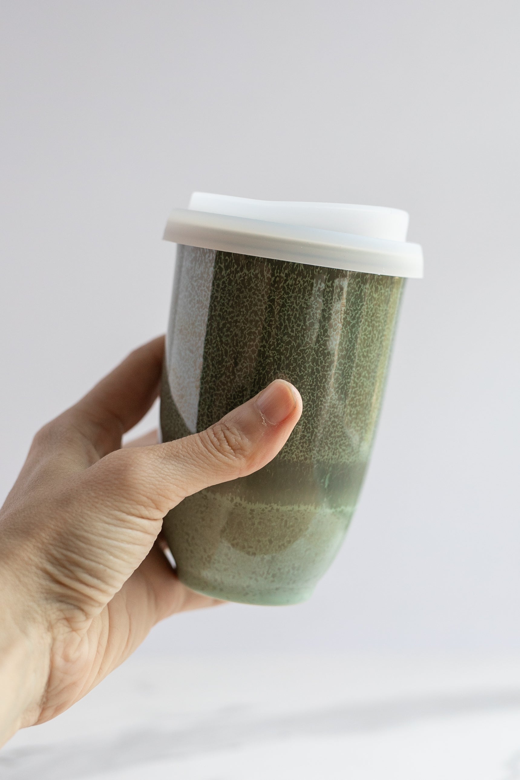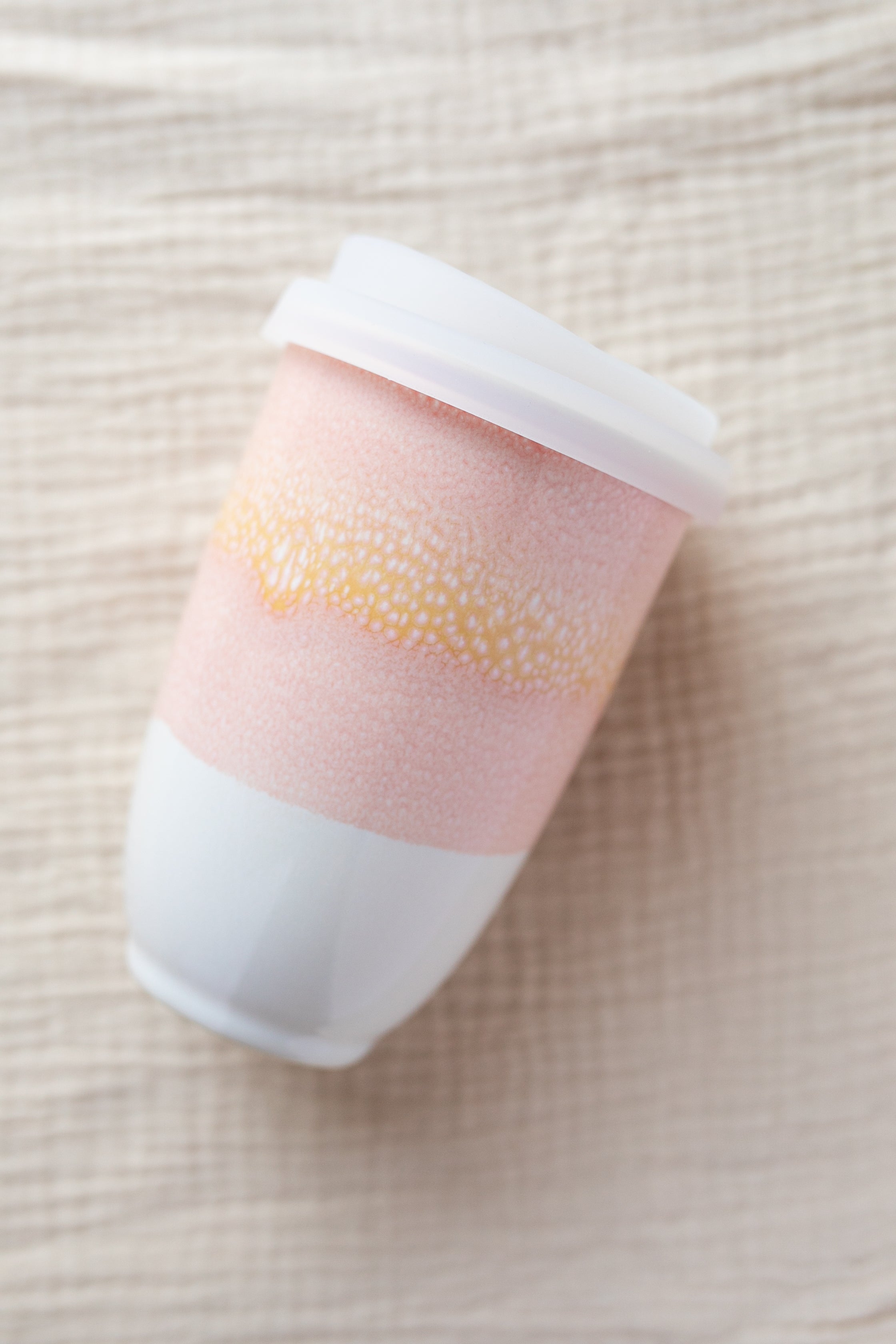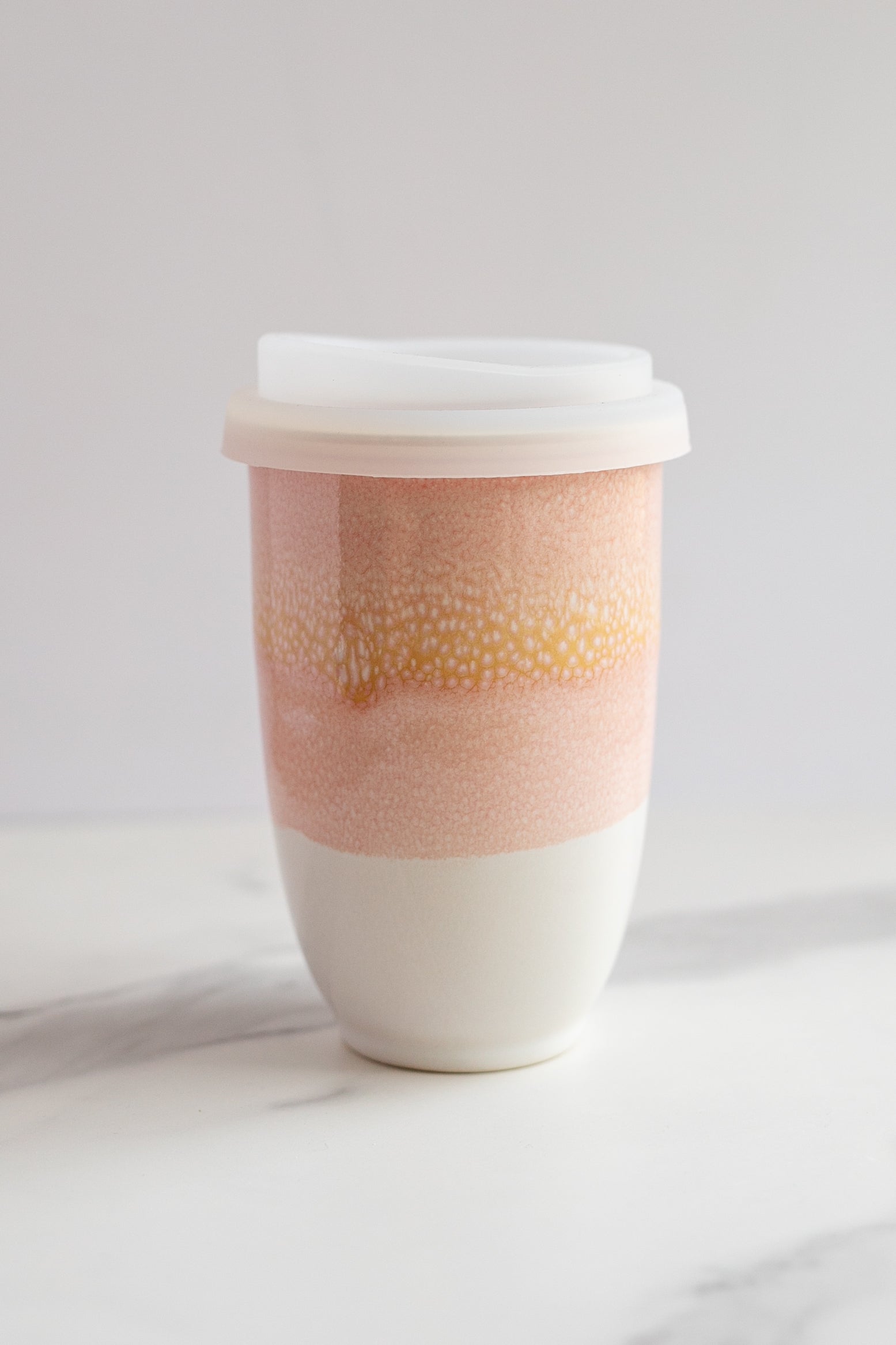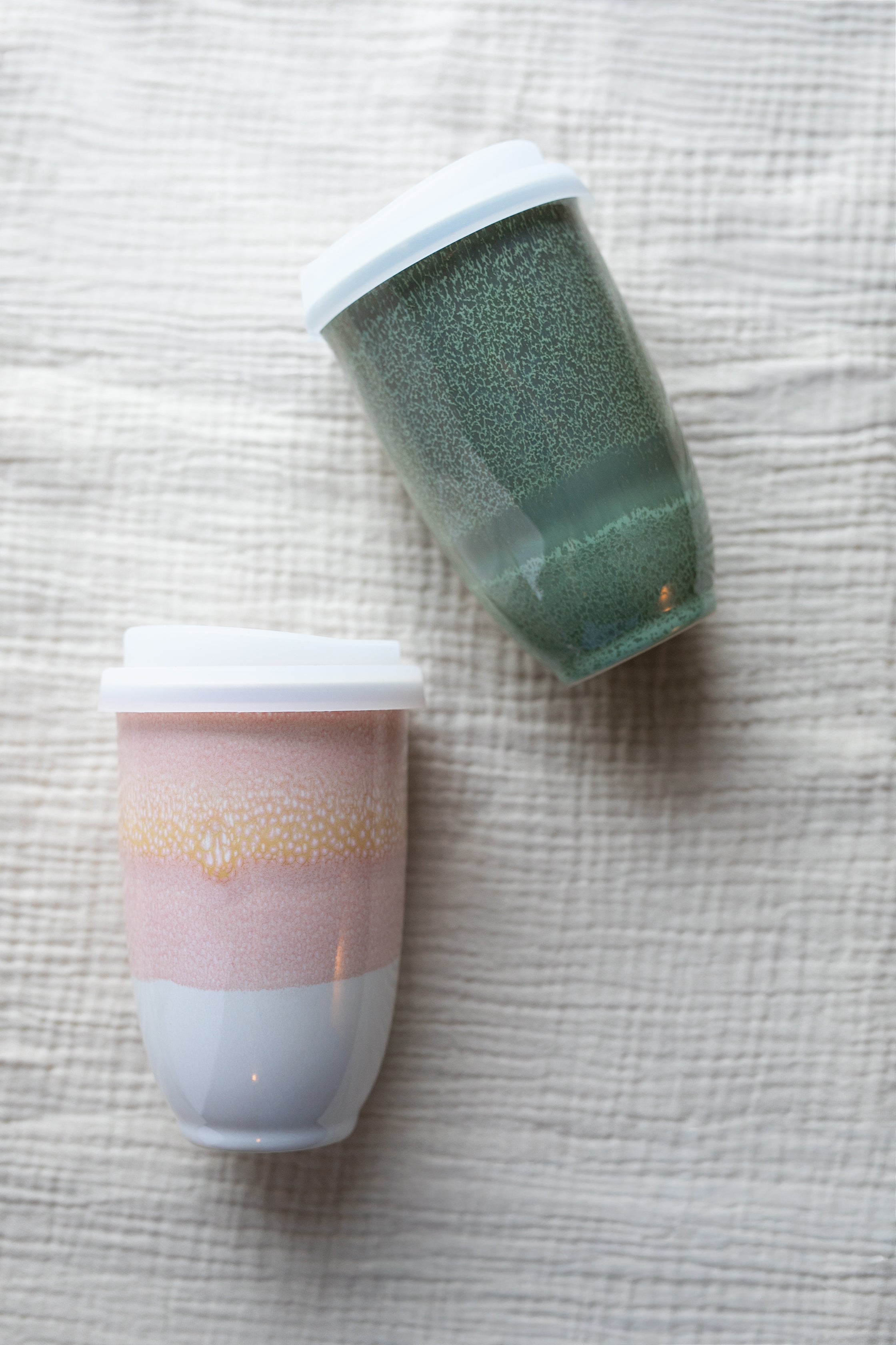 Ceramic Travel Mug, To Go Cup, White & Cream