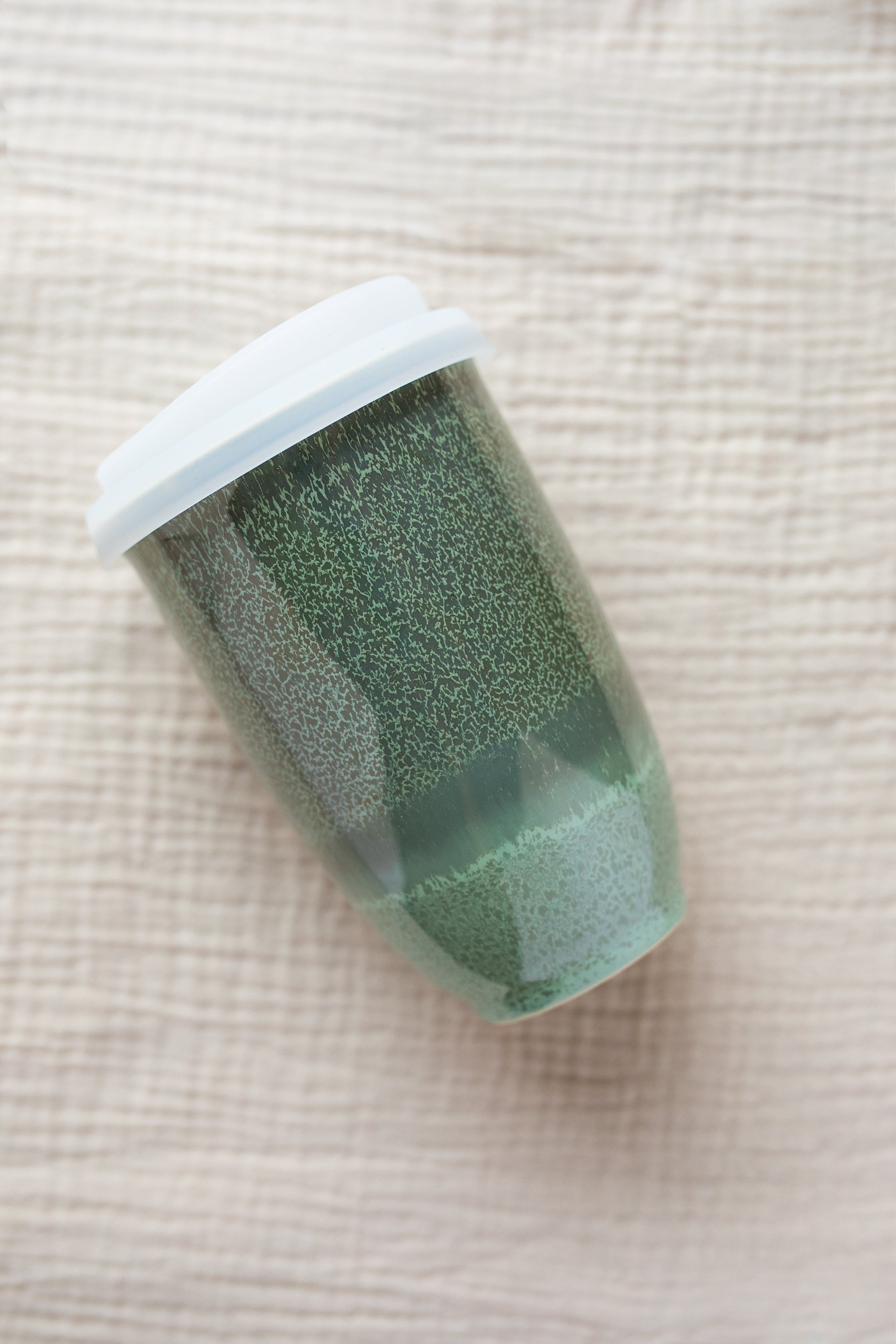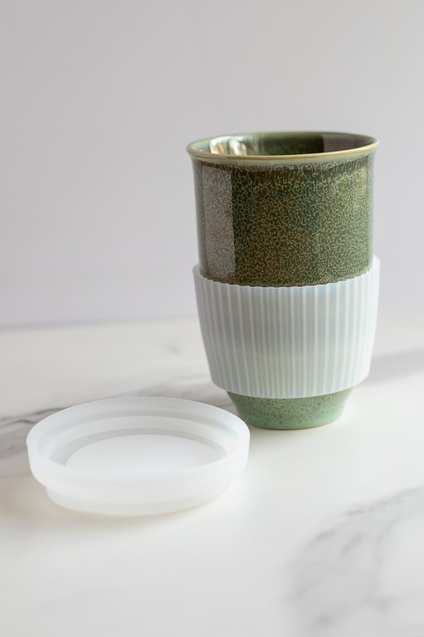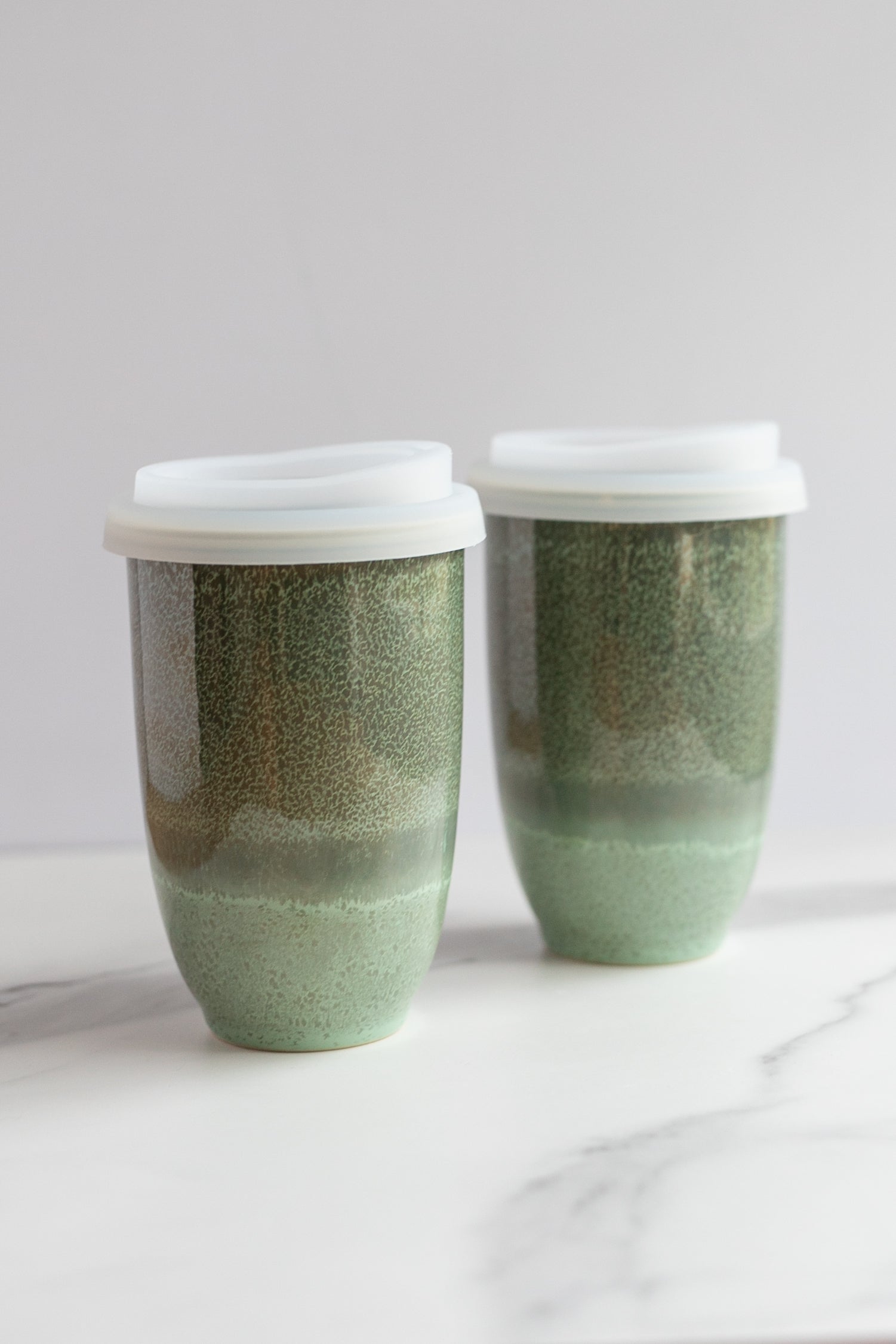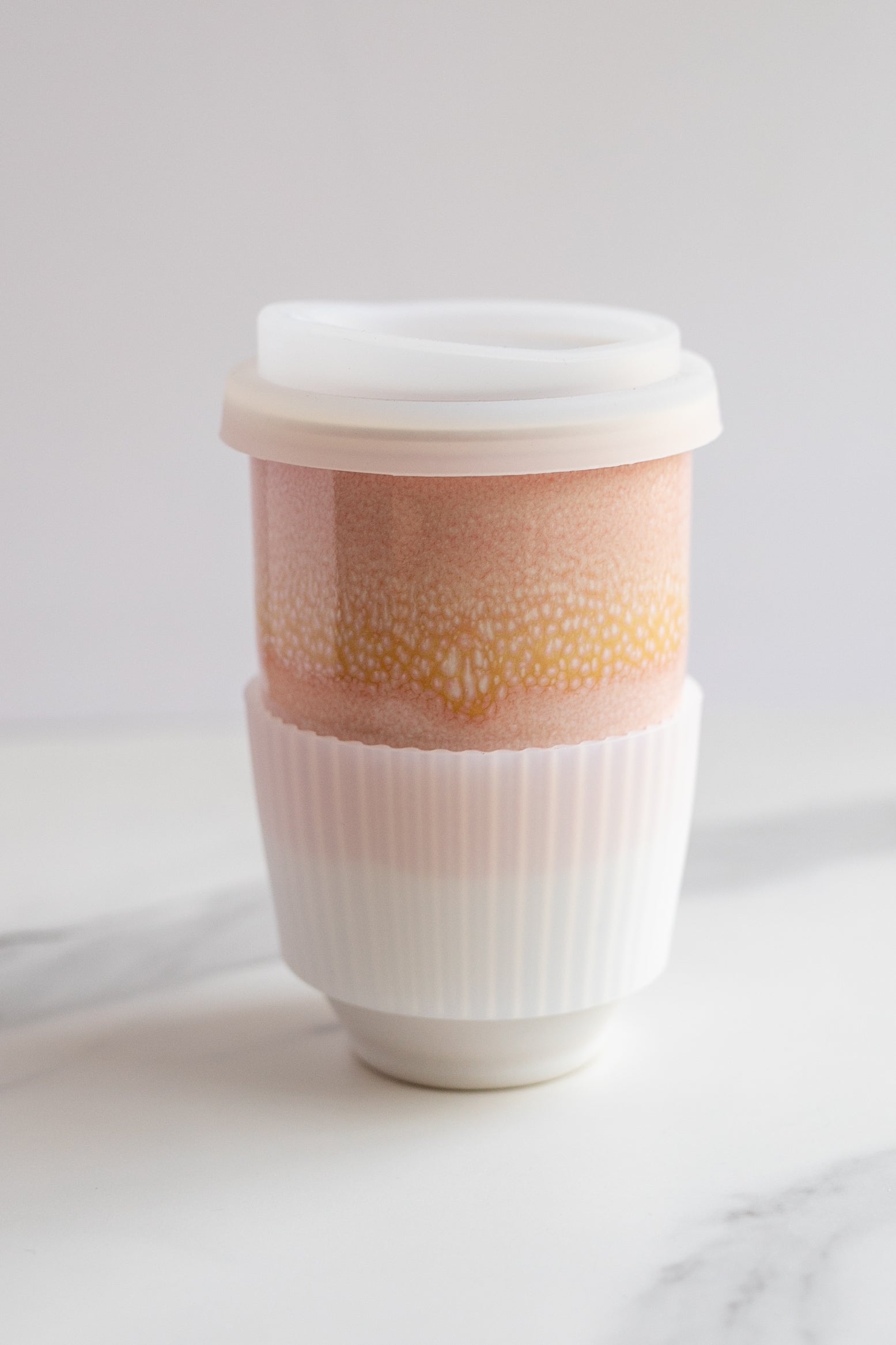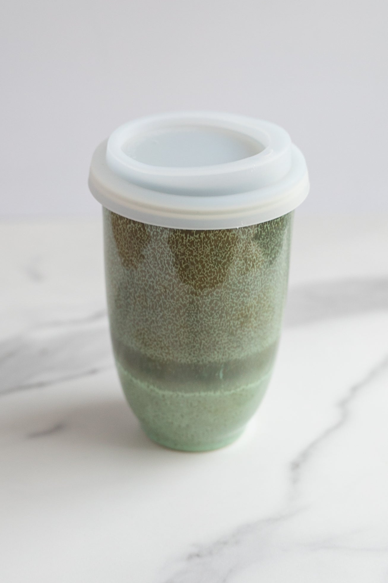 Ceramic Travel Mug, To Go Cup, White & Cream