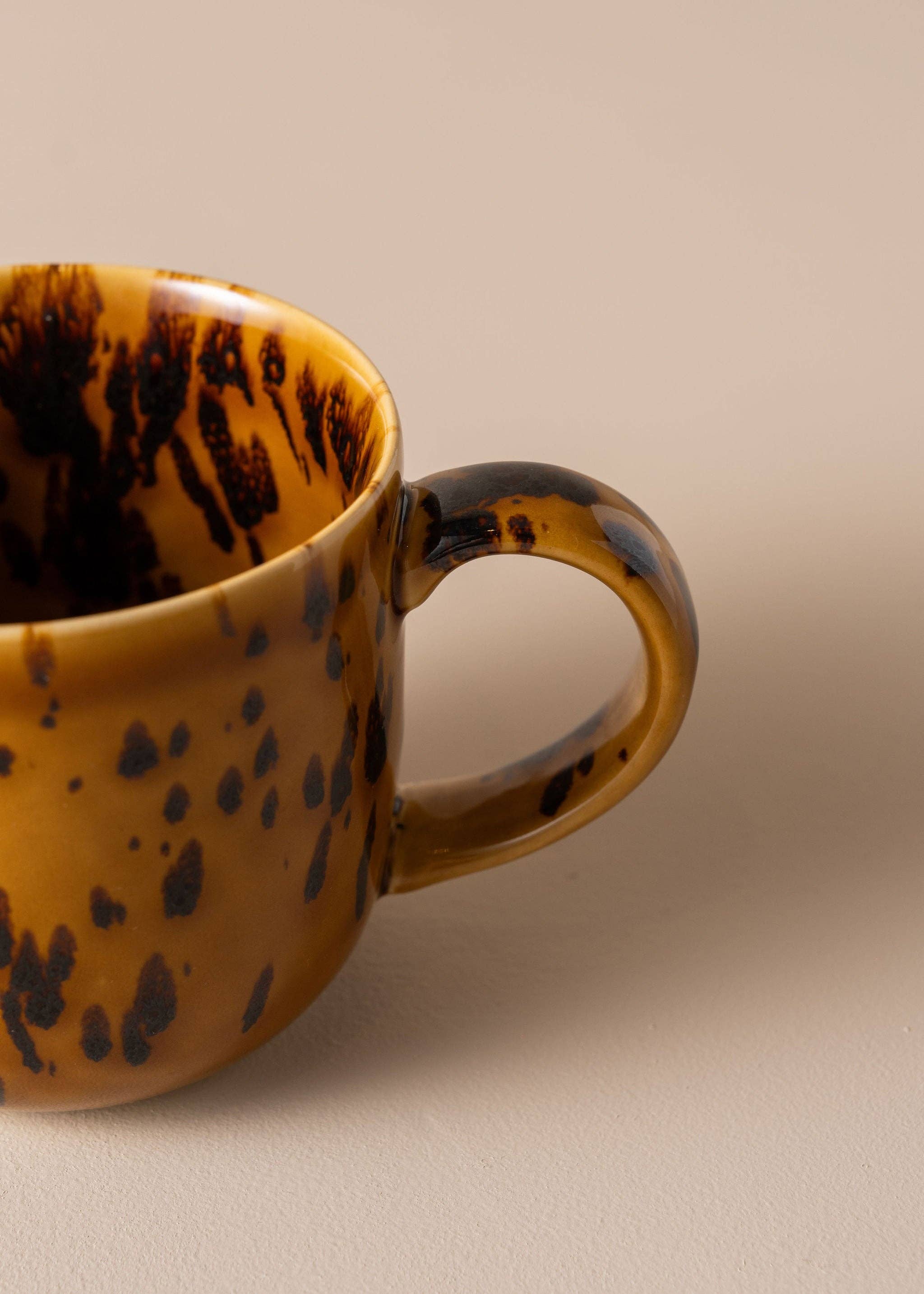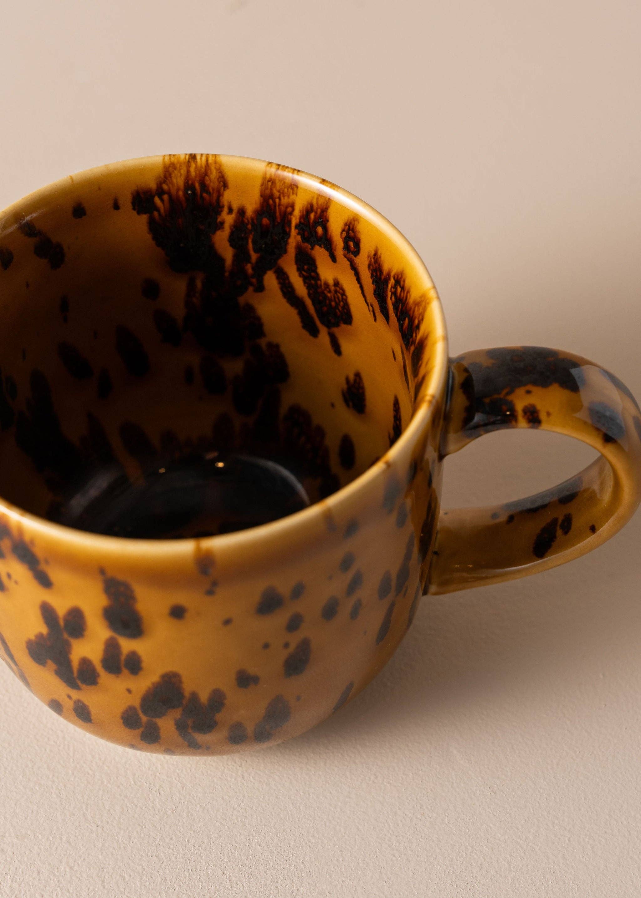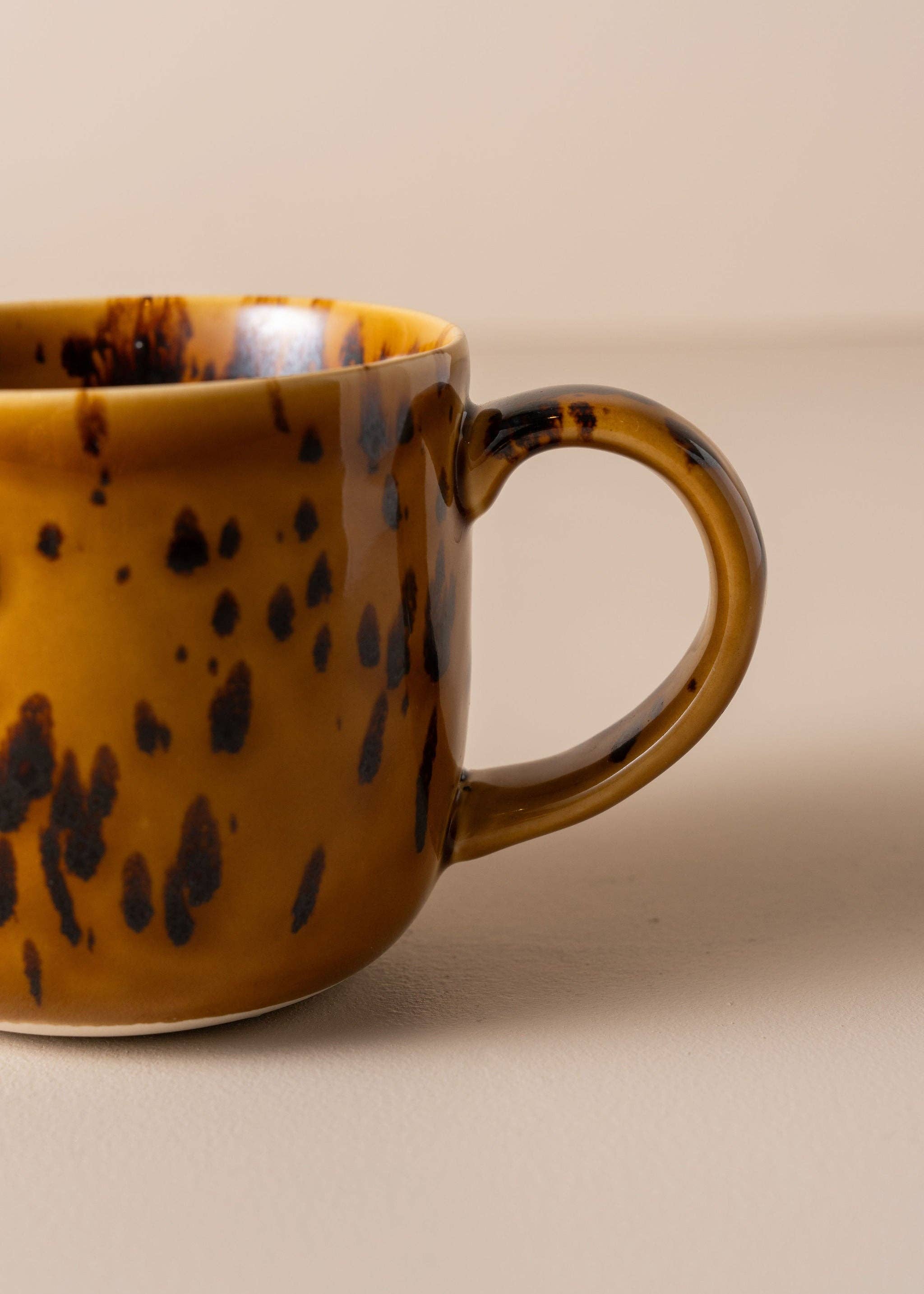 This Amber Speckled Ceramic Coffee Cup glows in an amber glaze that shifts with the light — a mix of warmth, depth, and quiet joy. Each piece carries its own flecked pattern, making every cup uniquely personal. Perfect for your morning ritual or a slow afternoon moment in the sun. • Dishwasher safe • Microwave safe Materials: stoneware Stoneware is a dense, non-porous ceramic that is fired at high temperatures, giving it exceptional durability and strength. It resists chipping, cracking, and water absorption, making it ideal for everyday use. Finish: Reactive Glaze Dimensions: D | 9.5cm / 3.62" H | 7cm / 2.75" Width (including handle) | 13cm / 5.1" Dimensions may vary slightly from piece to piece.