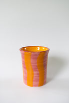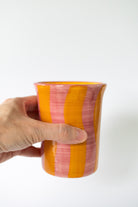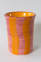 This pink and yellow striped ceramic cup is the perfect companion to start the day with your favorite beverage, whether it's fresh juice, a nutritious smoothie or your morning coffee. With a unique, fresh and summery design, it fits perfectly into the decor of your kitchen, bar, or work space. Ideal as a gift or to add a touch of distinction to your tableware collection. This handmade ceramic vase is not only functional, but also a decorative piece that will enhance any table or space where you place it. -Perfect for wedding gifts, as an original birthday gift or as a unique detail in home decor. Dishwasher and microwave safe.