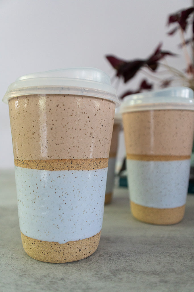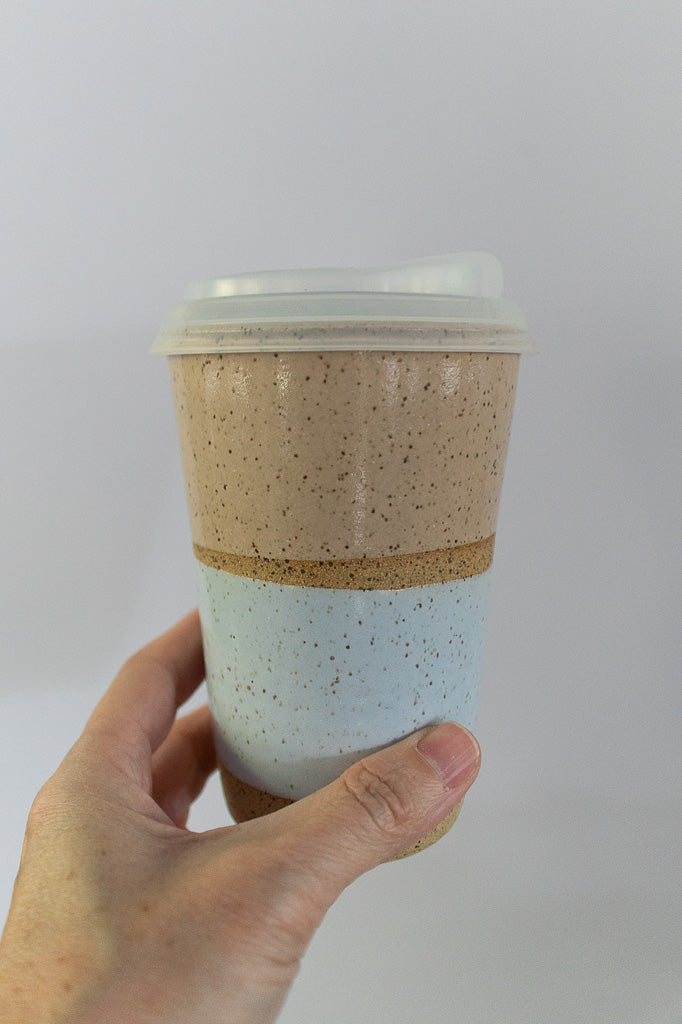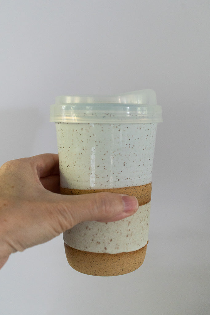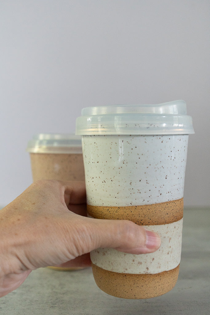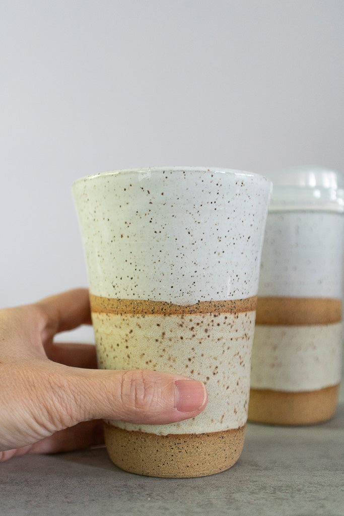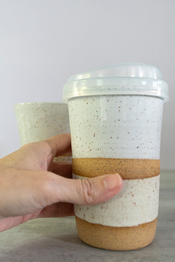 Ceramic Travel Mug, To Go Cup, White & Cream