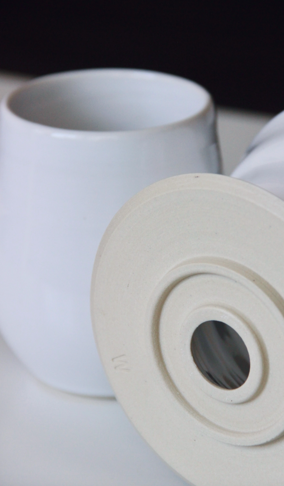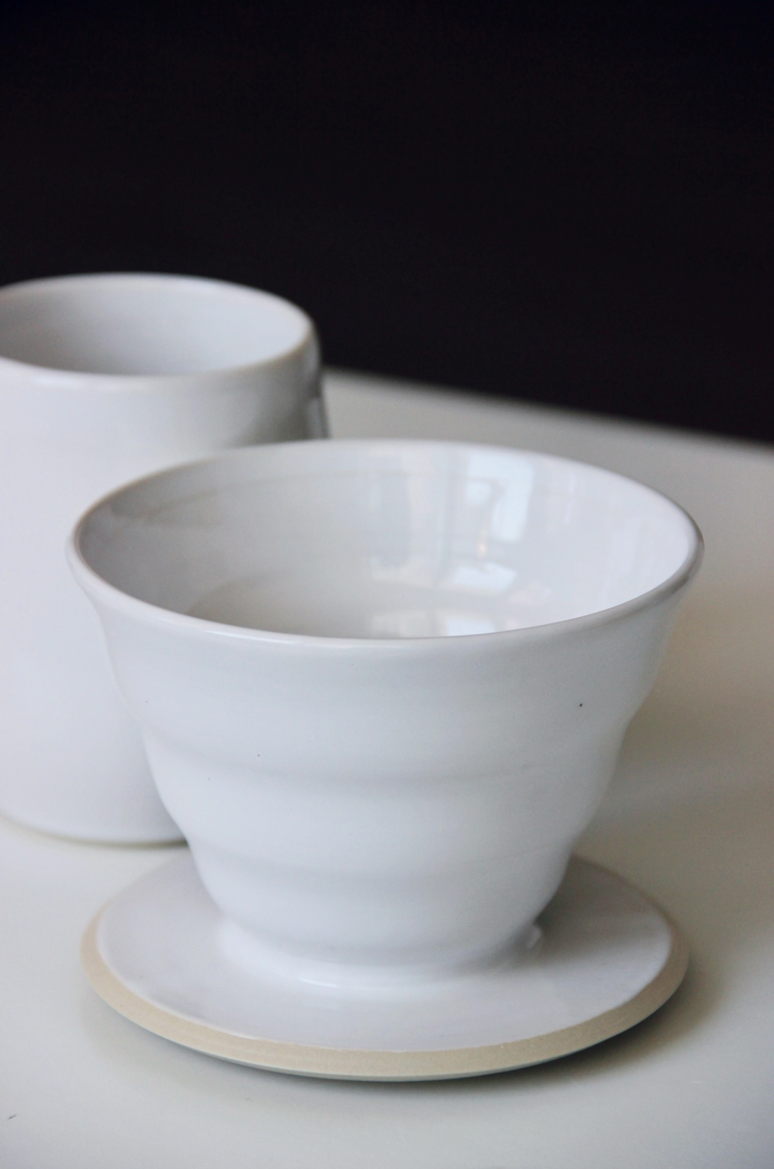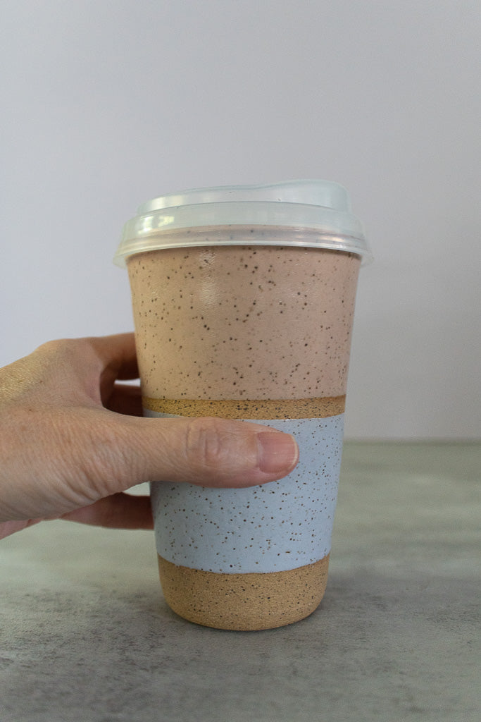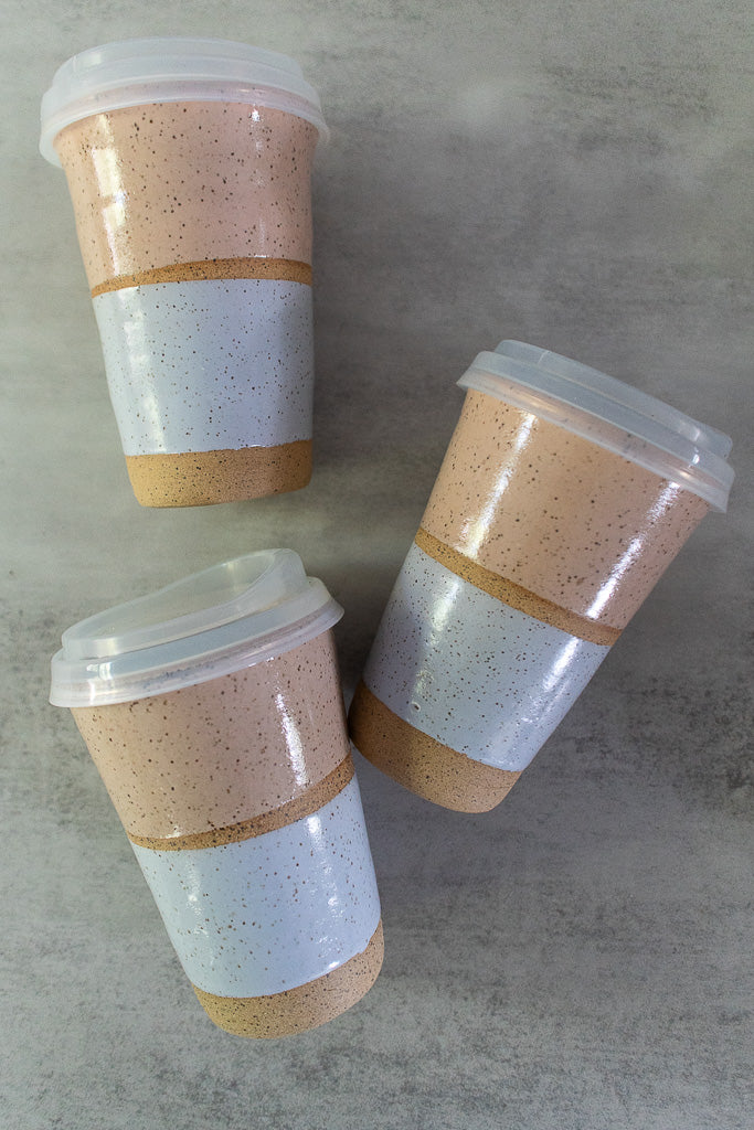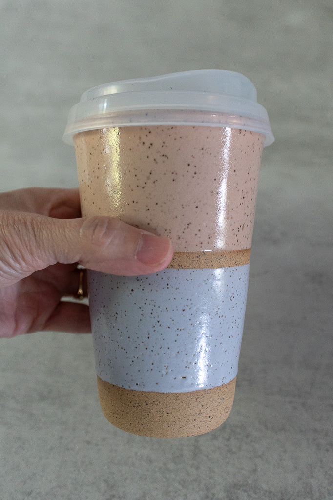 Ceramic Travel Mug, To Go Cup, White & Cream