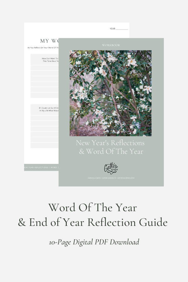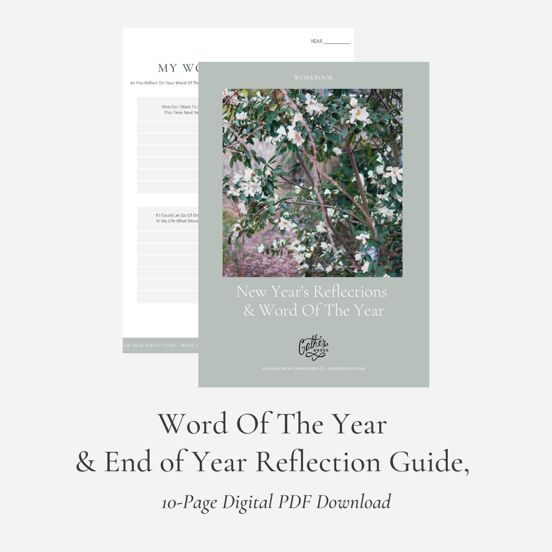 Take time to reflect on the past year and the one to come in this thoughtful workbook designed to help you find clarity and focus on your goals and priorities in the new year. Through journal prompts you will reflect on challenges, wins and future dreams. Also included in this ten page PDF workbook are worksheets designed to help you identify a word of the year for the new year as well.