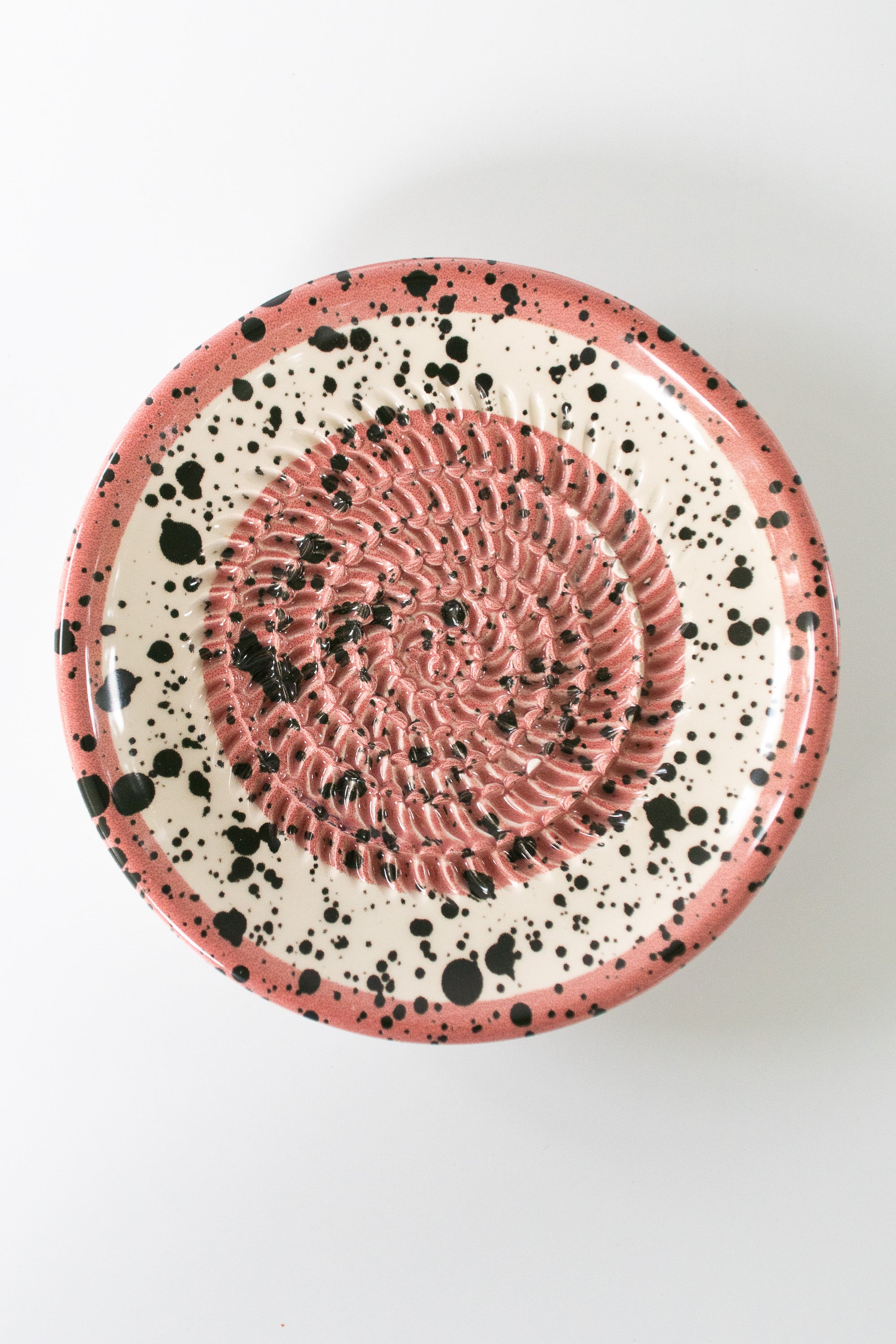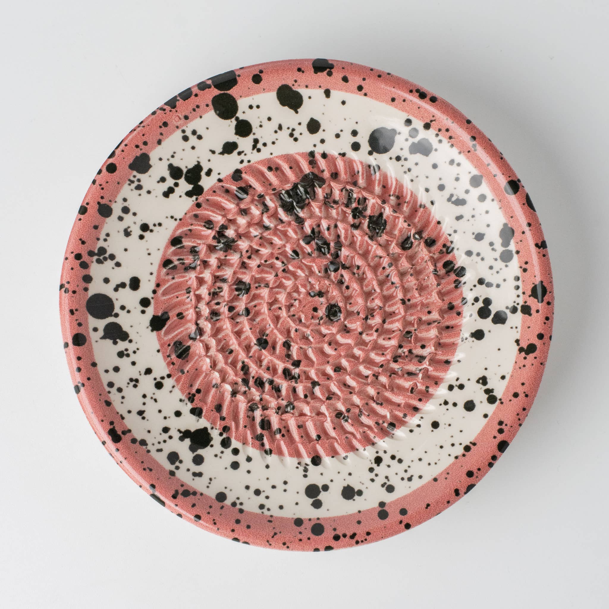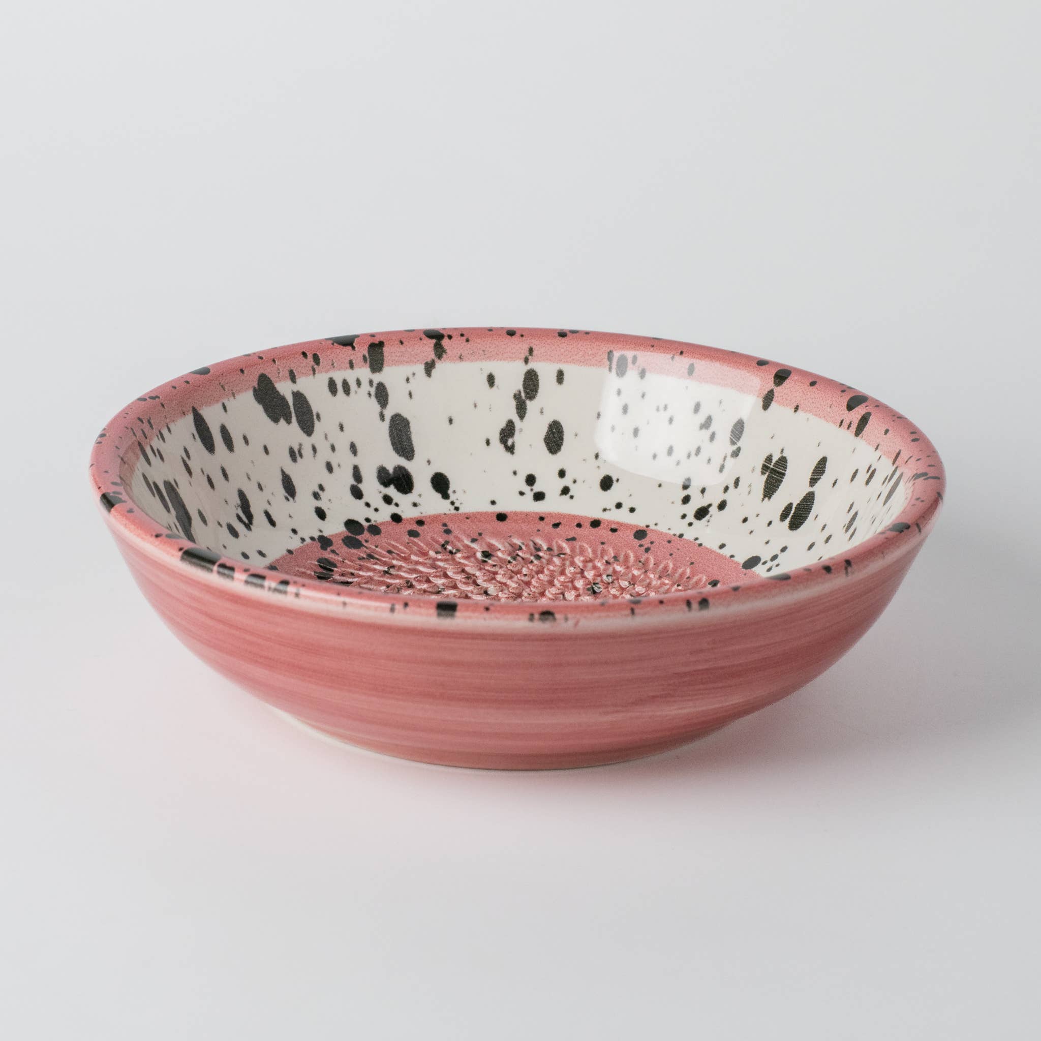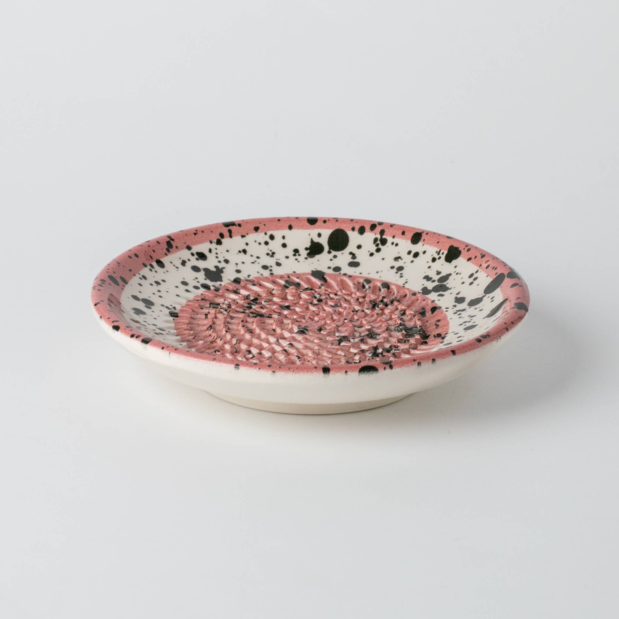 Ceramic Garlic Grater Plate, Pink with Black Splotches