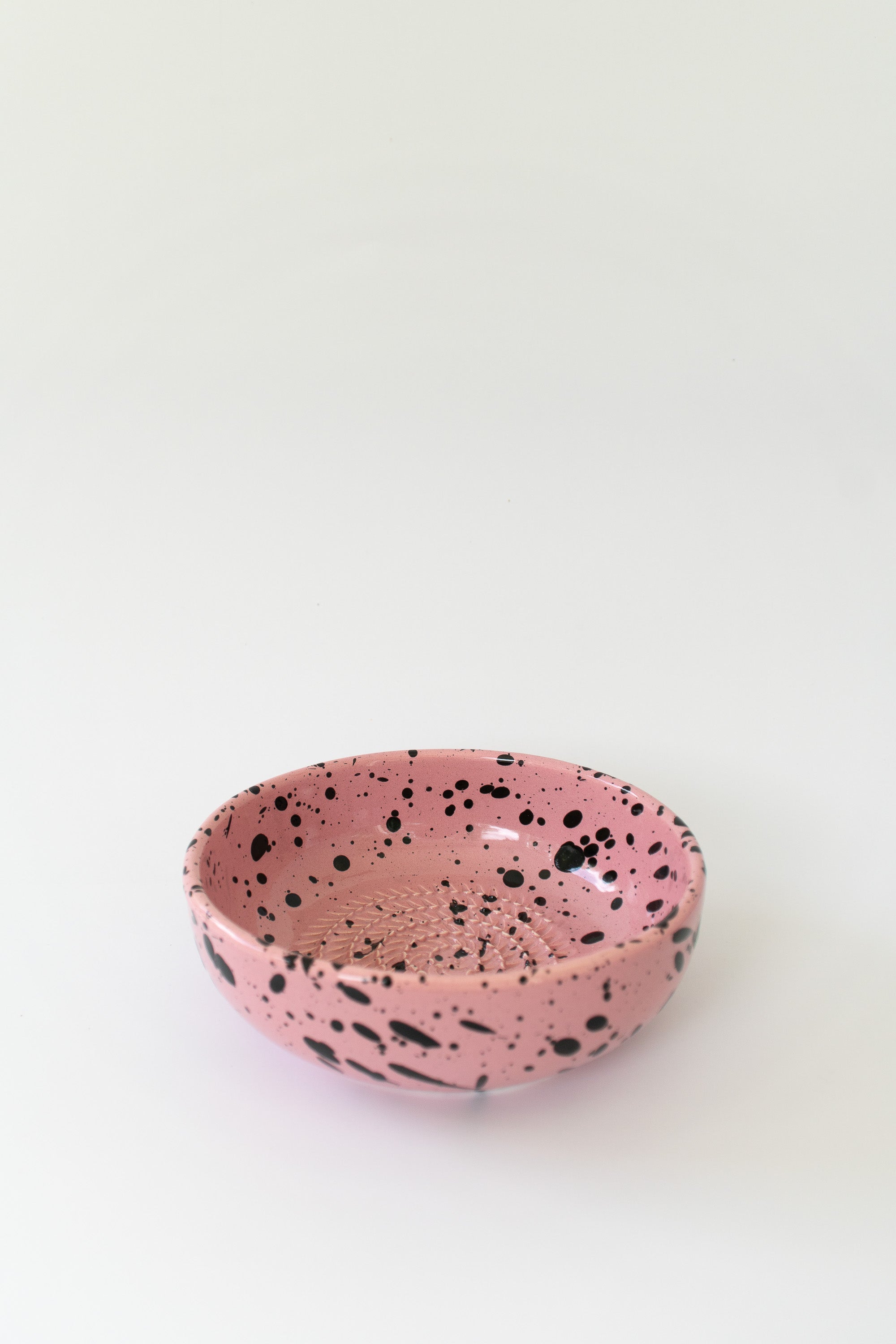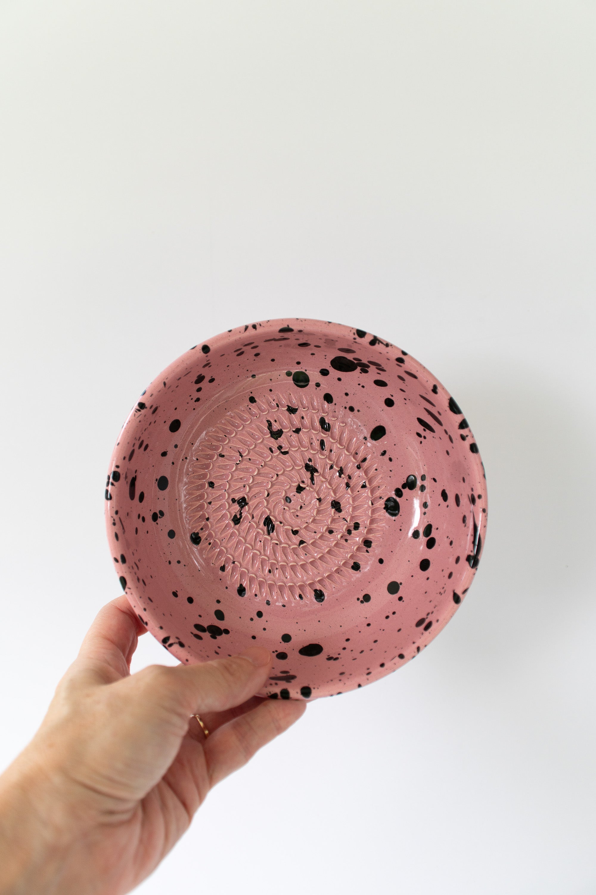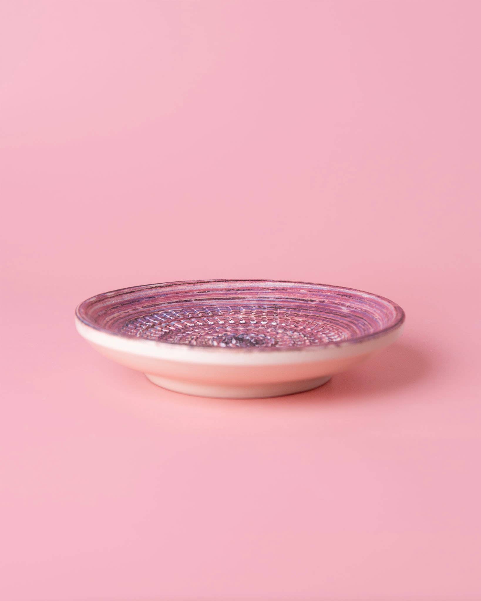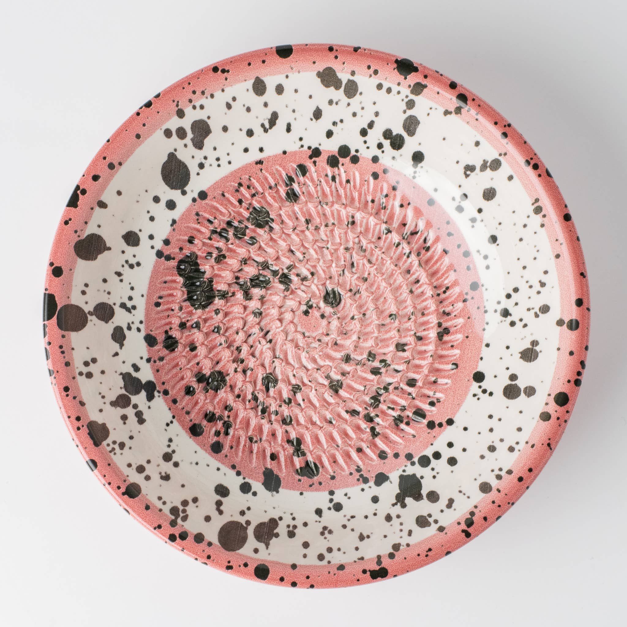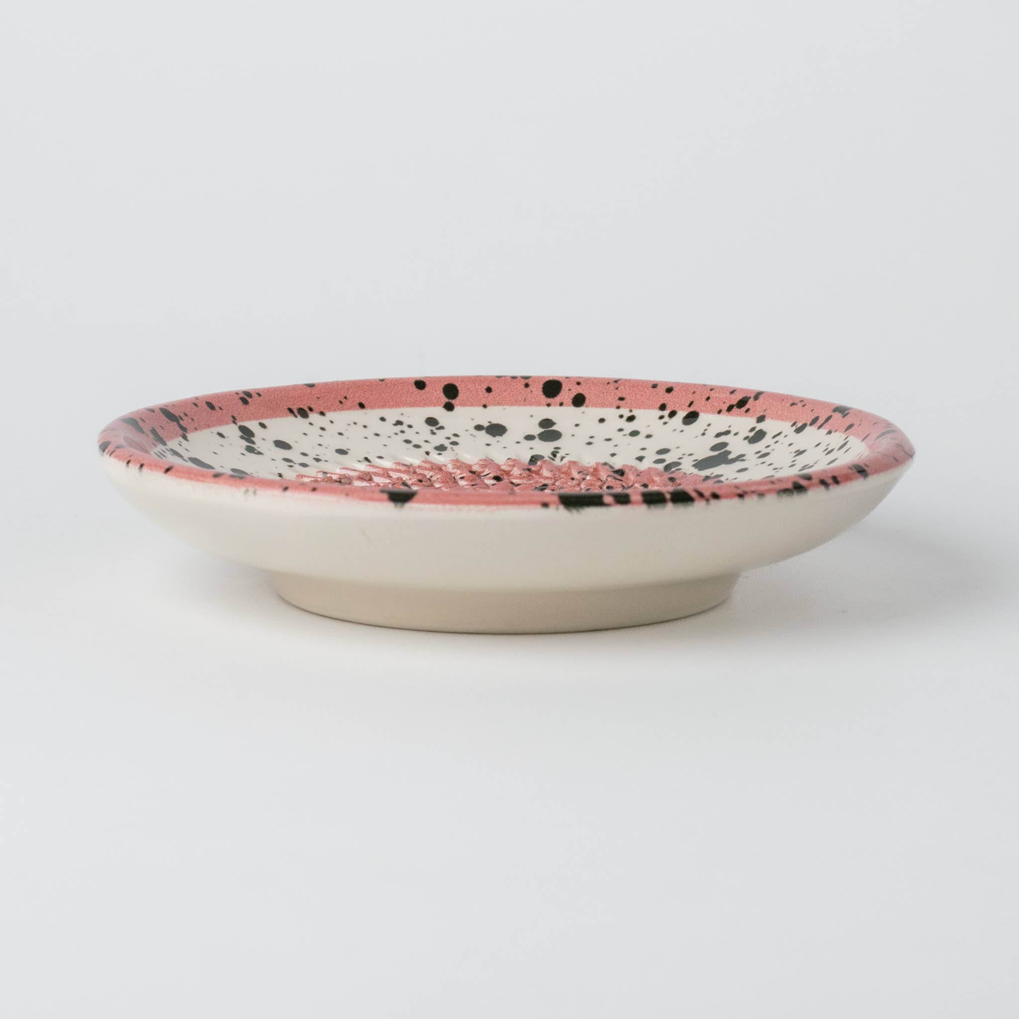 Ceramic Garlic Grater Plate, Pink with Black Splotches