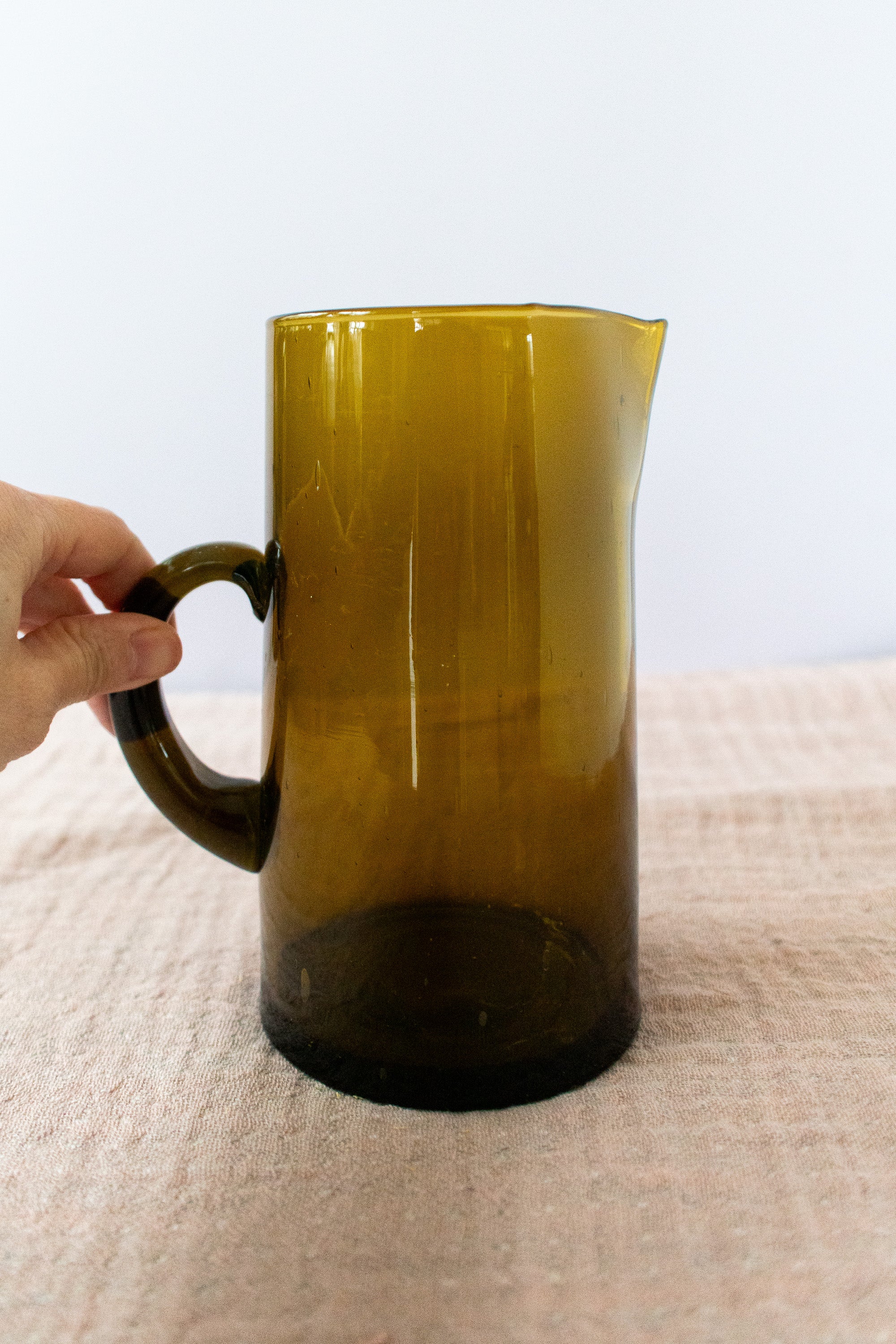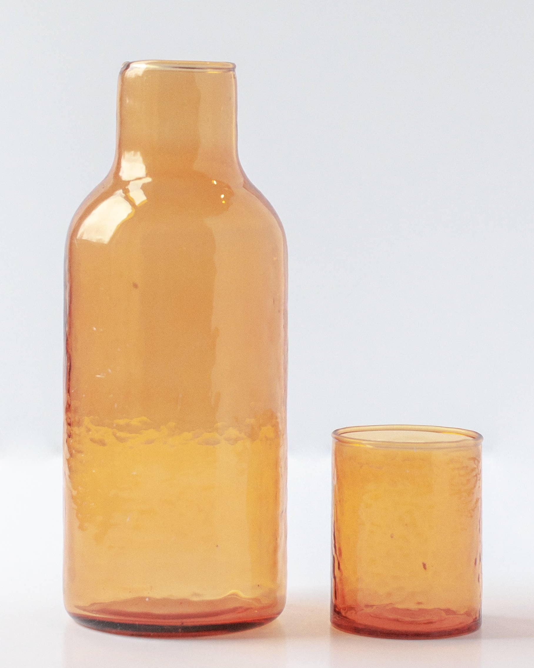 Handblown Hammered Glass Carafe in Amber