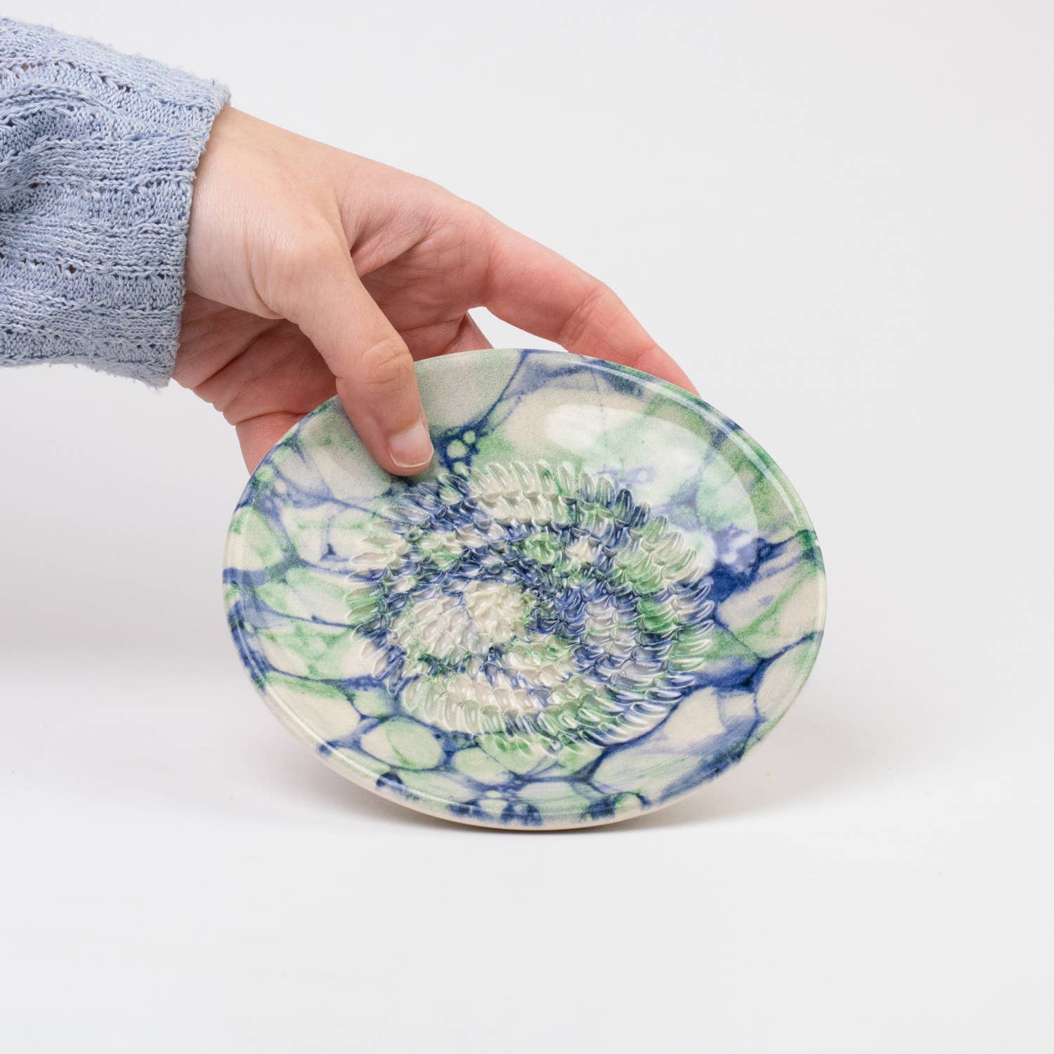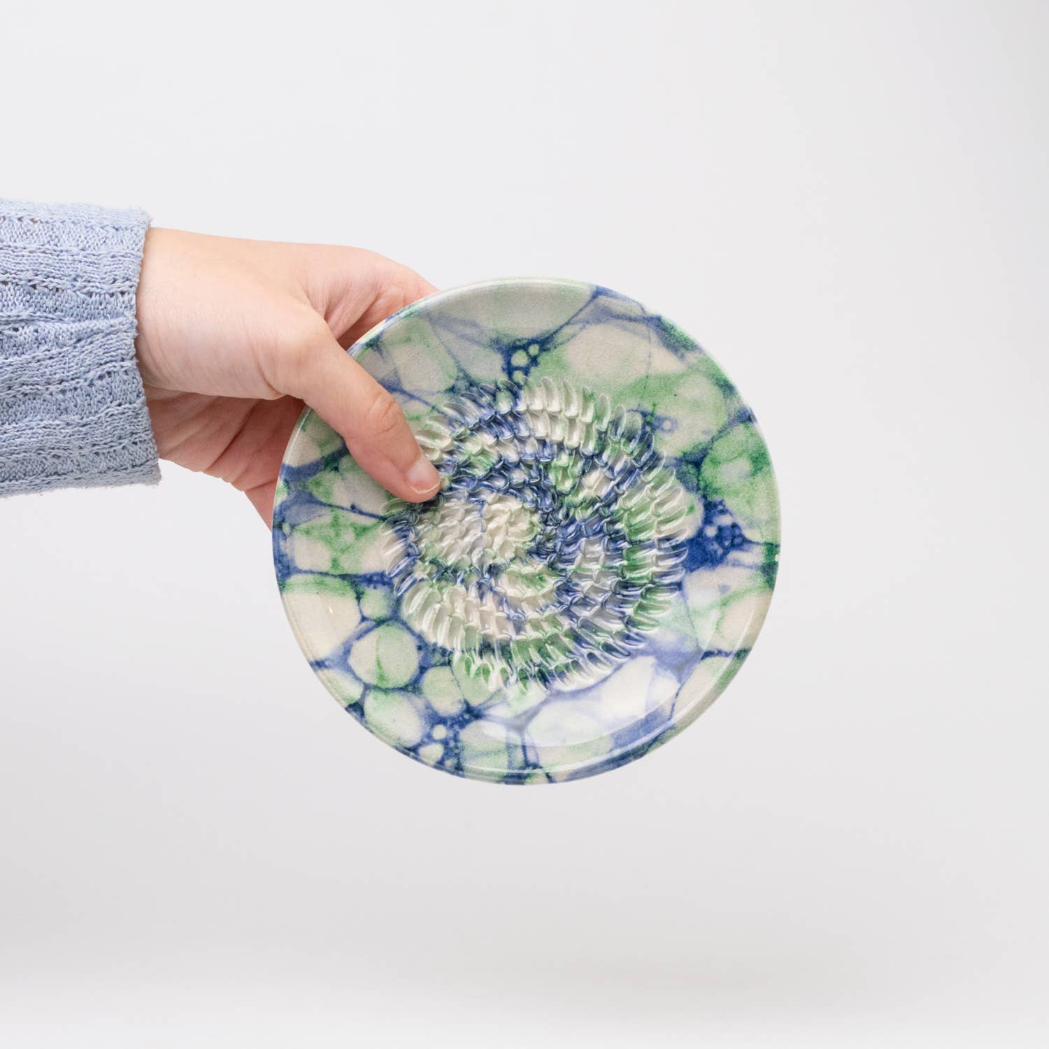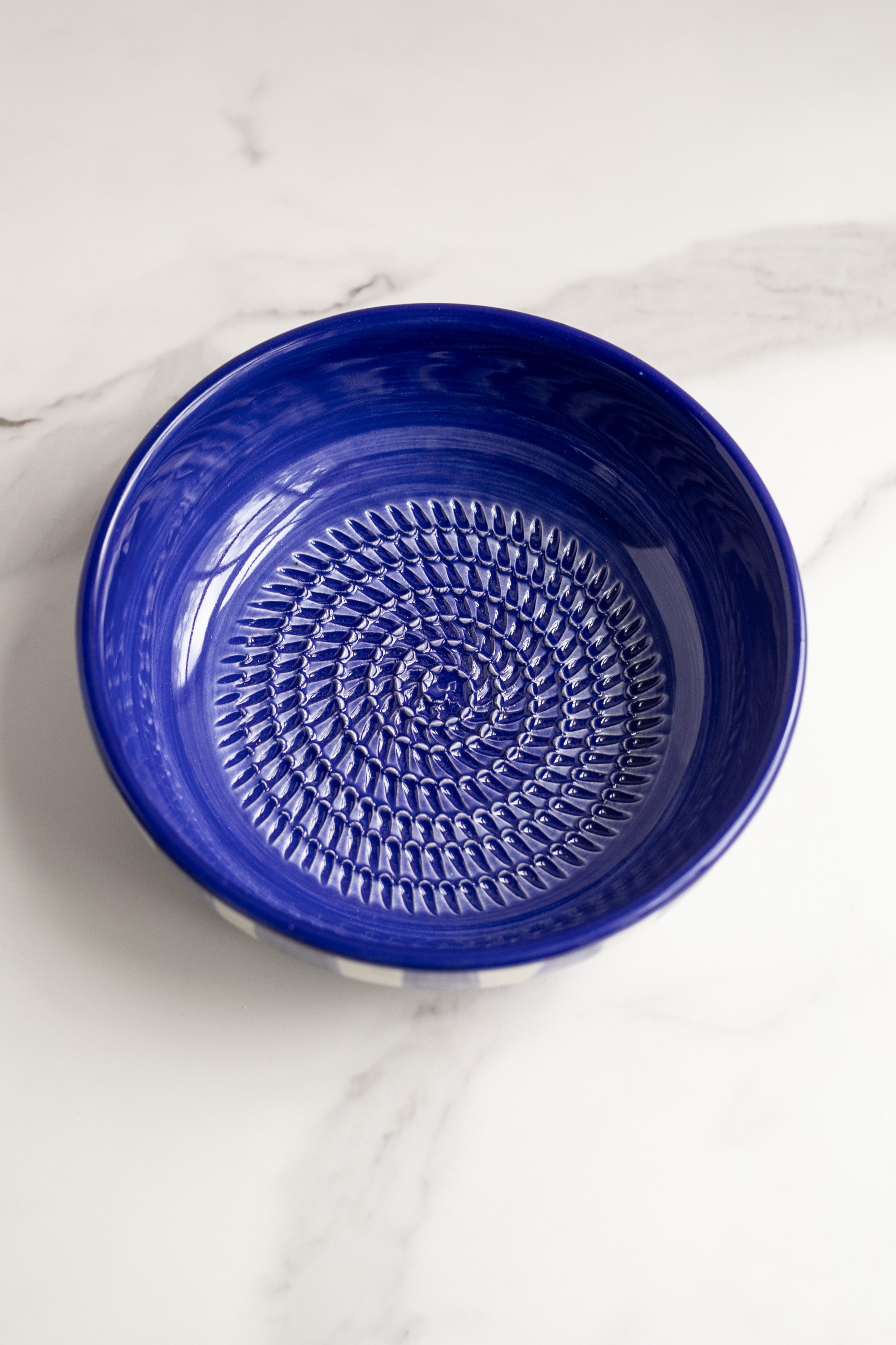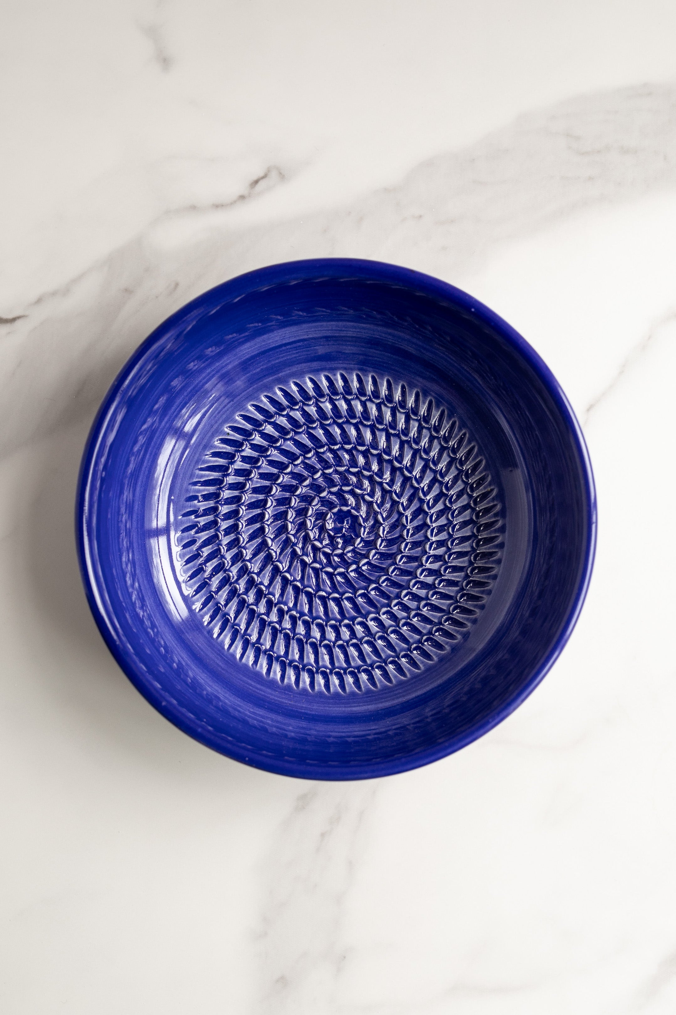 Garlic and Ginger Ceramic Grater Dish, Blue Marbled