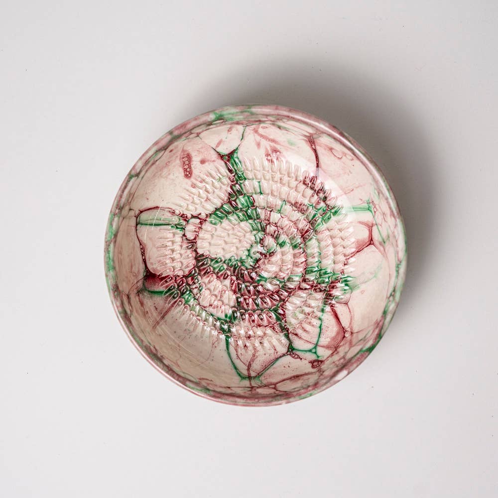 Pink and Green Marbled Ceramic Grater Bowl in Medium