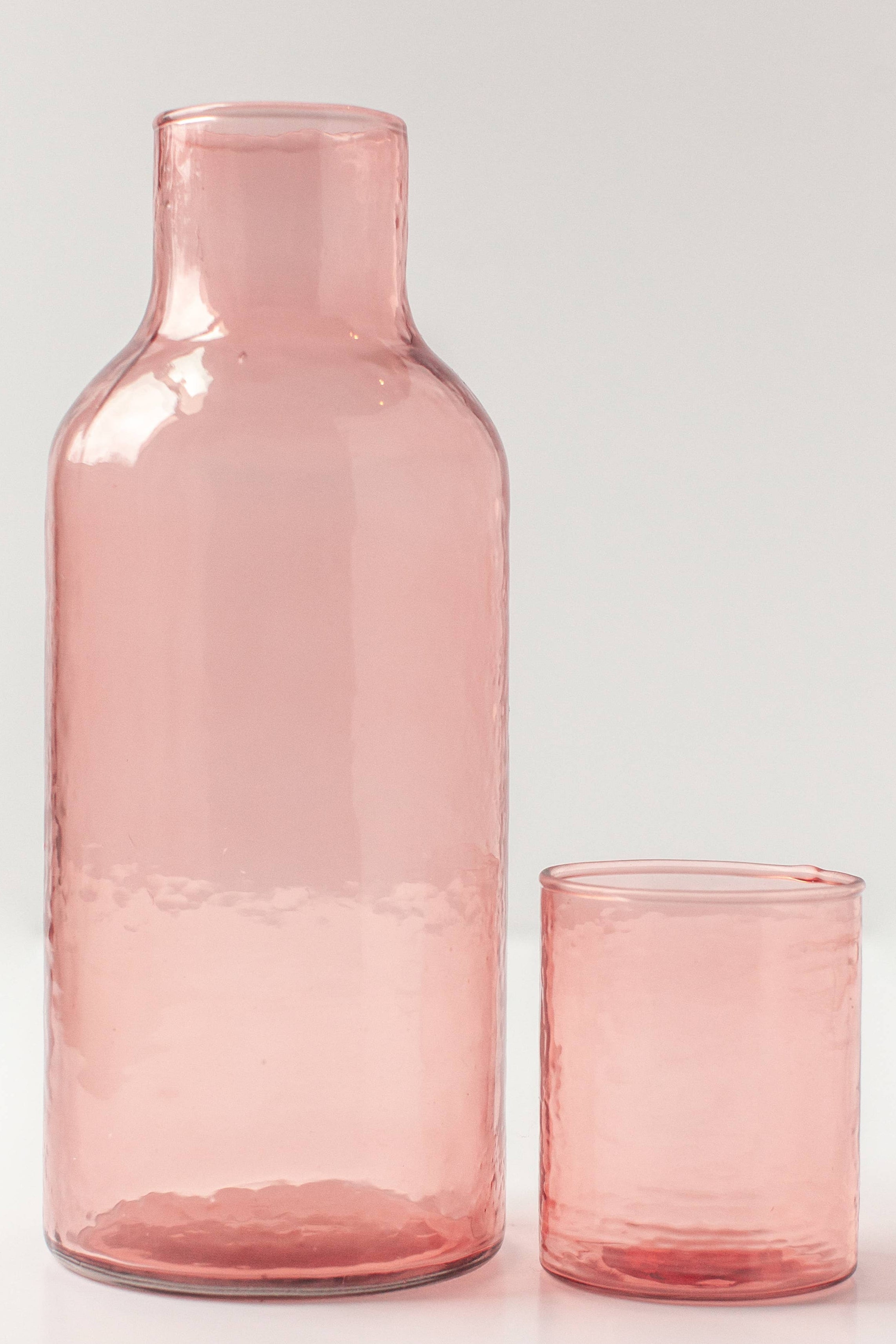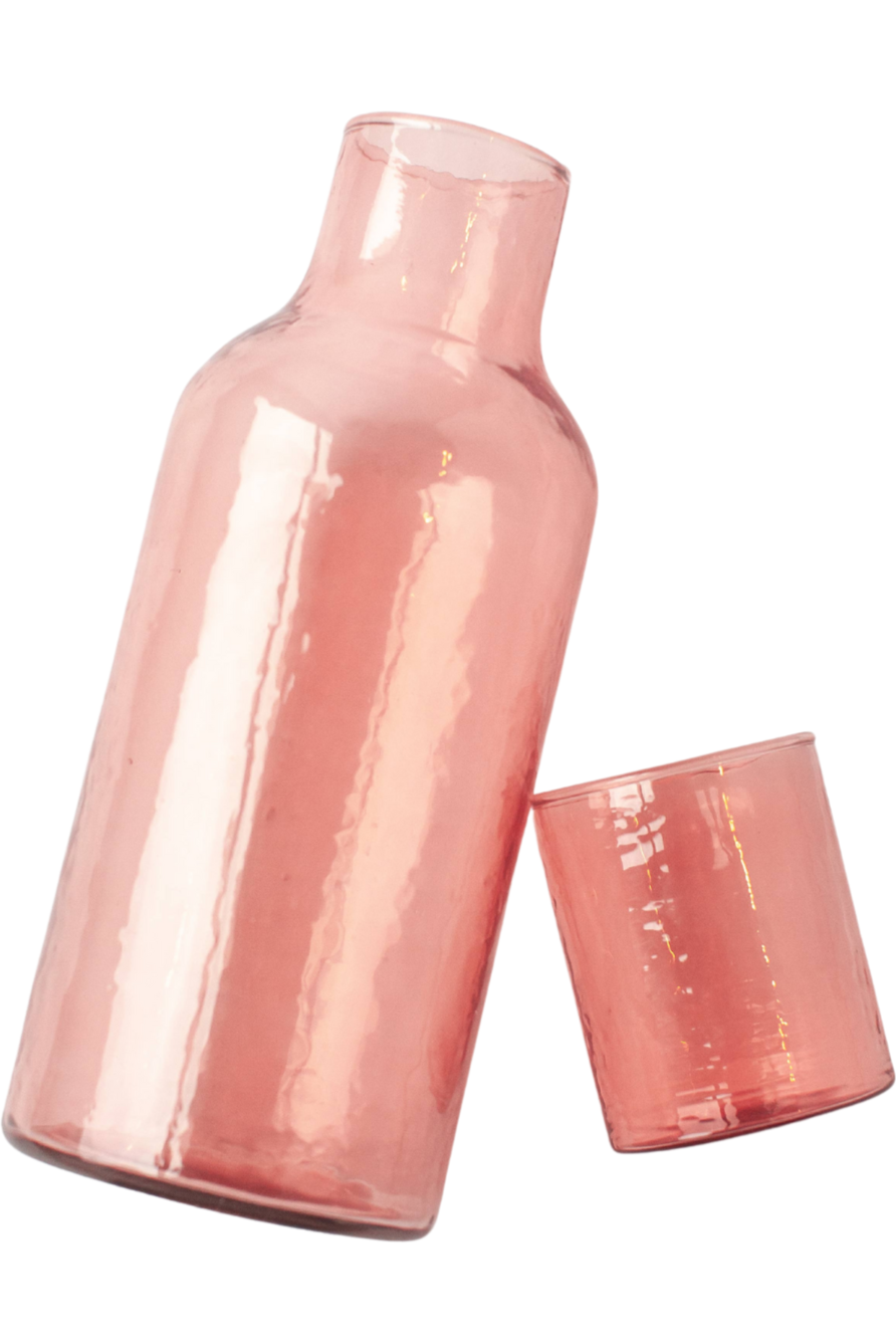 Water Carafe in Pink Glass with Hammered Texture