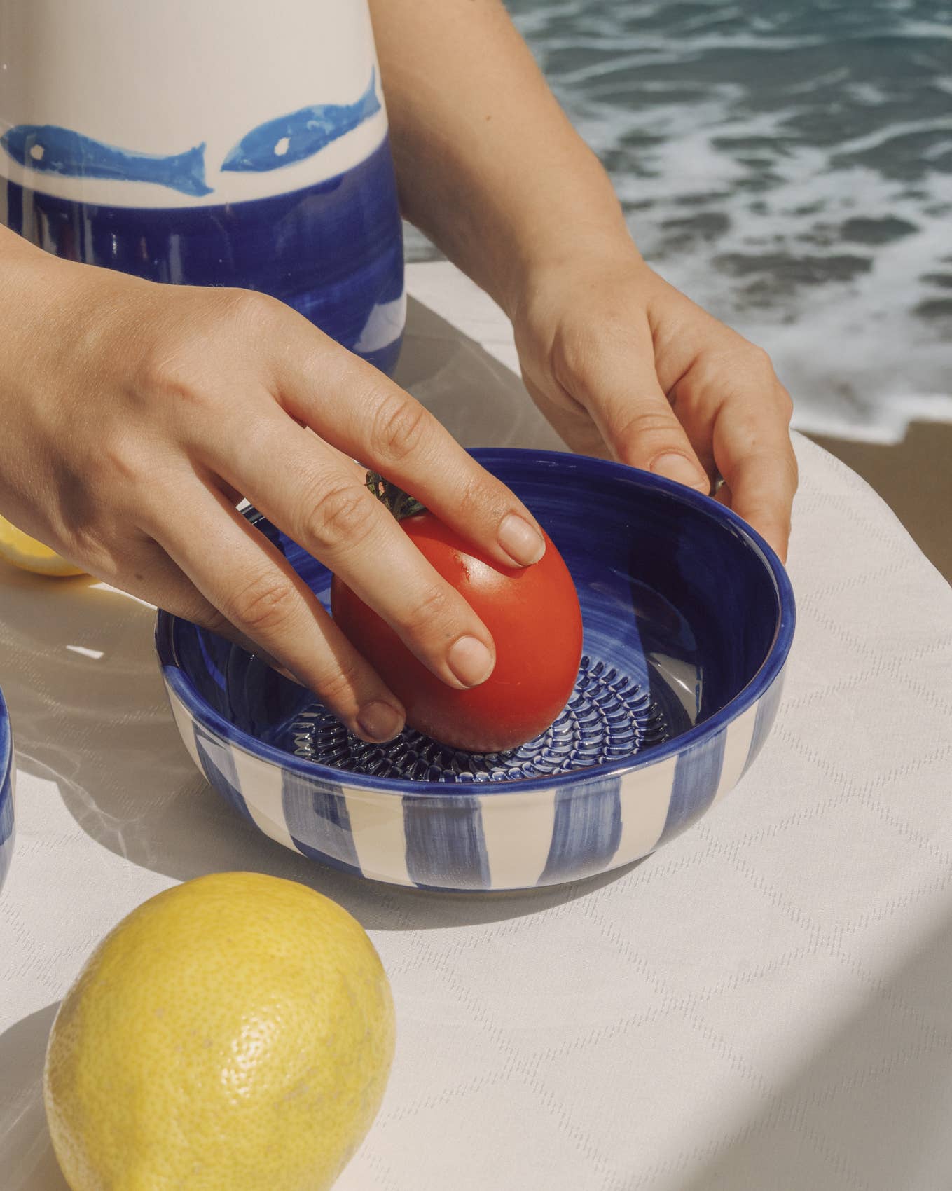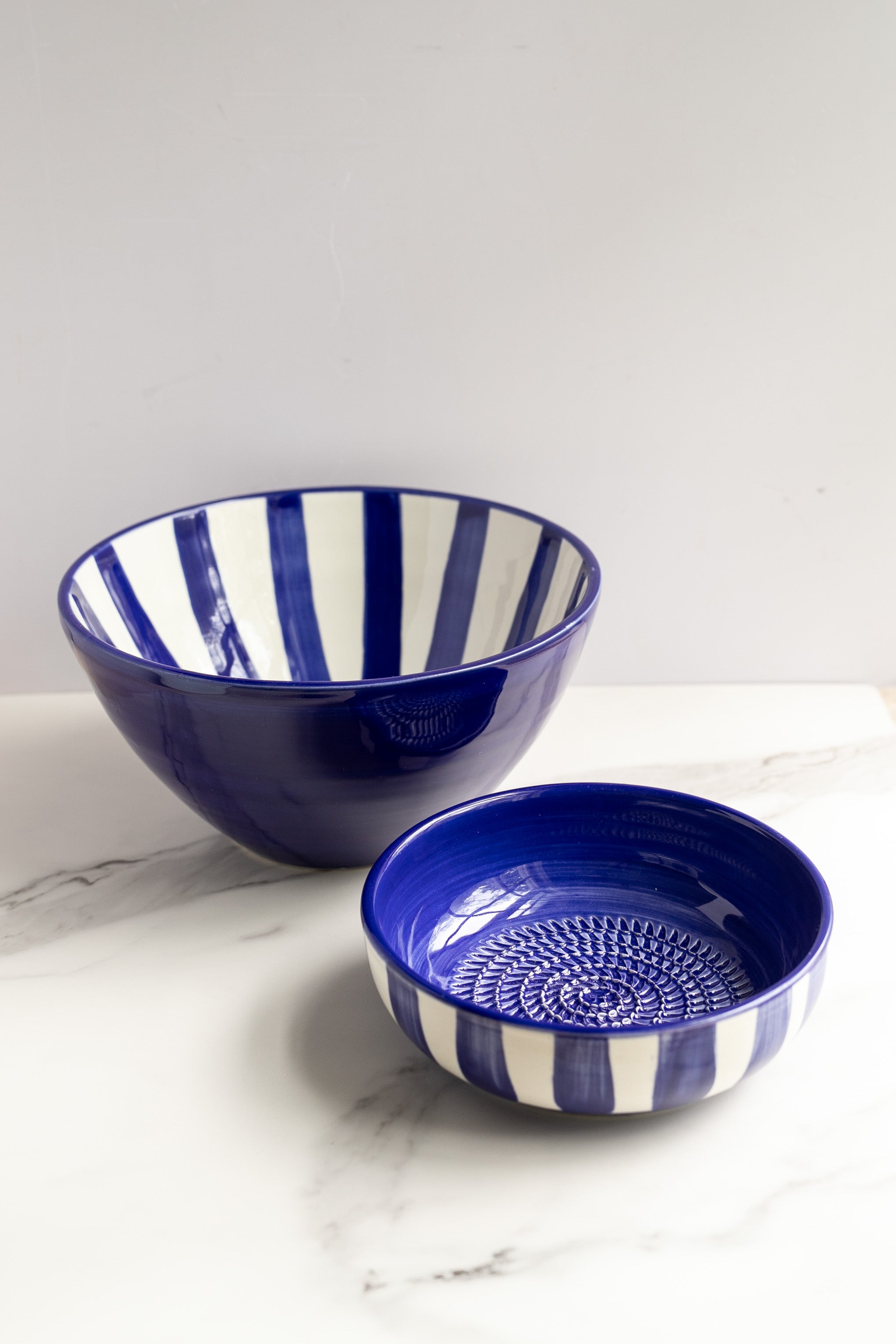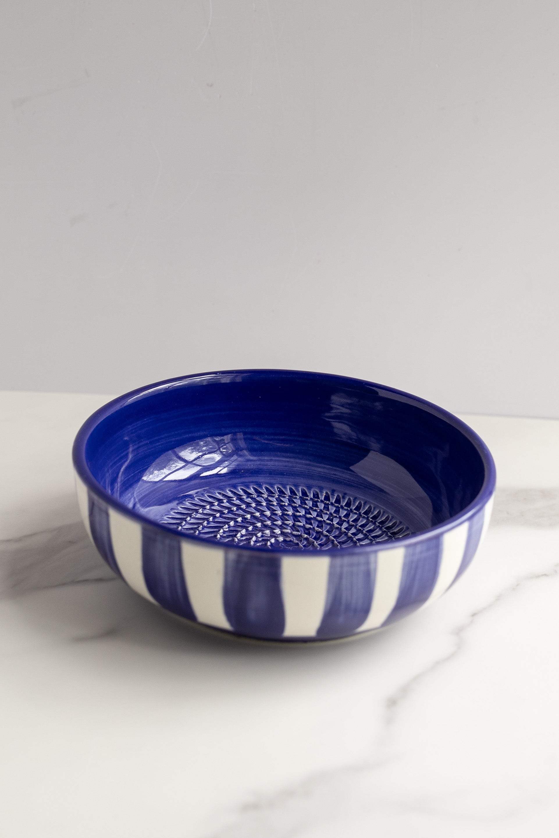 Blue Striped Garlic Grater Bowl