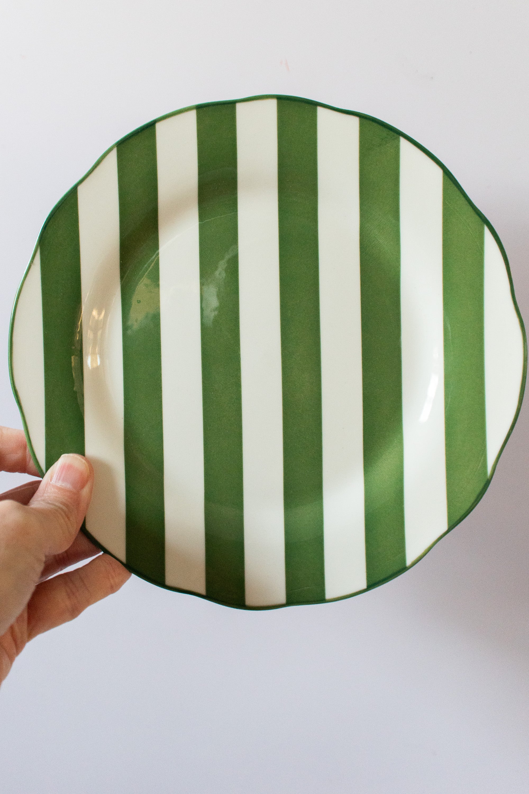 Striped green dessert plate