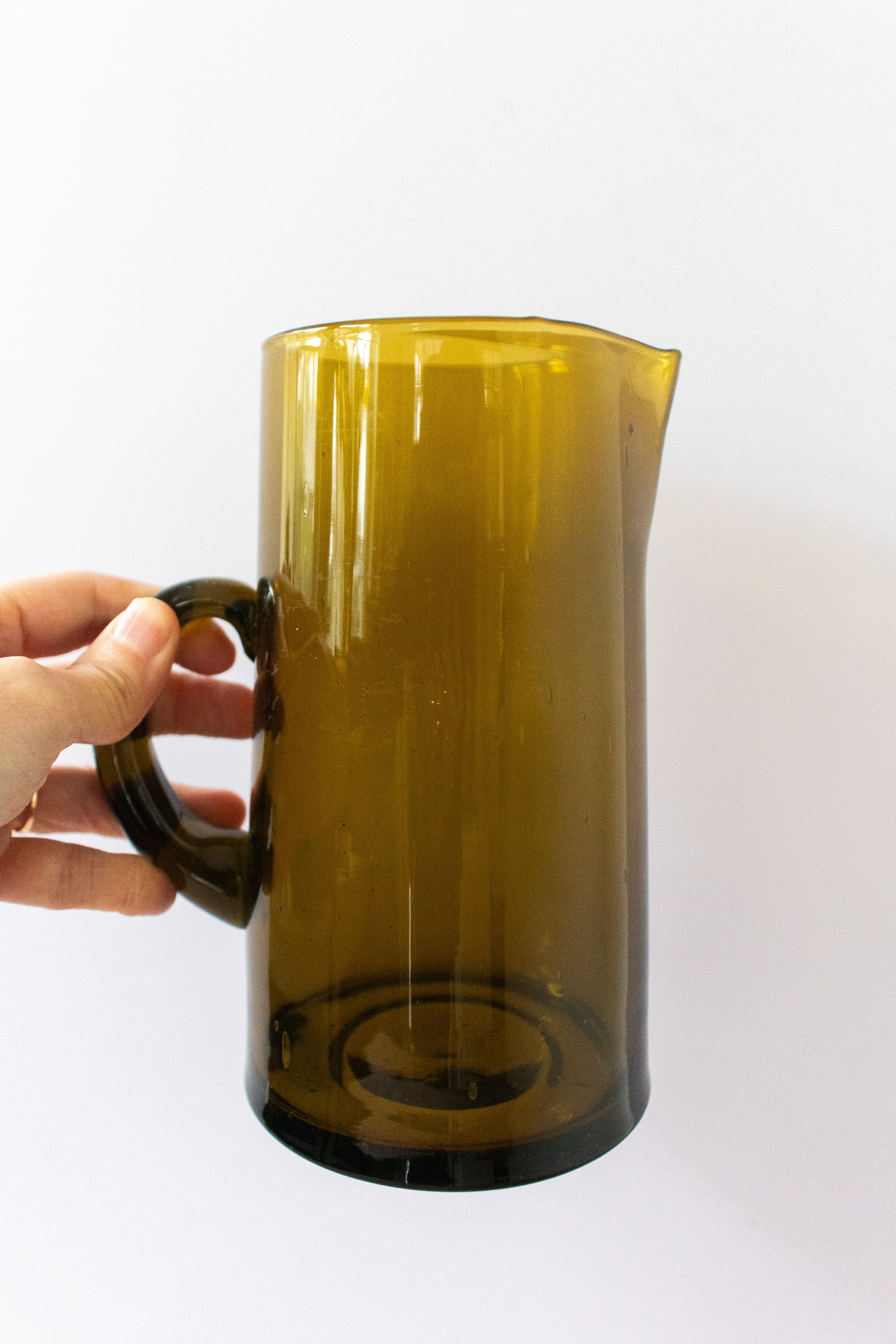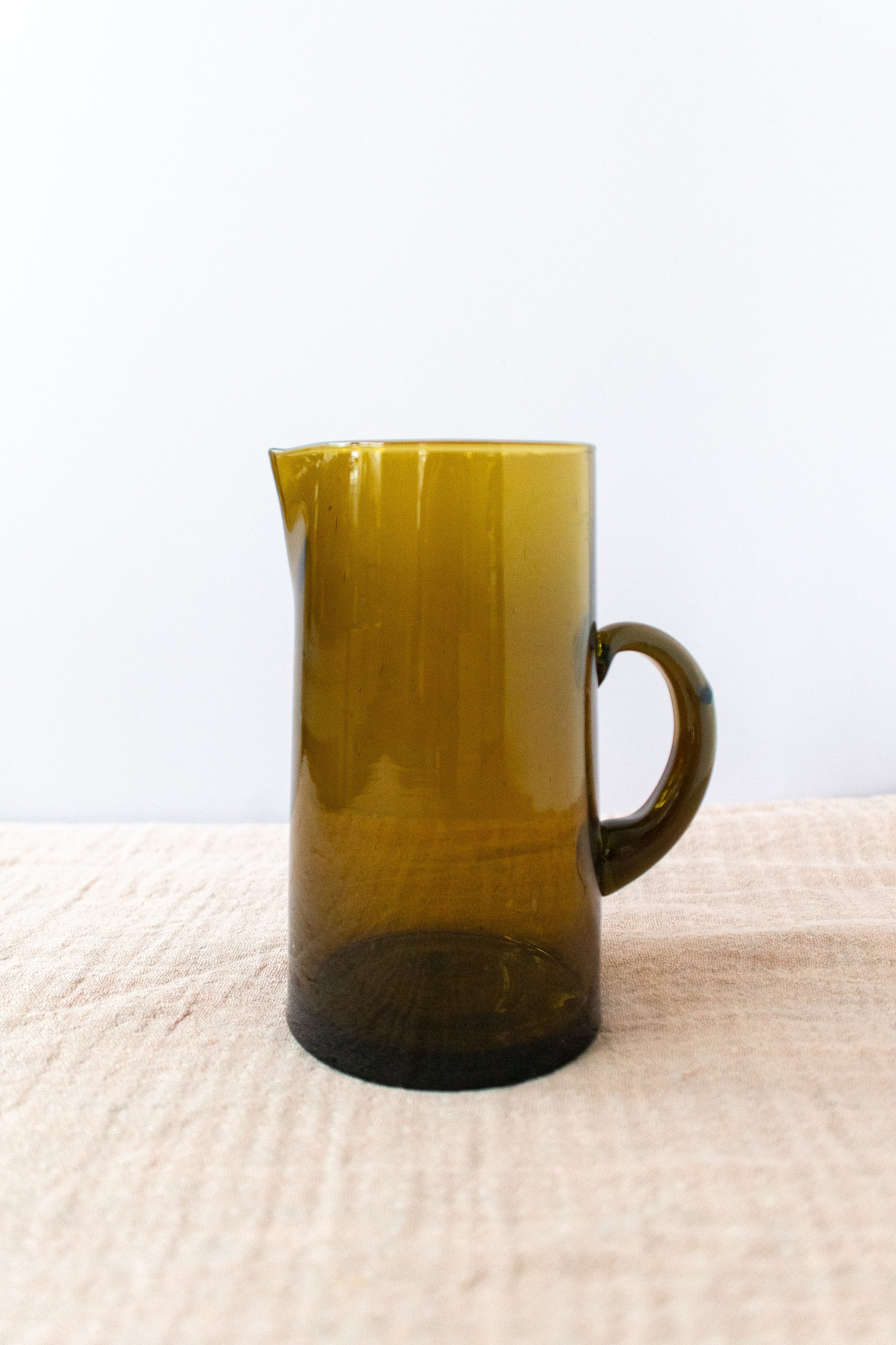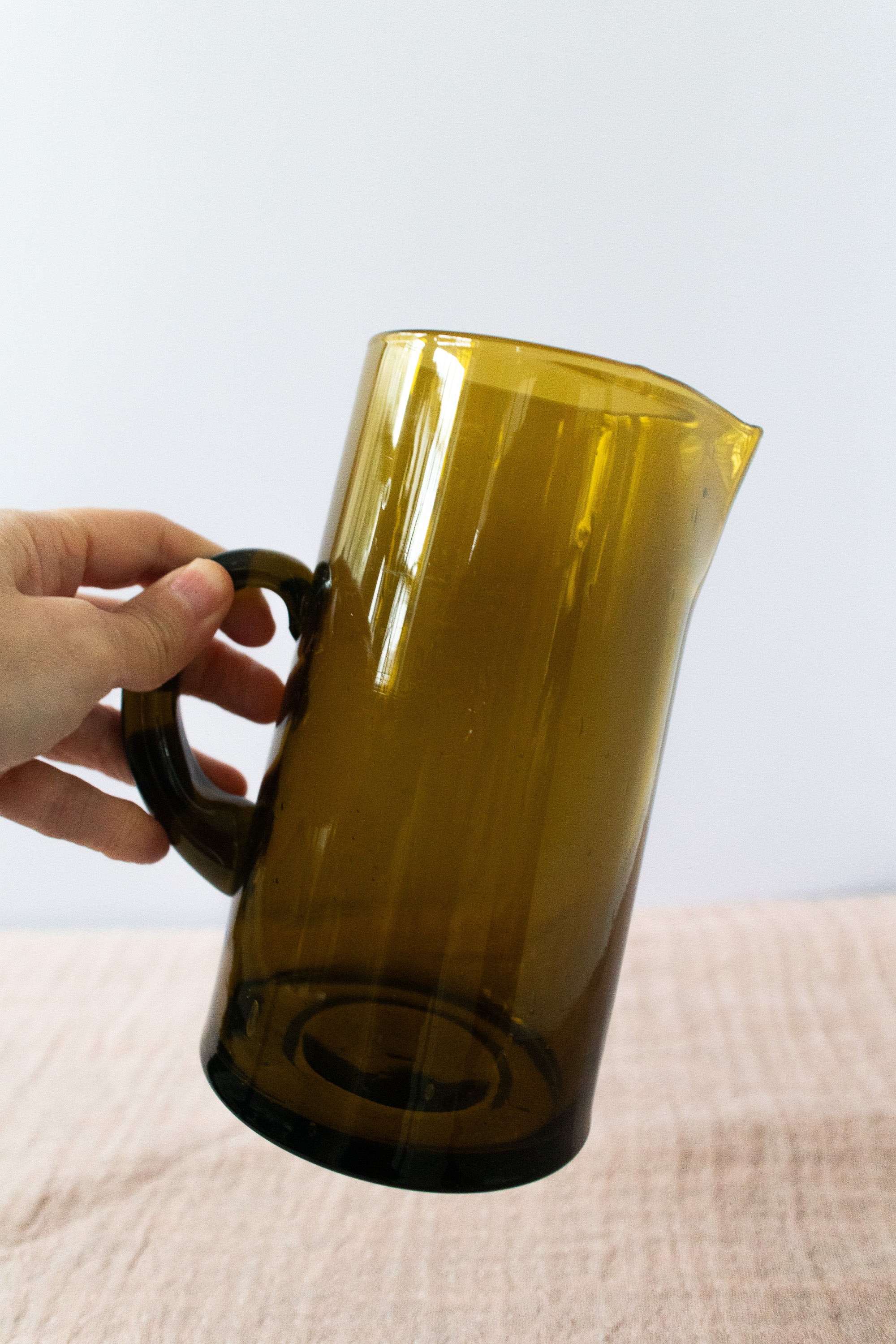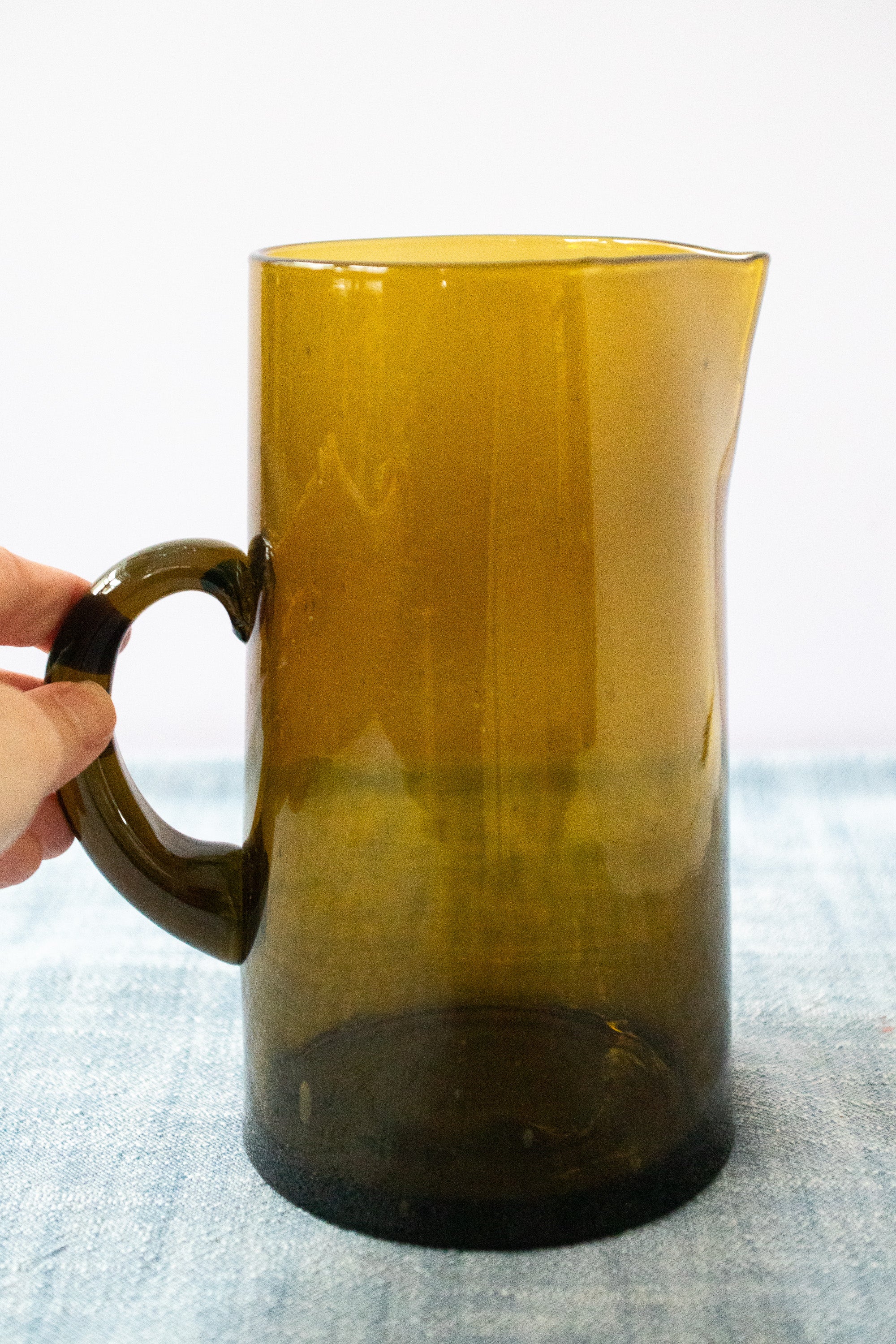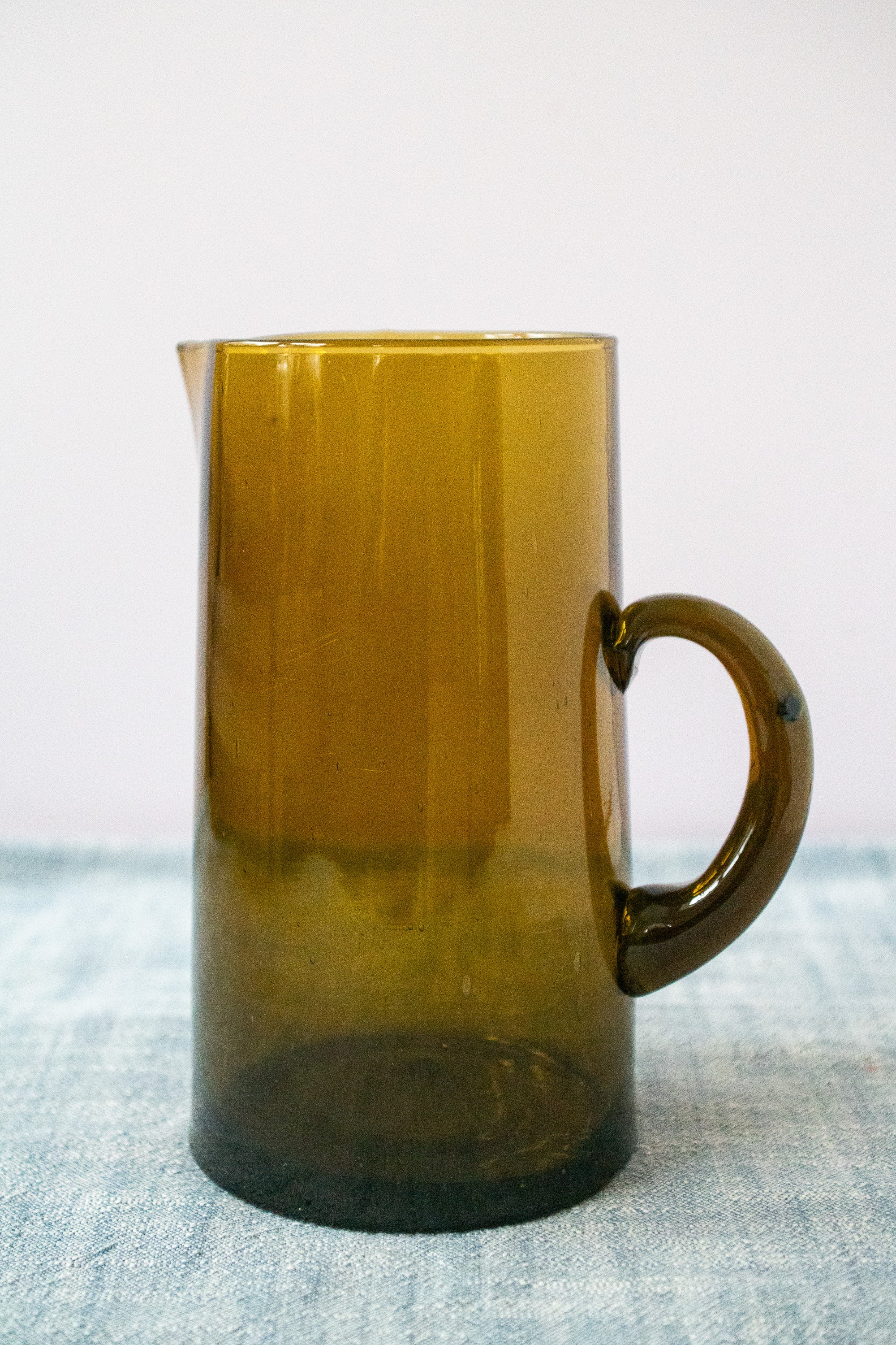 Amber Hand-Blown Hammered Glass Carafe, Artisan Beverage Pitcher