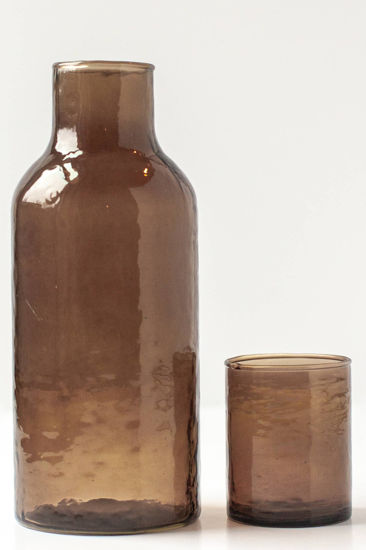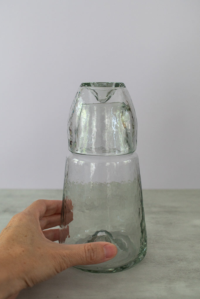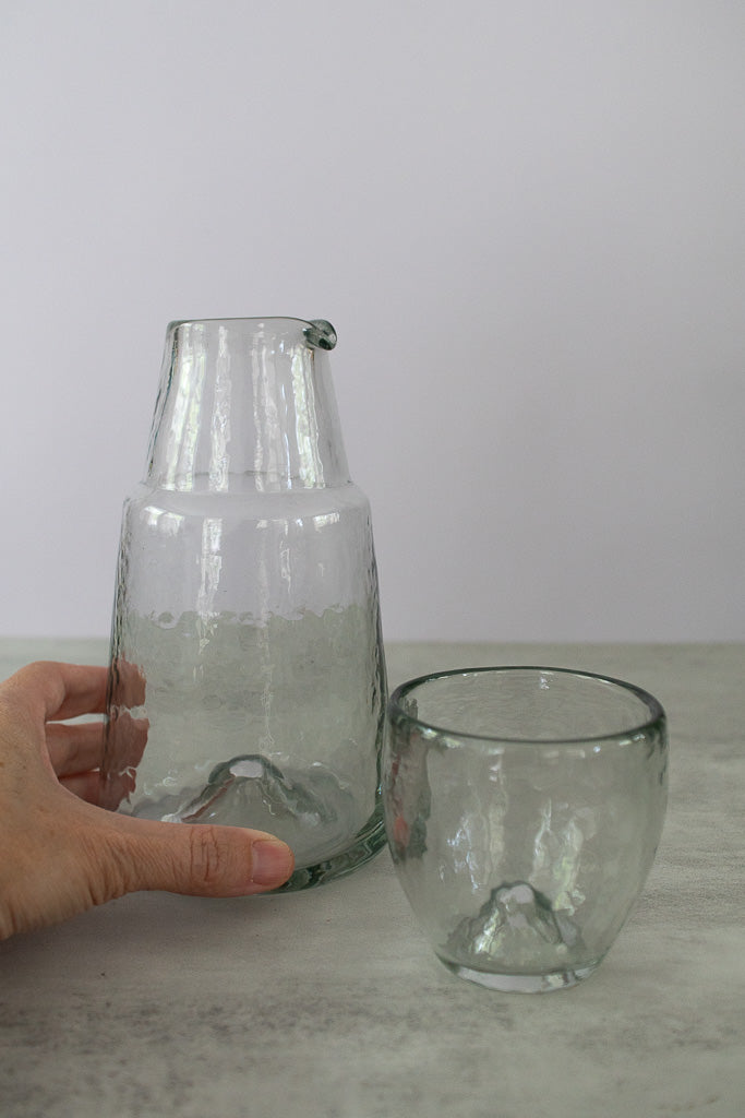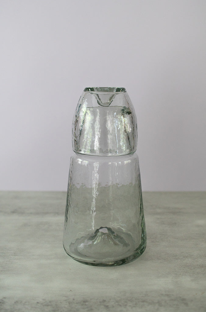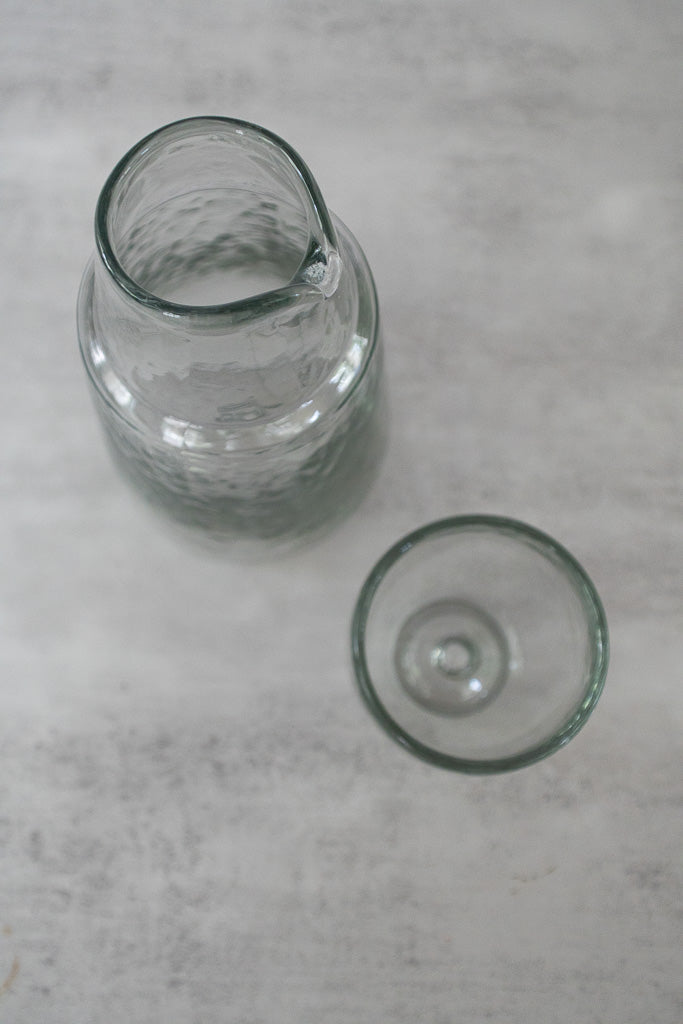 Handblown Hammered Glass Carafe in Cobalt Blue