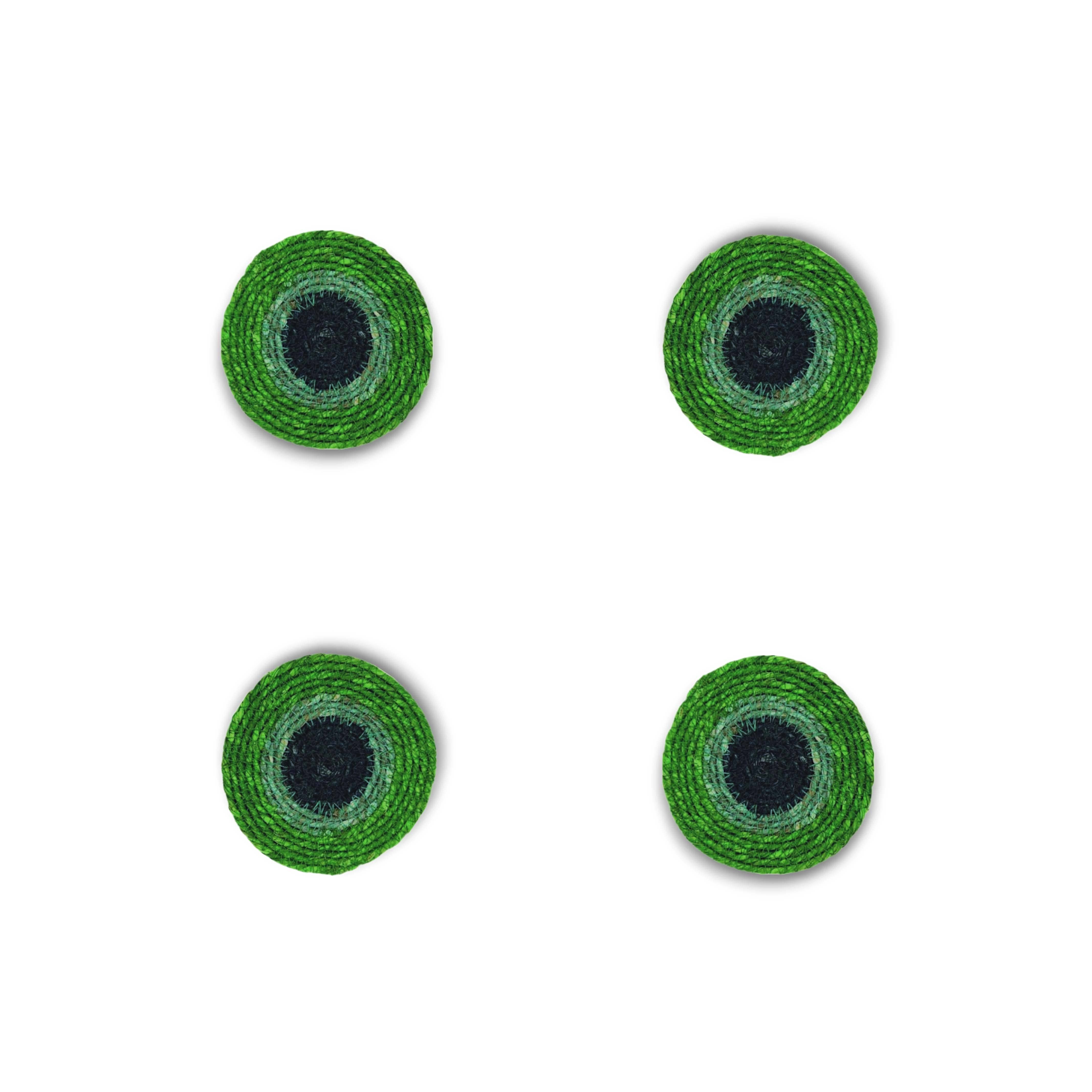 These durable and eco-friendly coasters are designed for versatile mixing and matching. Each coaster's unique variations reflect the hand-finished stitching and artisanal production process. Made from robust seagrass, they lie flat on surfaces and offer a rich texture alongside a splash of color. Measuring 4.5" (11cm D) in diameter, they are ideal for stylish, everyday table settings. Clean with a dry cloth only; avoid moisture to prevent color bleed. Seagrass has a natural scent do not add fragrance or sprays.