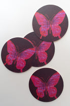 These beautiful full color coasters are made with 60pt and measure 3.7" in diameter. They come in a set of four and feature a belly band around them. They are absorbent and can be used hundreds of times.