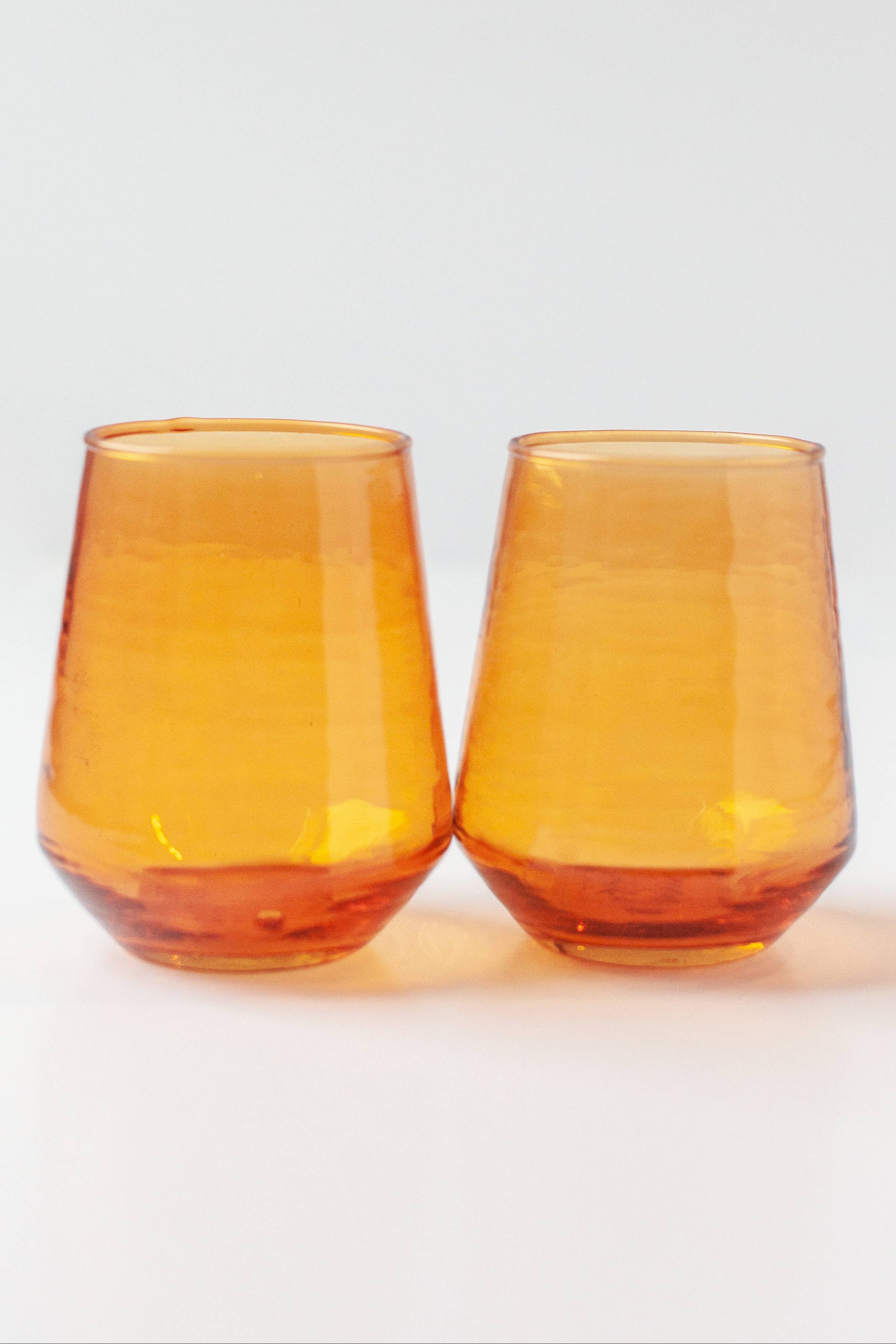 Sip in style with these handblown hammered glass tumblers. Crafted with care at a woman-owned business, each is made from 100% recycled glass and meticulously hammered by hand for a truly unique finish. Master craftsmanship, beautiful texture and organic lines makes these perfect for everyday use or at your next dinner party. This collection is made from colored glass (not sprayed) to ensure the color will last a lifetime. Please not that these items are 100% handmade and slight size variations and imperfections may occur. - Dishwasher safe - Sold as an individual glass - 3.5 x 3.5 x 4.25 inches - 13.5oz / 400ml
