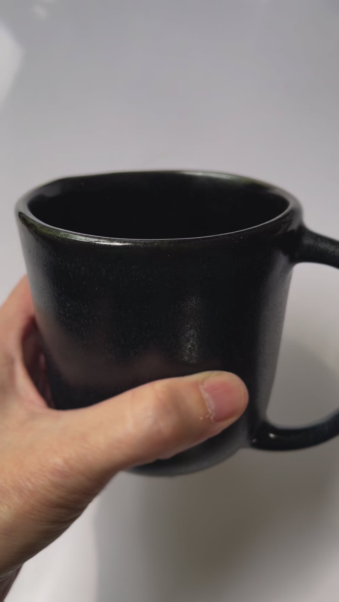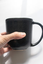 Make your morning coffee time a little more elegant with this striking, bold and beautiful black ceramic coffee mug. This mug is sure to become your favorite piece with a wonderful grip. Makes a great gift for a coffee lover too! This minimalist piece of stoneware pottery features a charcoal black matte glaze that is food, microwave and dishwasher safe.
