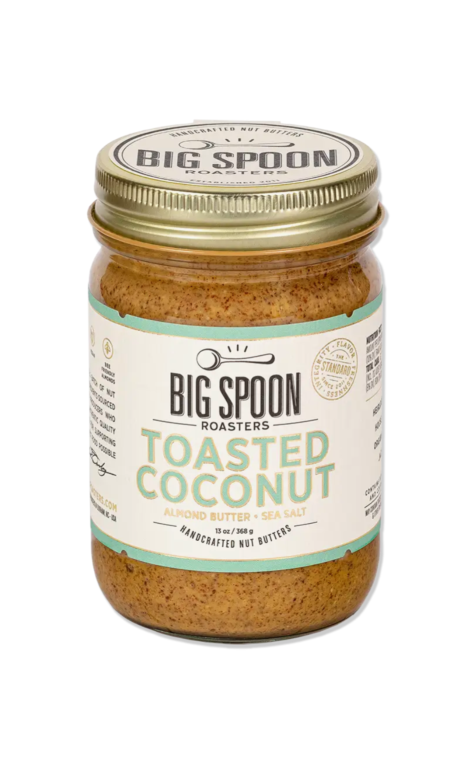 If you're feeling like a quick vacation - or maybe just craving a homemade coconut macaroon - toasted coconut almond butter is all that in a spoon. House-toasted coconut and sweet almonds combine for a match made in tropical heaven. This toasted coconut almond butter is handmade from fresh-roasted heirloom mission variety almonds, crispy toasted coconut flakes, raw organic coconut crystals, and hand-harvested sea salt to create a decadent, naturally sweet, irresistible nut butter.