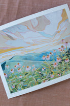 This gorgeous giclee print of a landscape painting is printed on 100% Cotton Paper with a smooth surface texture and would look so lovely hung in your home. Looking at it makes you feel like you are looking out a window at a breathtaking vista and wildflower meadow. Each print is signed by the artist. Print measures 8x10. Frame not included. Made in North Carolina.