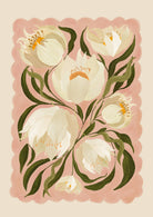 White Peony Dusky Pink Background Hand Drawn Art Print. Printed on 350gsm FSC-certified paper from sustainable sources. Packaged inside a biodegradable bag. Measures 8.27" x 11.69"