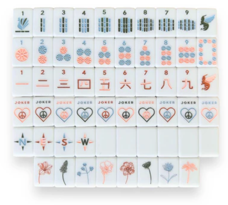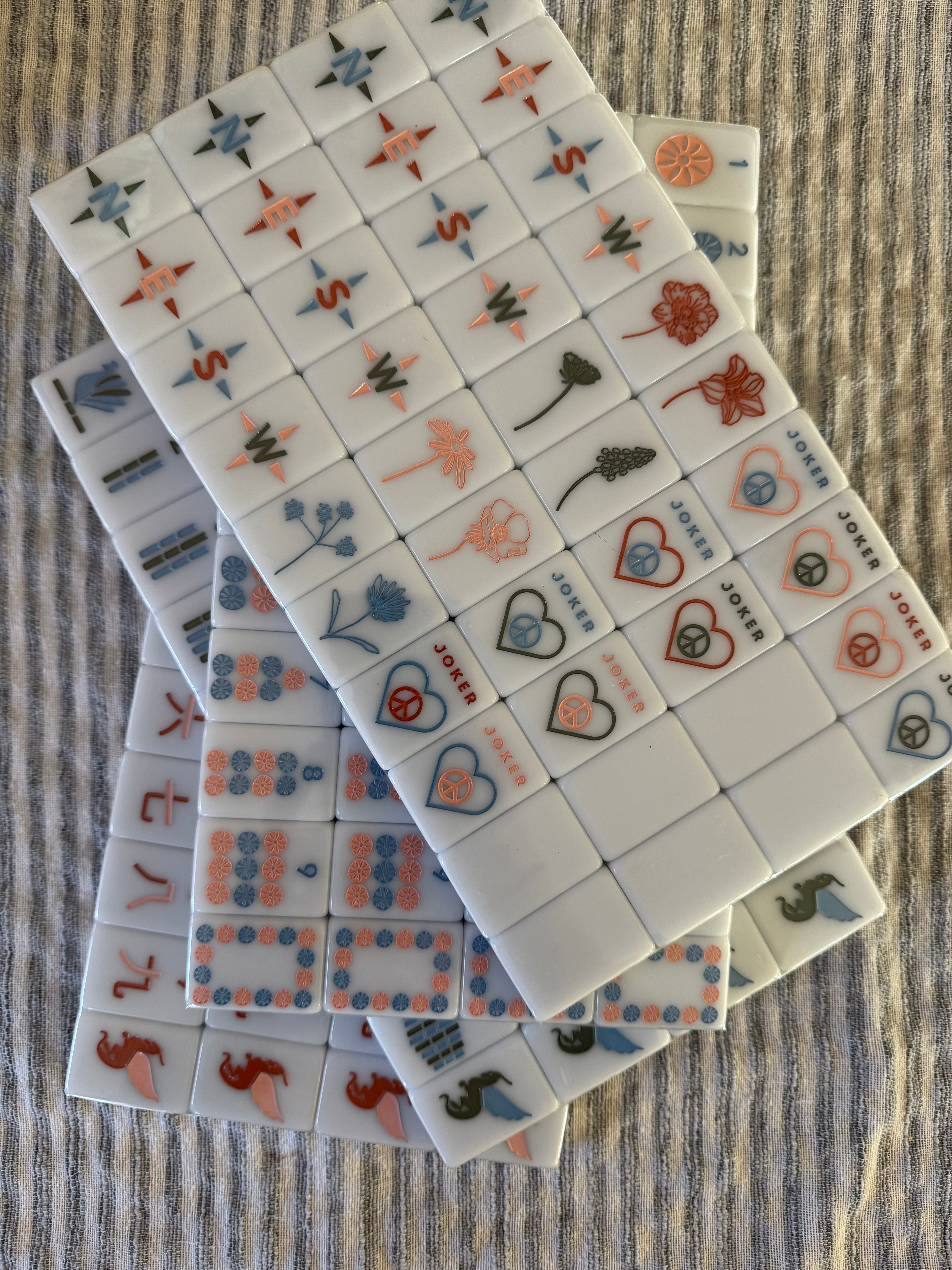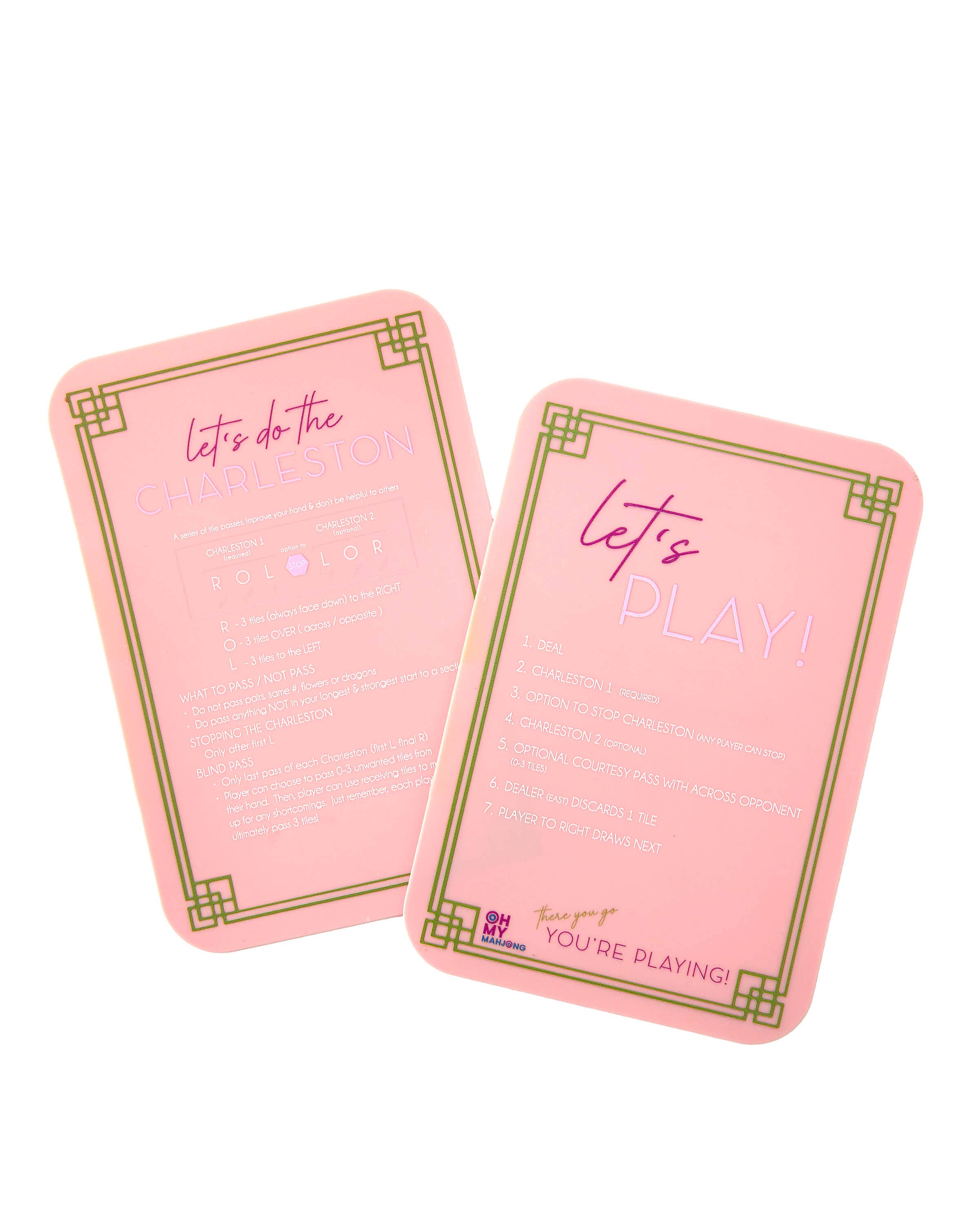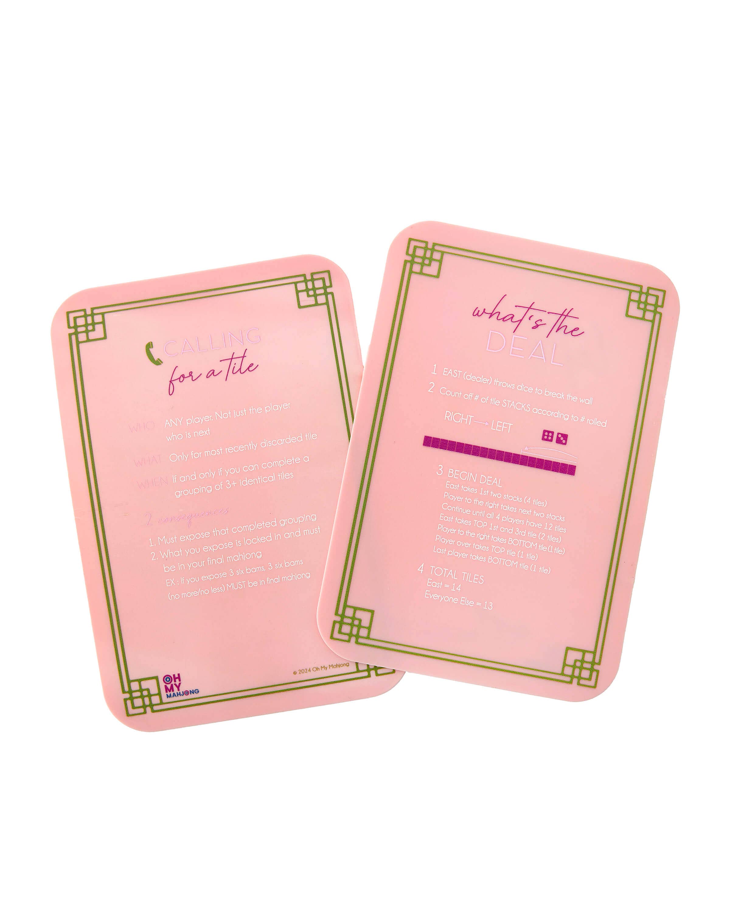 Mahjong Tile Shufflers in Coral with Rules & Tips Printed On Them