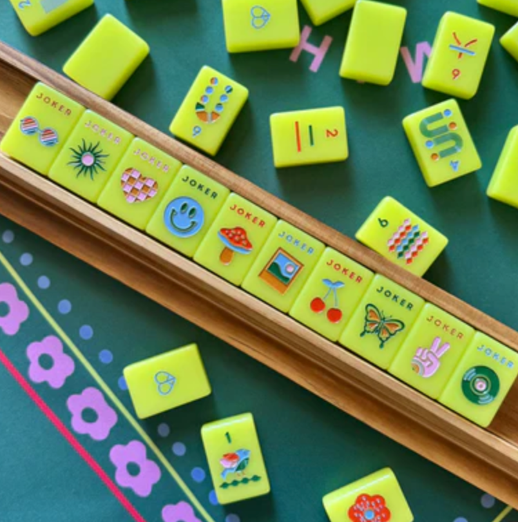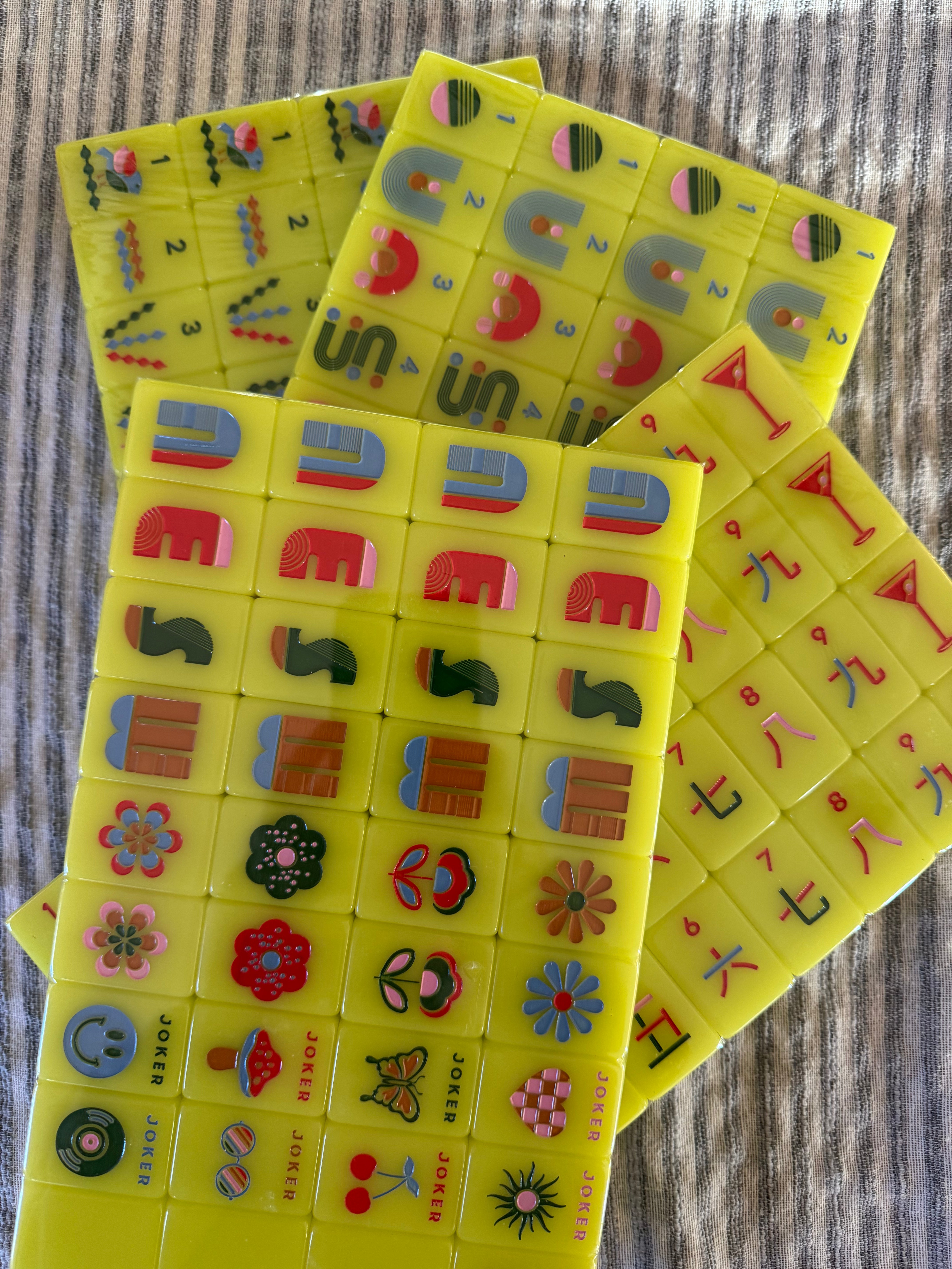 Mahjong Tiles in Chartreuse, Mid Century Modern Mahjong Mod Tiles