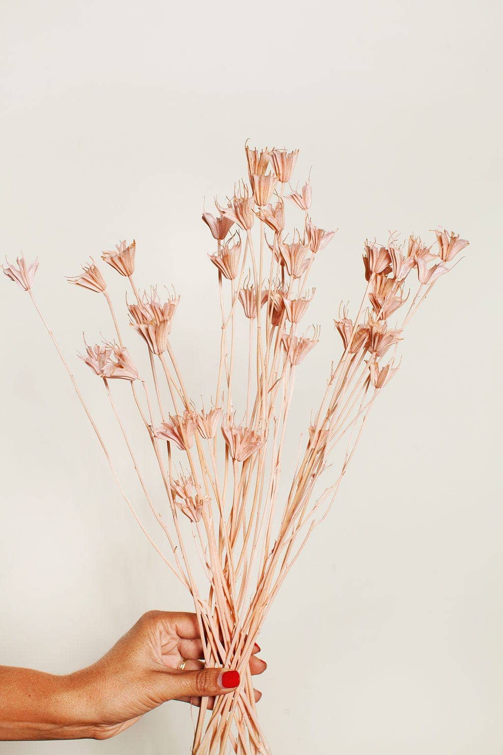 This Nigella has sturdy stems with seed pod flowers in a lovely blush color. Elevate your space with the timeless beauty of our dried flowers from Idlewild Floral Co. Each dried flower bouquet is meticulously crafted, featuring an array of vibrant floral stems that have been picked at their peak and expertly preserved. Ideal for those seeking long-lasting elegance, our preserved flowers are perfect for any decor style. Whether you're decorating your home, planning a special event, or looking for a unique gift, our dried flowers offer a stunning, low-maintenance solution.