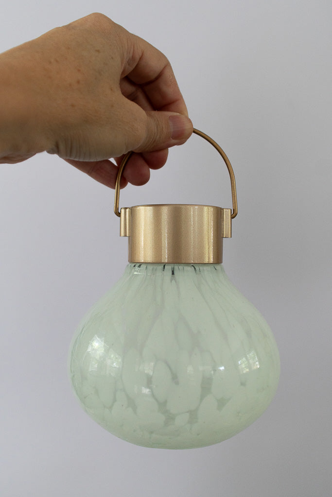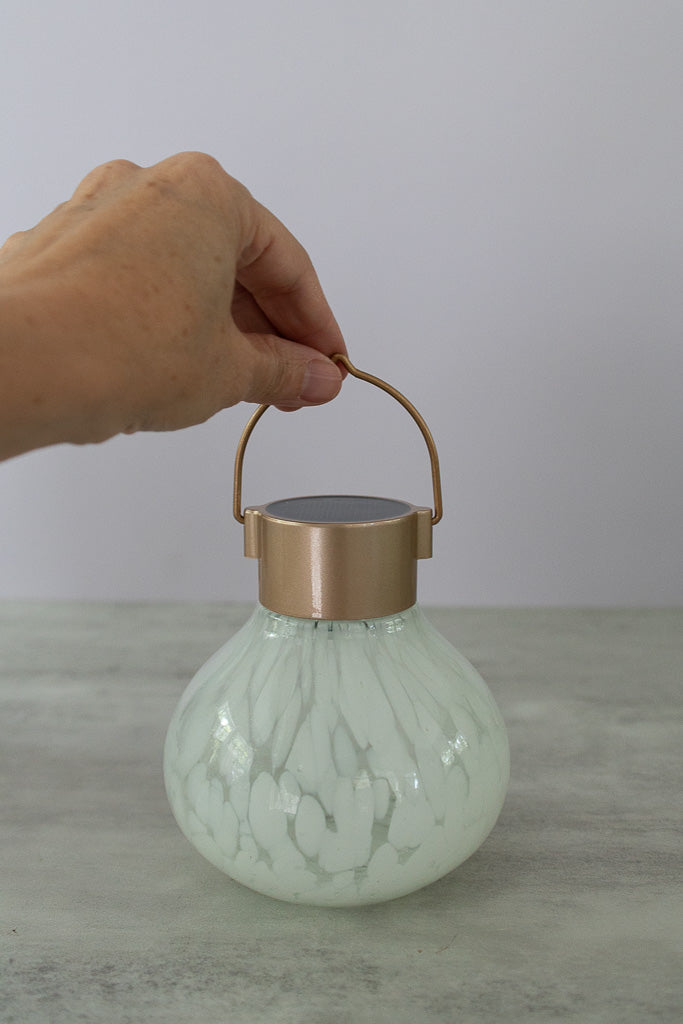 Catching the sun’s rays, our solar tea lanterns light up by night to cast a warm romantic glow from within. Clean and quaint, each hand-blown glass lantern is a unique work of art. Unlike other solar lights, this lantern utilizes a “warm white” led, for a natural and inviting glow. Our solar tea lantern has many uses! Nestle in the garden, enhance an outdoor tabletop, deck, patio or stairway, suspend with a hook, or carry by hand to light the way by night.