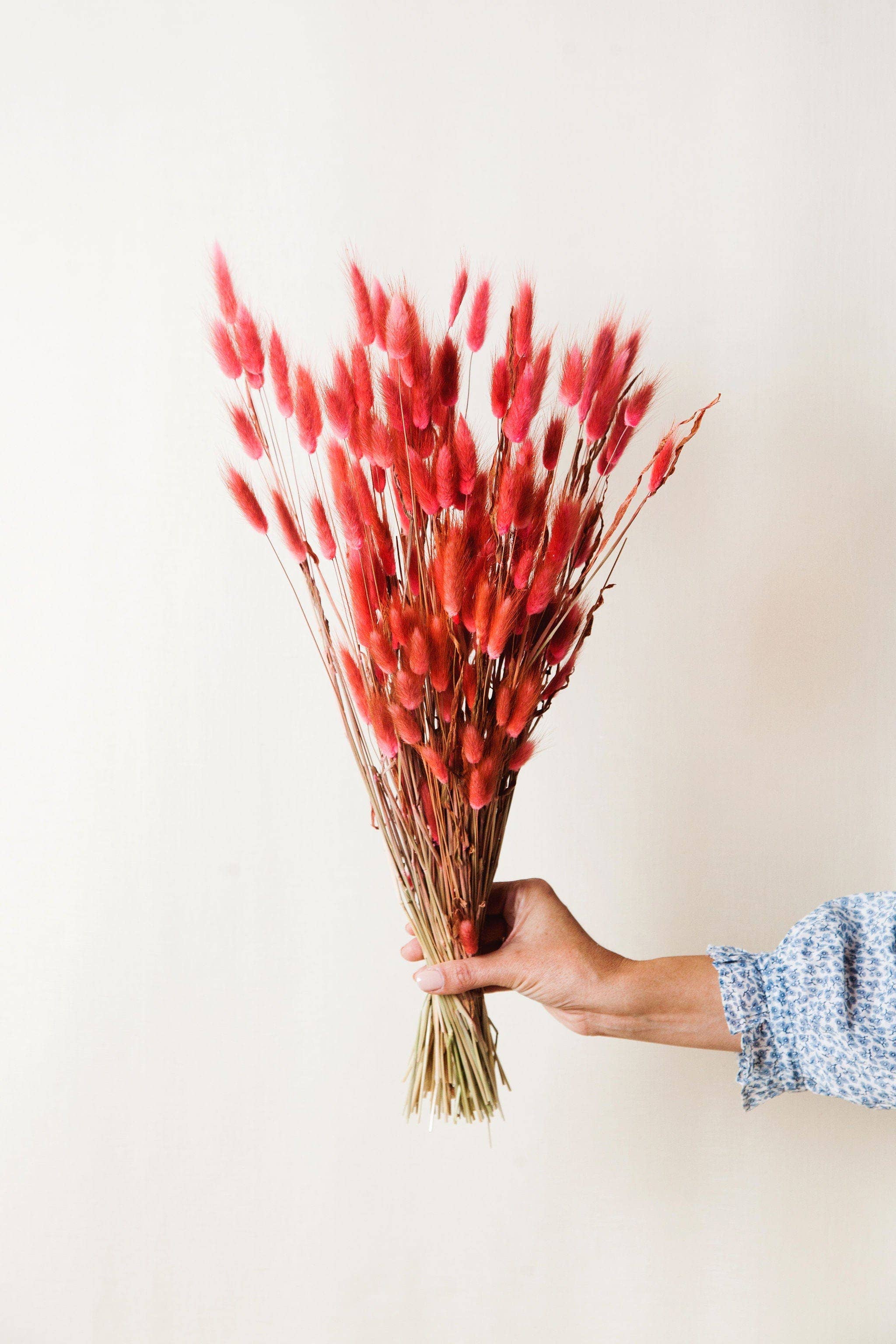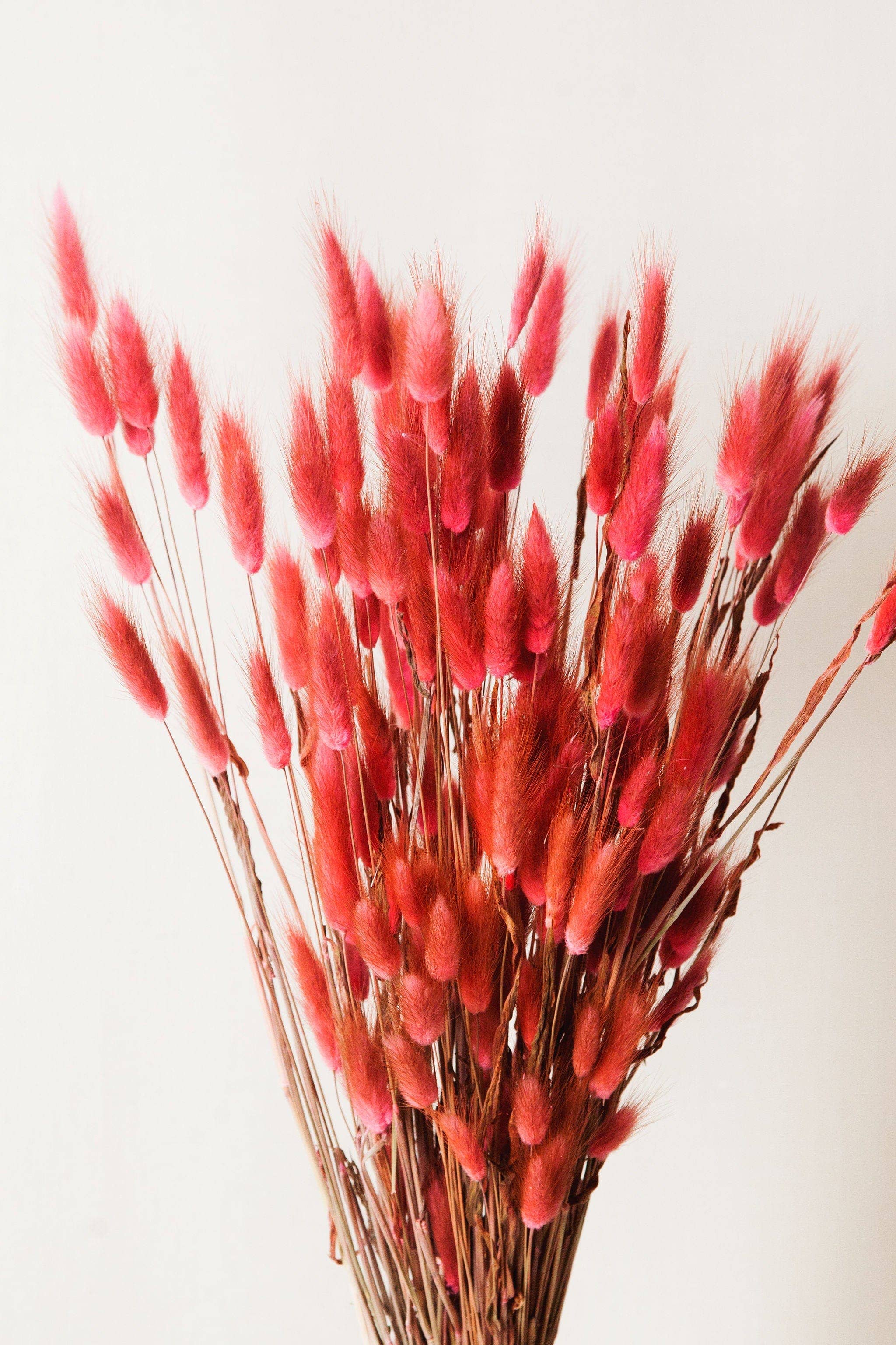 Strawberry Pink Bunny Tail Dried Flowers, Decorative Floral Arrangement
