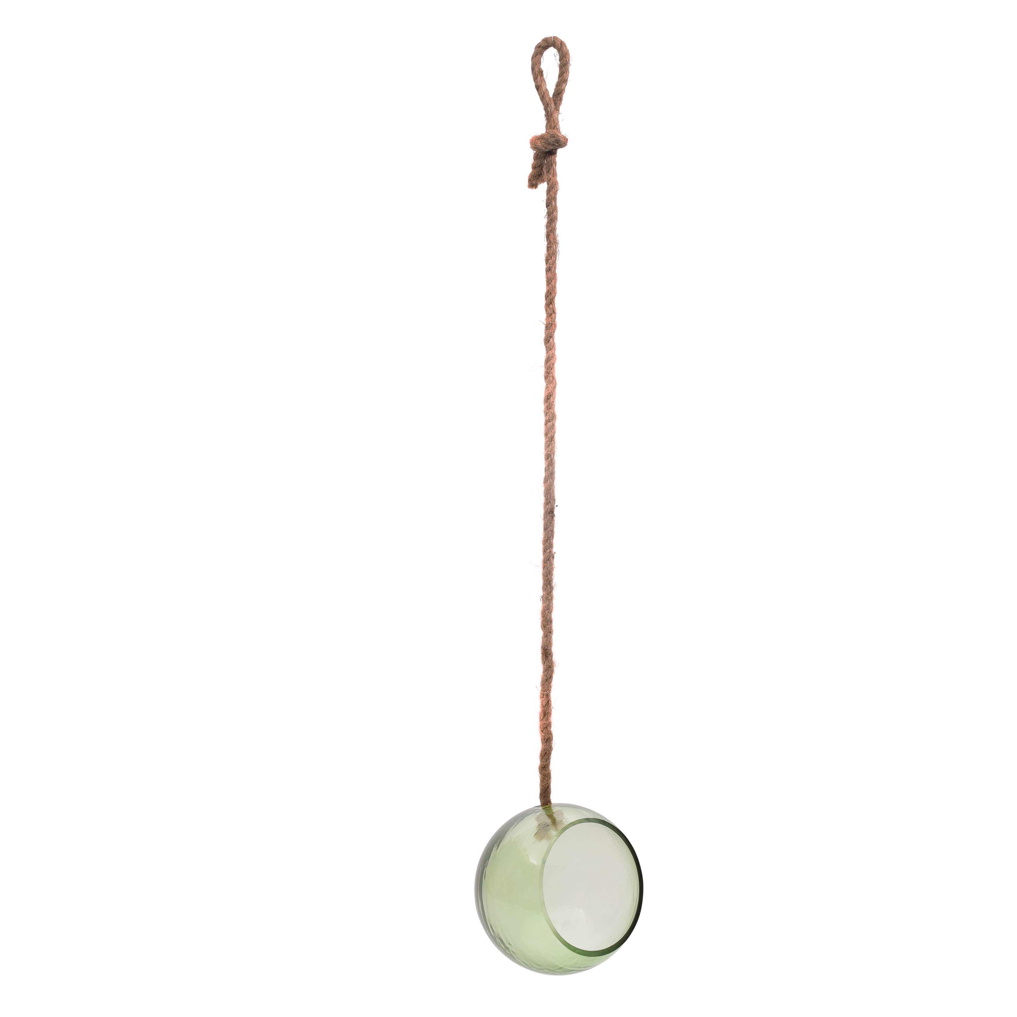 Green Glass Hanging Terrarium with Airplant, Small