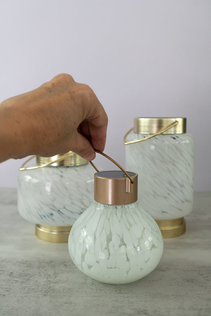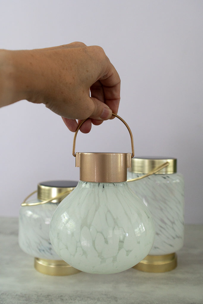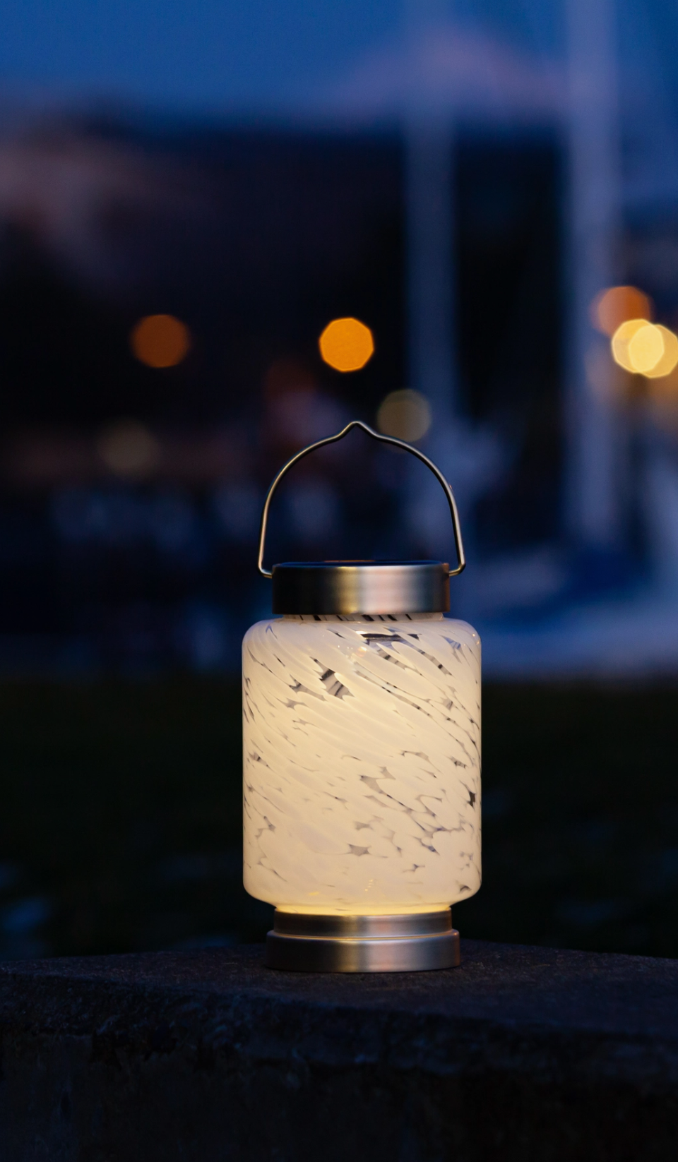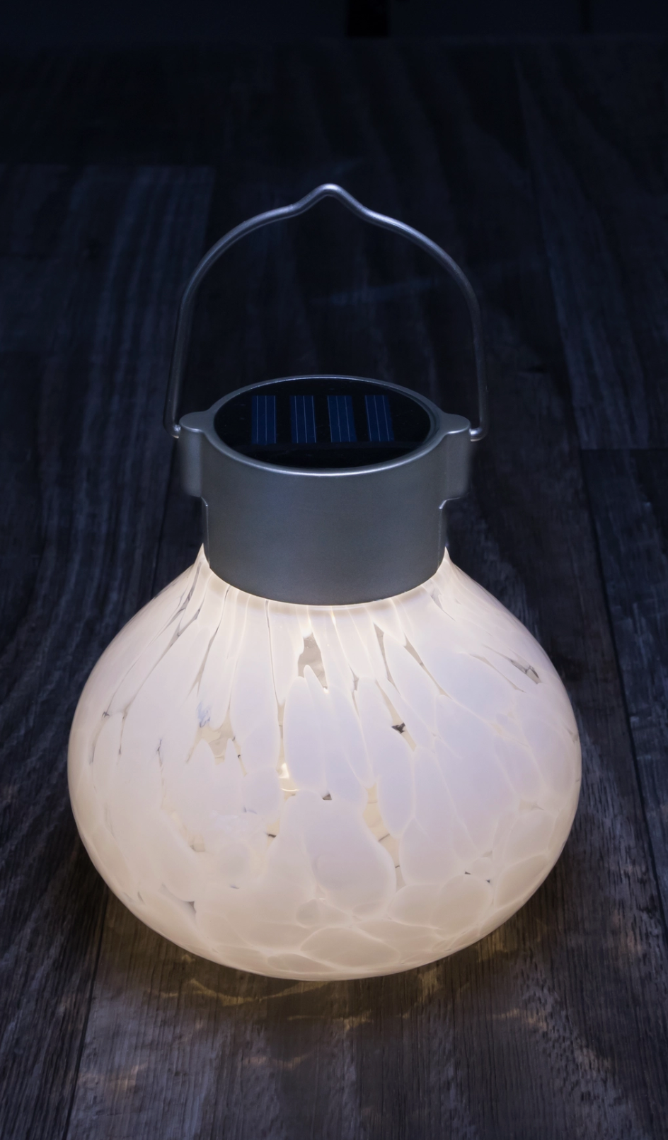 White Glass Solar Tea Lantern, 4.5" X 5"