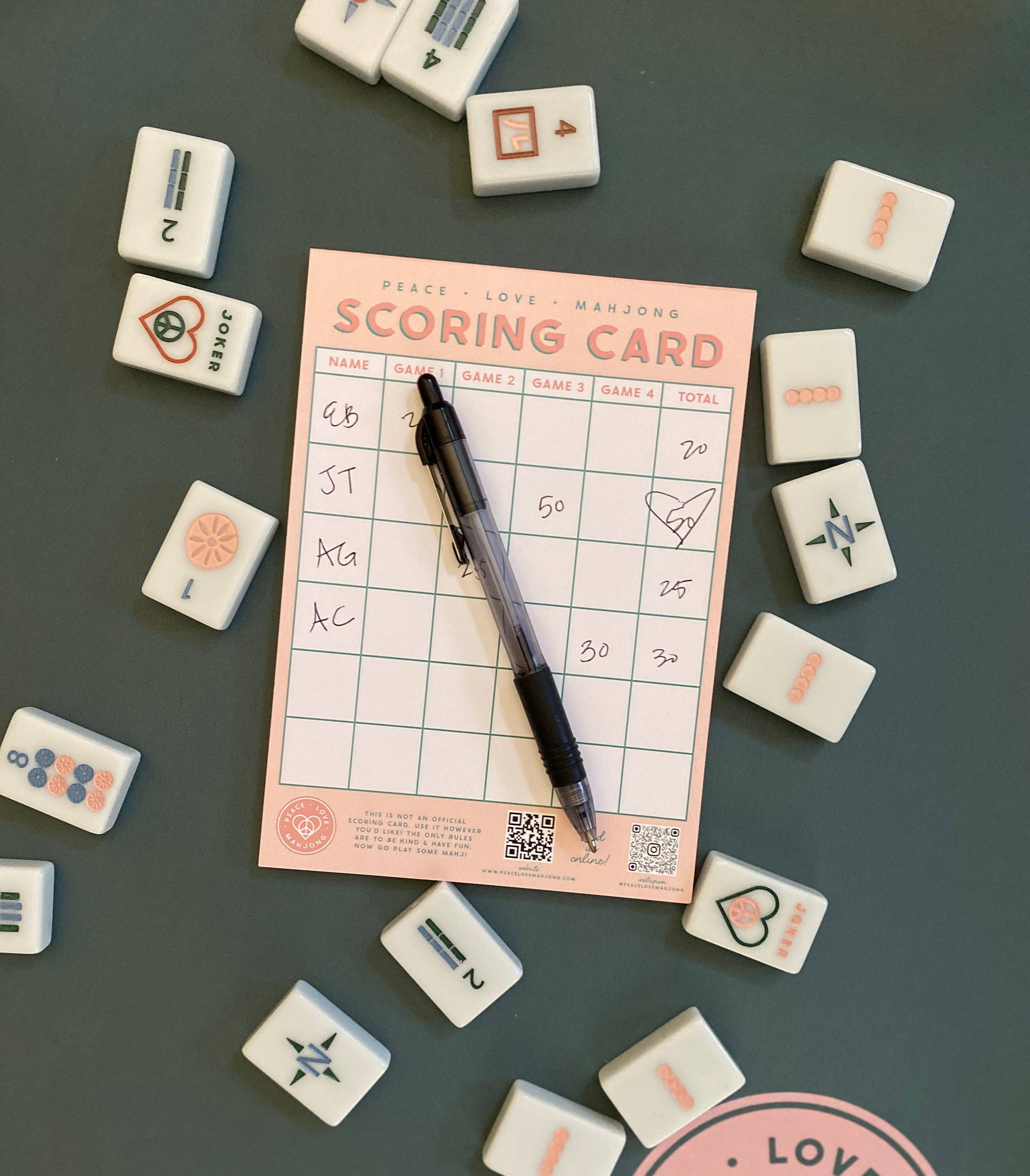 Mahjong Mat: Light Pink with Chartreuse & French Blue
