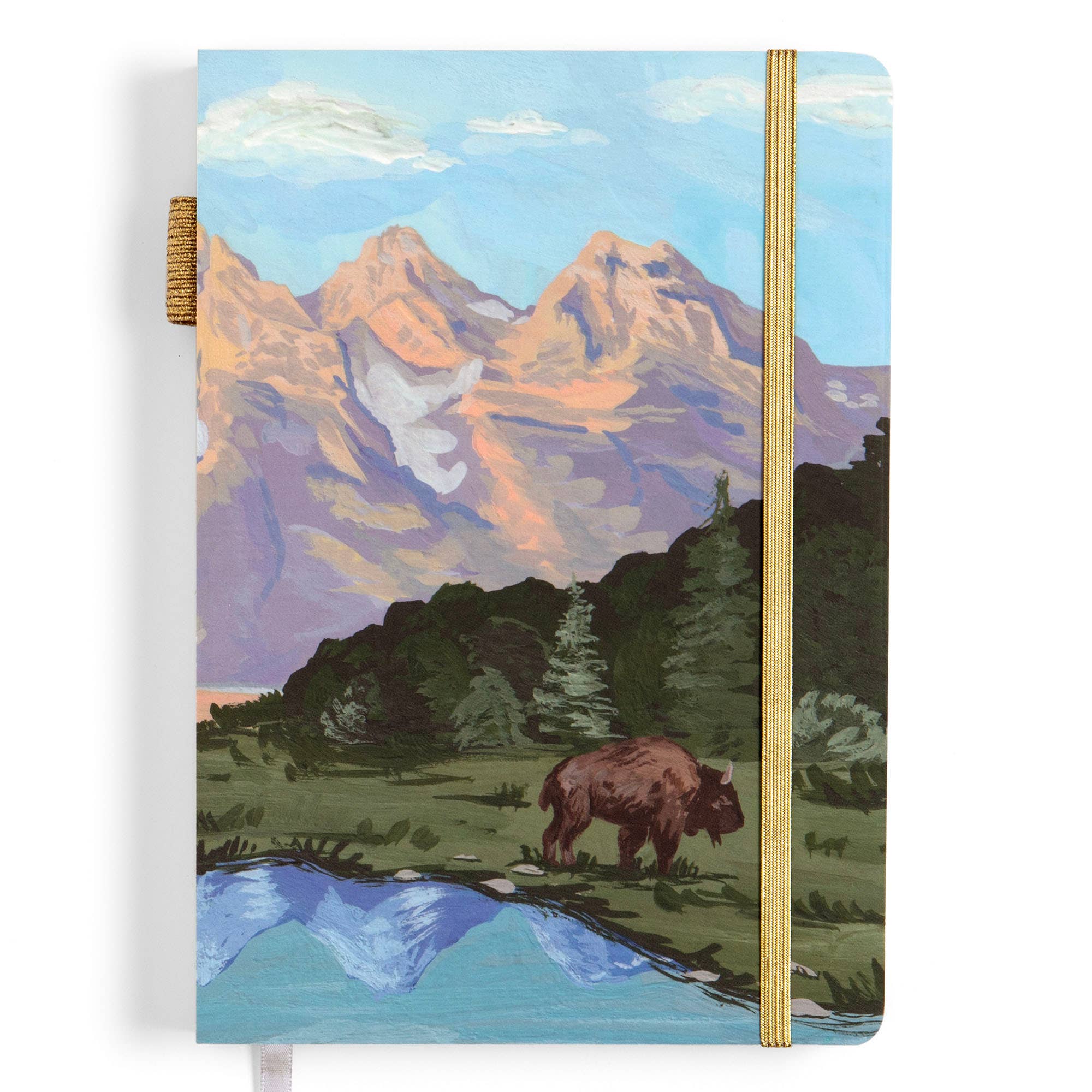 Find inspiration in majestic landscapes with the Grand Teton Lined Journal. Nature enthusiasts and adventurers will appreciate its lay-flat design and mountain-inspired cover. Features | Laminated hardcover, exposed lay-flat binding, gold elastic closure, ribbon bookmark Interior | 160 lined pages, 160 gsm paper Size | 5.5" x 8" x 7/8" thick