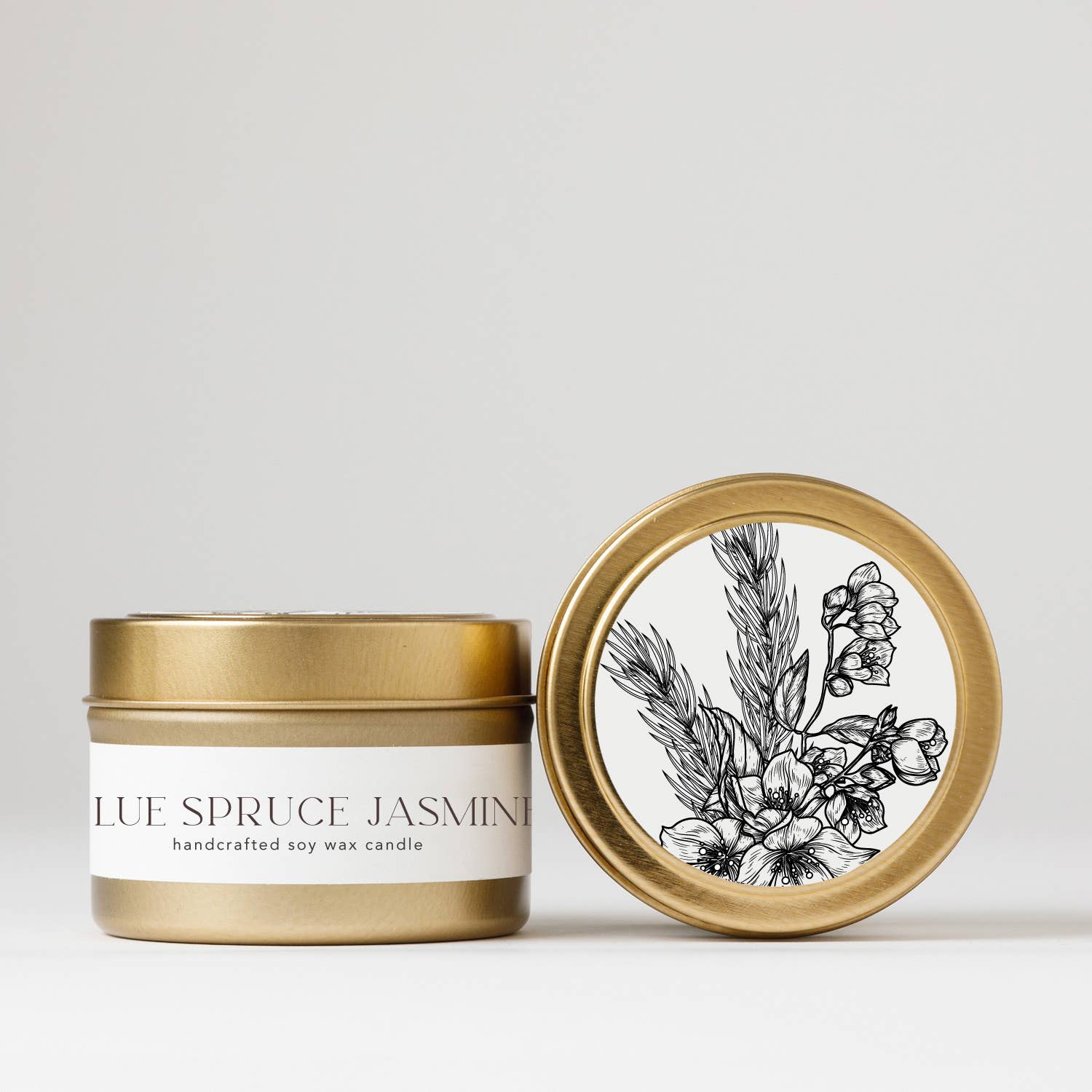 Blue Spruce + Jasmine Soy Candle in Travel Tin