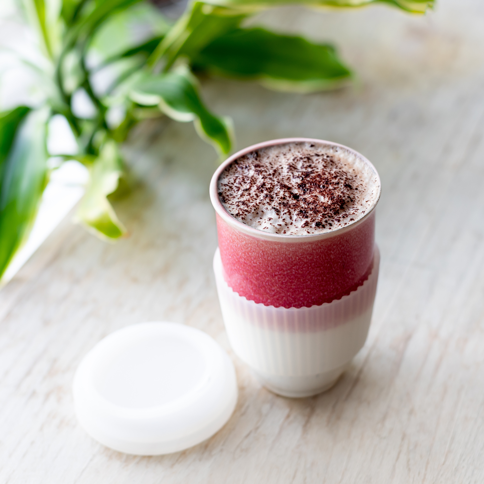 Take your morning coffee or tea with you in this gorgeous, reusable, eco-friendly ceramic travel tumbler with a dopamine boosting pop of bright pink color. Because of the glazing process no two pieces are alike. Holds 12oz and is microwave and dishwasher safe.
